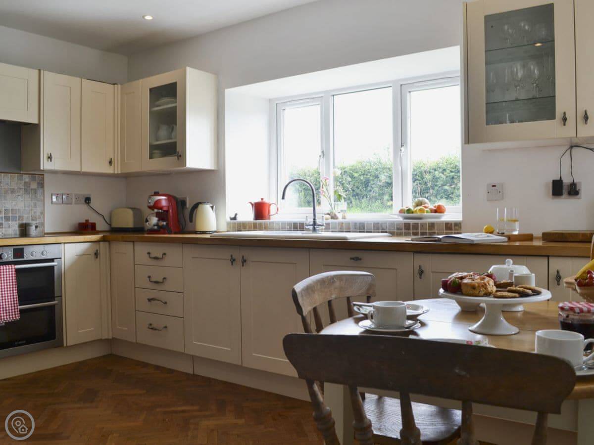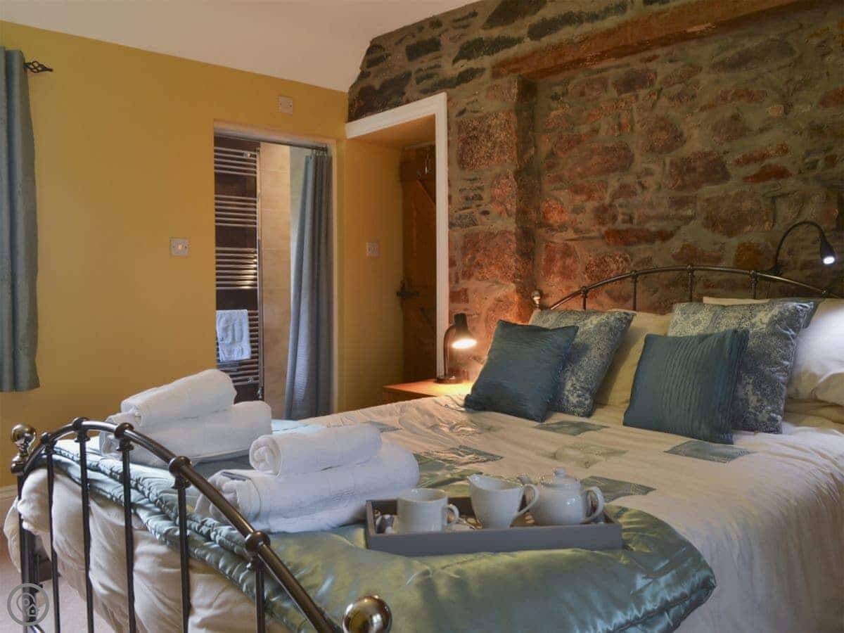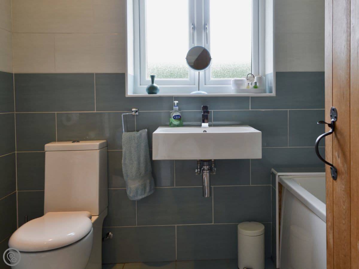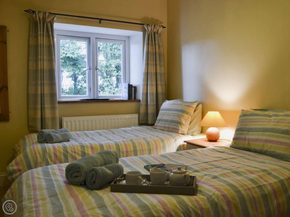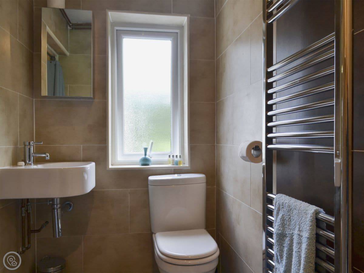 It sleeps four. Two bedrooms, two bathrooms. One bathroom is downstairs and is a wet room. It's got a 5 Star rating, which means it's well-equipped and in good order. It's been done up.