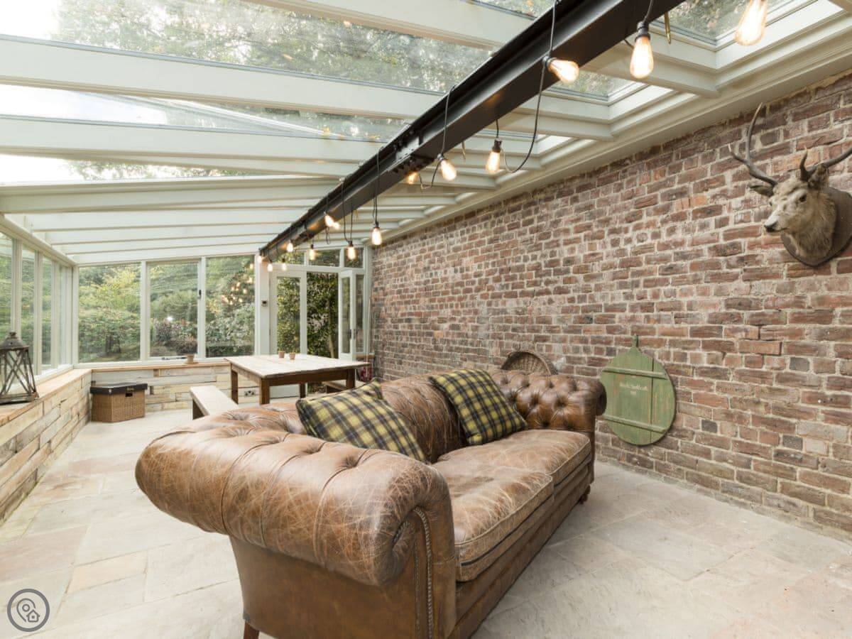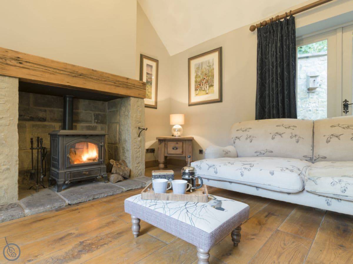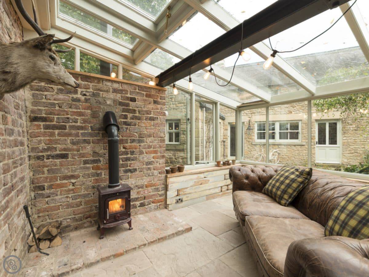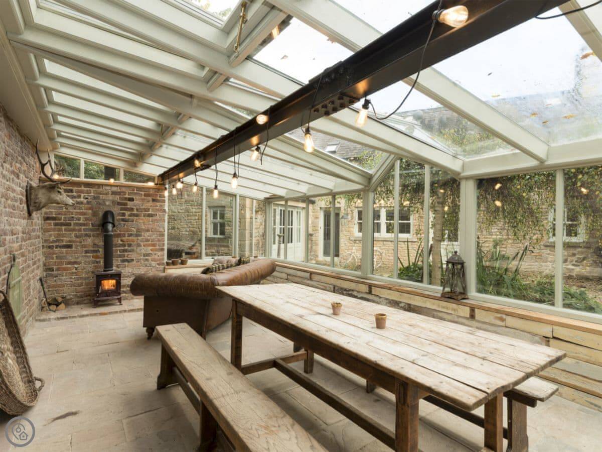 There's a separate garden room with another wood burner and a big table. Good if some people want a bit of space. The main living room has a wood burner too. Kitchen's got a range cooker and a dishwasher.