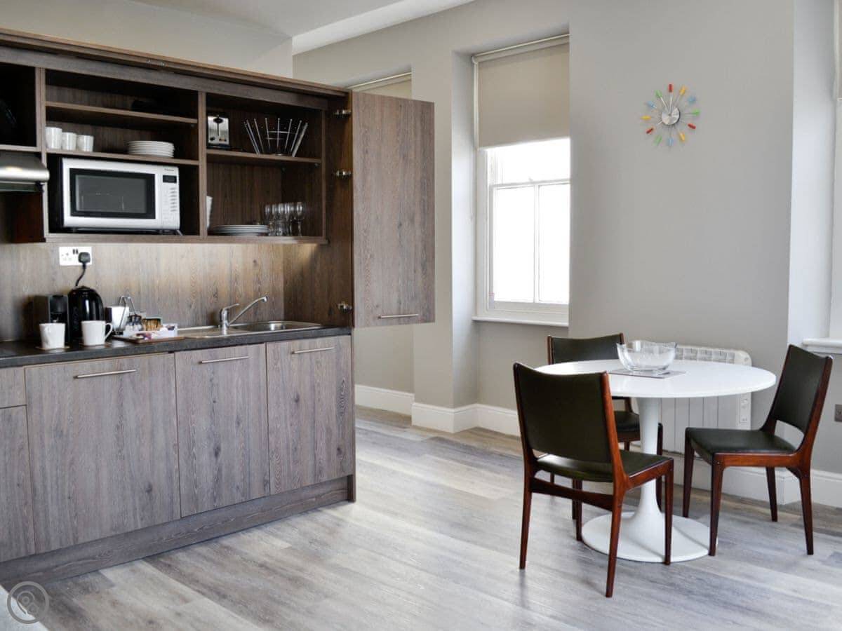 Room Apart 1A is one of the flats in Elliot Terrace on the Plymouth Hoe. It’s a big old Victorian building, Grade II* listed. Sir Arthur Conan Doyle used to live here. Your apartment is for two people, one bedroom and one bathroom.