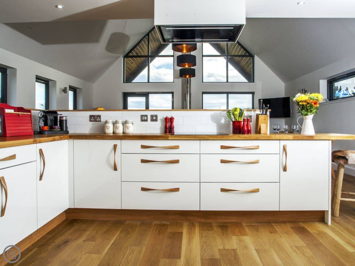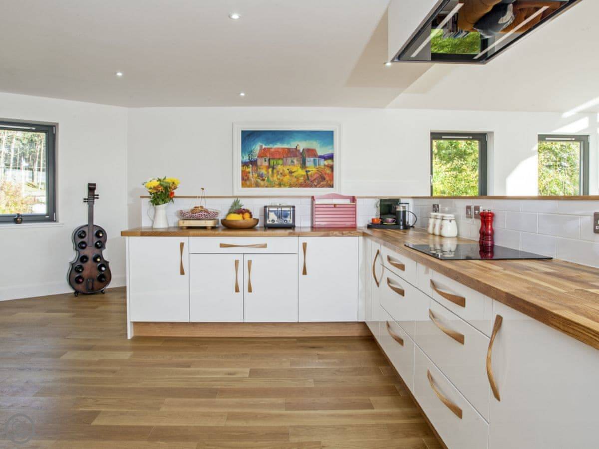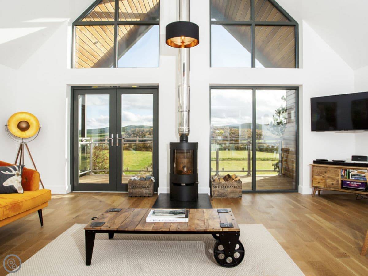 The layout is open plan downstairs, which works for families. There's a wood burning stove for the evenings. The WiFi is fine.