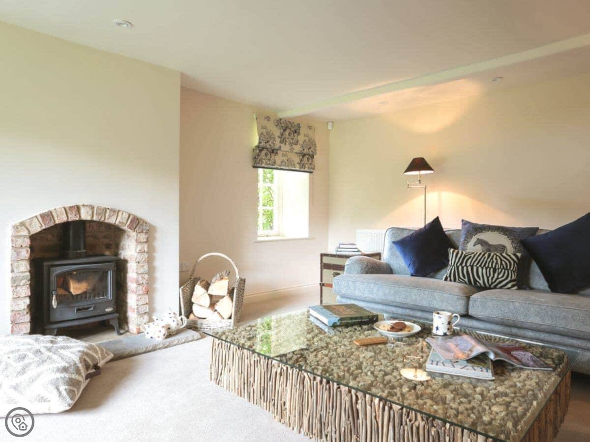 The living room has a wood burner. We supply logs for it. The kitchen is big and has everything you'd need, and the dining room looks out over the estate's walled garden and your own garden. The garden is enclosed, so it's secure.