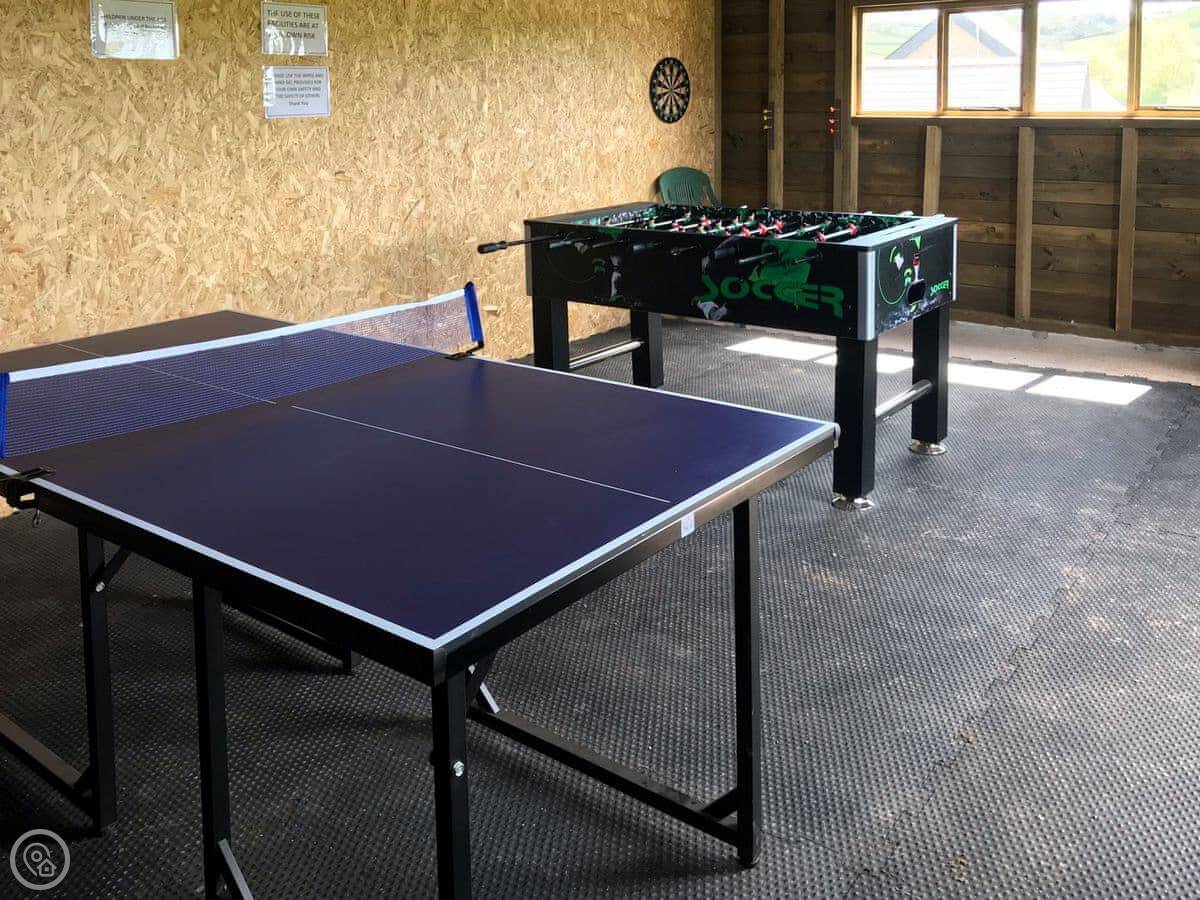 In terms of what's here: all the bedding and towels are included. There's a washing machine, dishwasher, WiFi, and TV. We've got a cot and a highchair if you need them. There's parking right outside. There's also a shared games room in one of the other barns with a pool table and table football. Sorry, no pets.