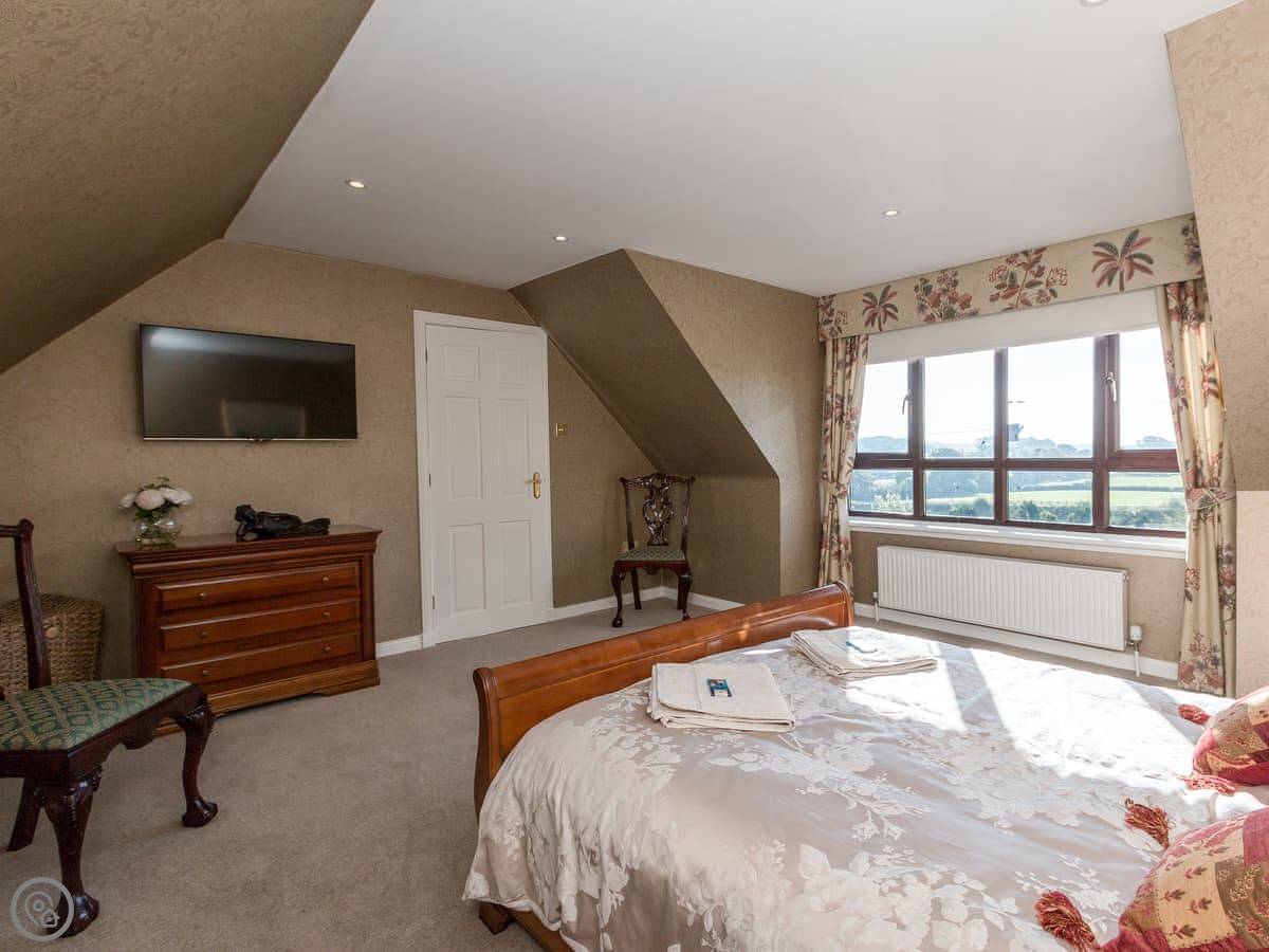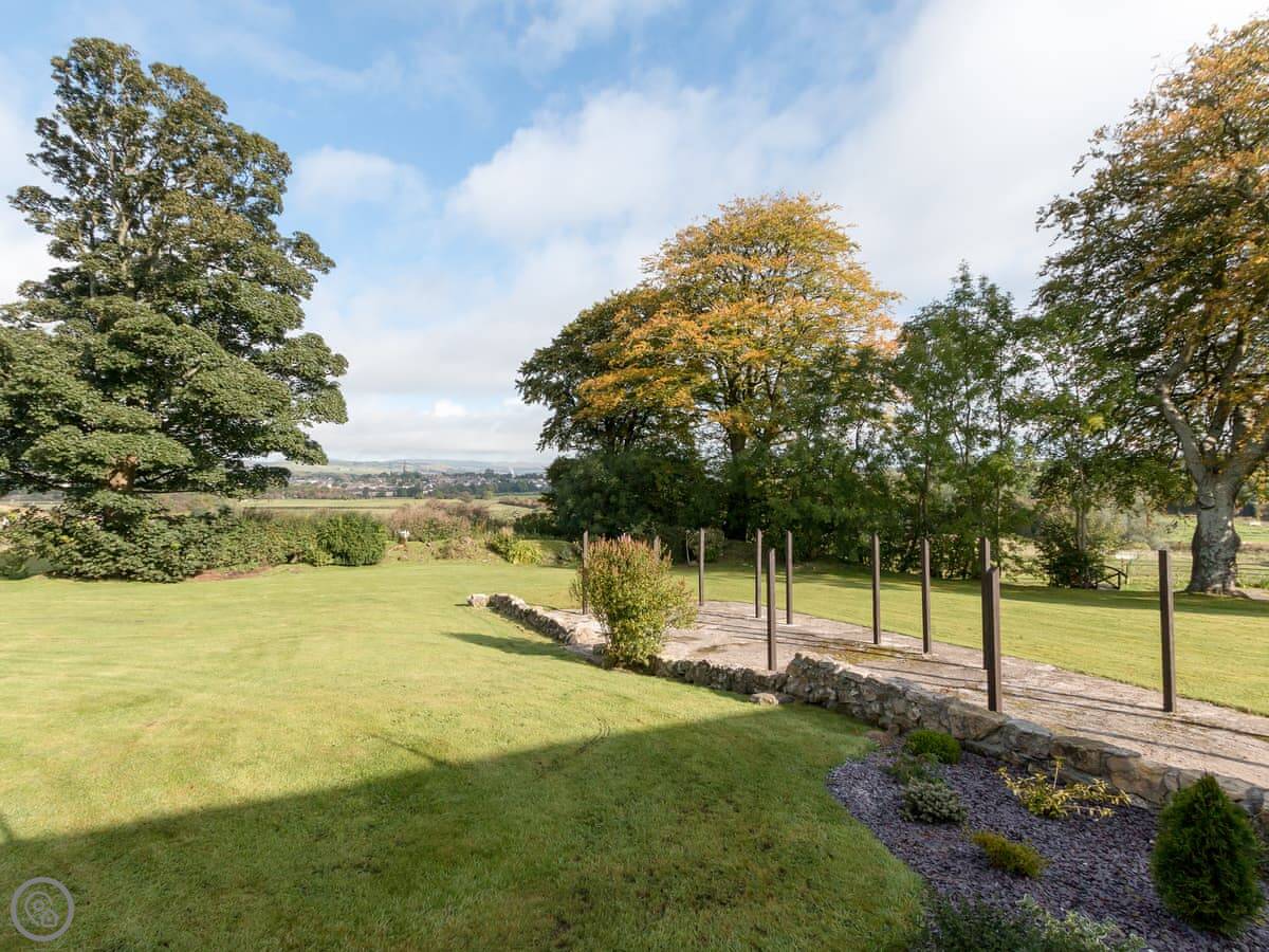 You're about seven or eight miles from the coast. The Ayrshire Coastal Path starts nearby if you want a long walk. For a day out, Culzean Castle and Country Park is excellent. You can walk through the woods down to the beach. There's a lot of information on the Culzean Castle site. You can get ferries to Arran or Bute from Ardrossan, which is about a twenty-minute drive.