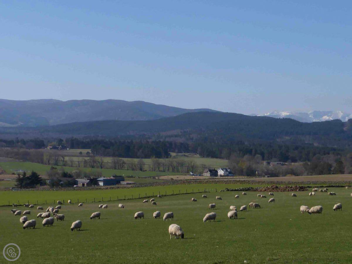 You get nice views south over the Deeside countryside. You can see Lochnagar from outside. Being on a farm, there are sheep in the surrounding fields, so we can't allow pets, sorry.