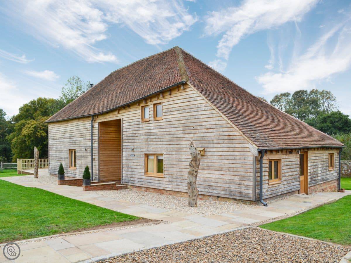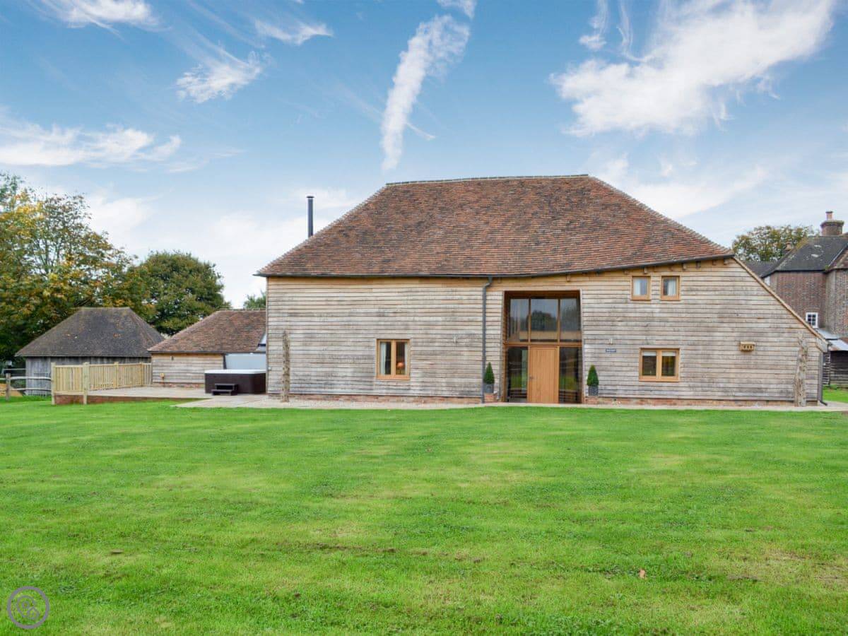 Hale Barn is on our farm in East Sussex, near Hale Green. It's a listed timber barn, about 250 years old. Detached, so it's on its own. You look out over our fields.