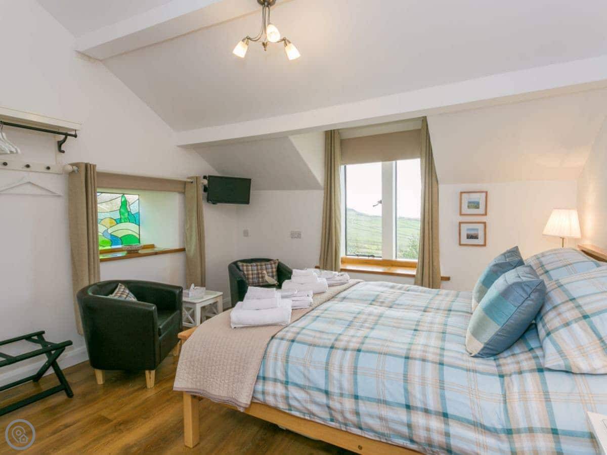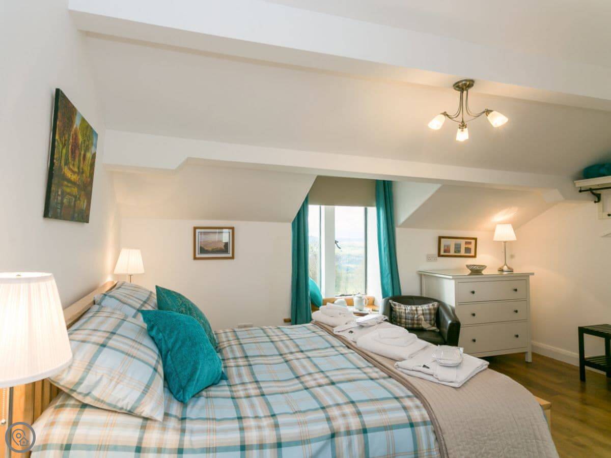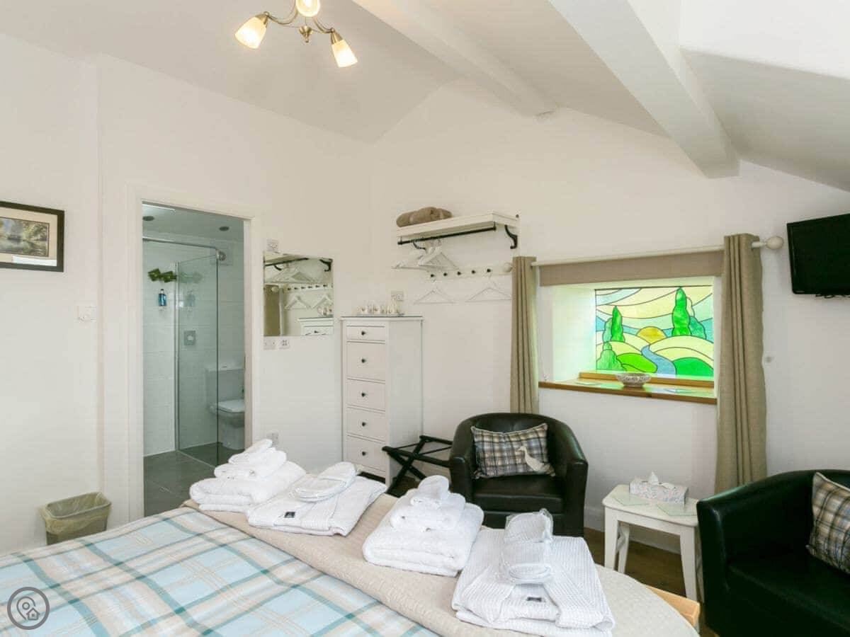 Sleeps four. Two bedrooms, both with their own bathrooms. There's a wet room on the ground floor too, which is handy. It's got a 4 star rating.