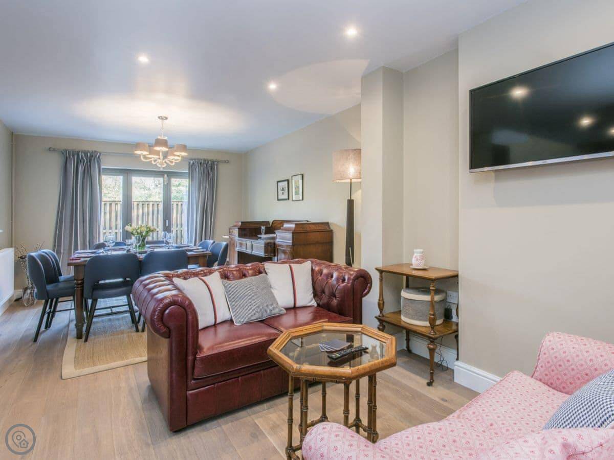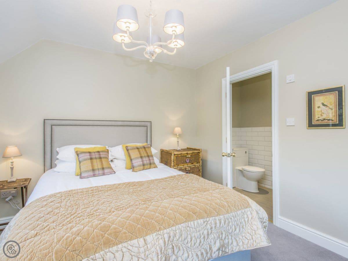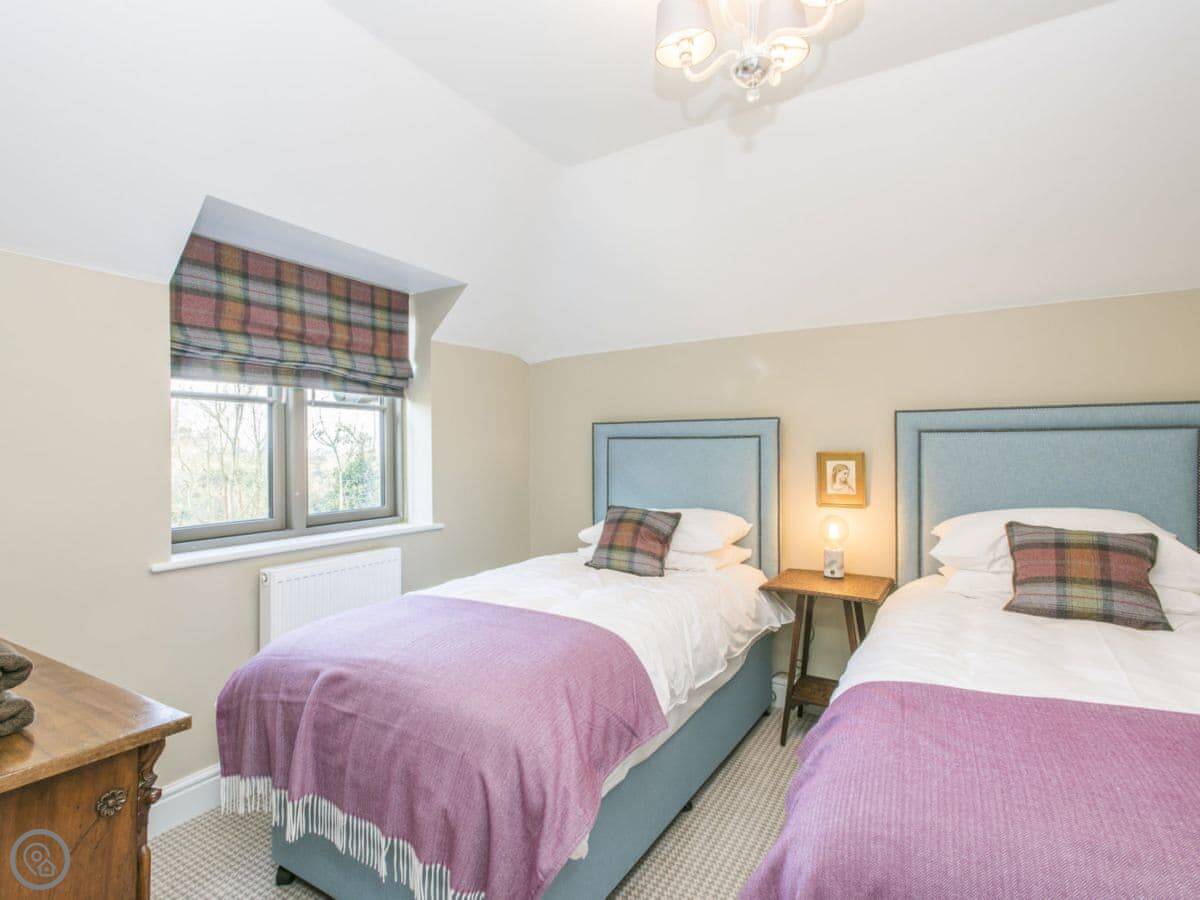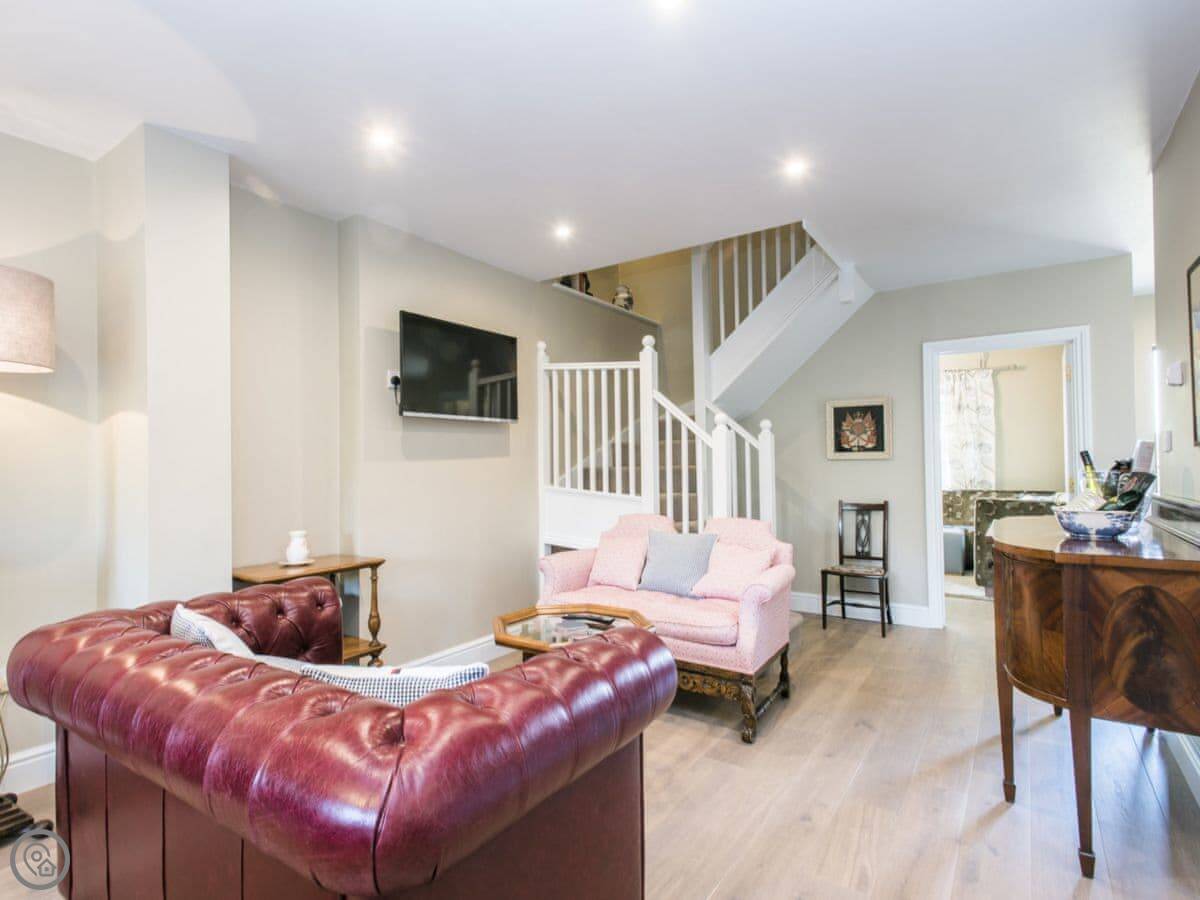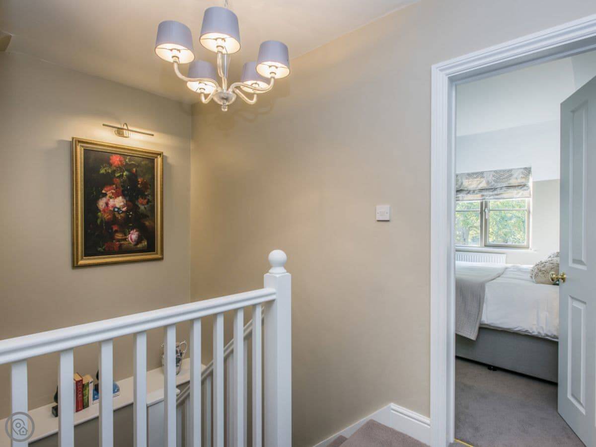 The cottage sleeps eight in four bedrooms. There are three bathrooms. It's a 5 Star property, which means it's well-equipped and comfortable. It has its own hot tub and sauna in the garden, which people seem to like. The stairs are a standard staircase.