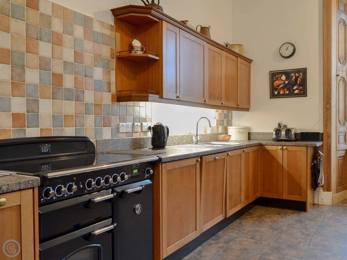 It sleeps ten, in four bedrooms. Each bedroom has its own bathroom, which is handy for a group. It's a 4 Star place, so it's comfortable and well-equipped. There's a woodburning stove for cooler evenings.
