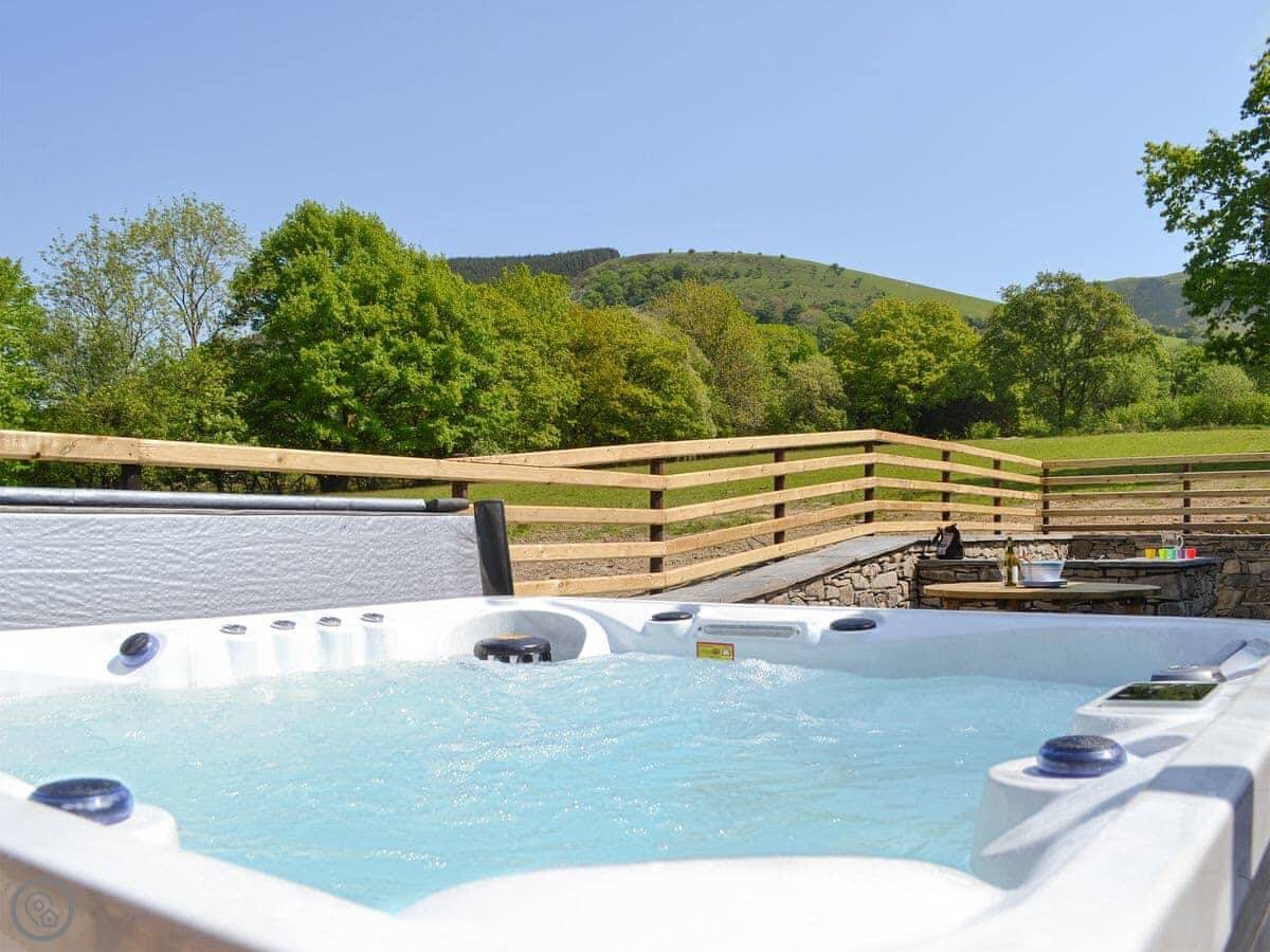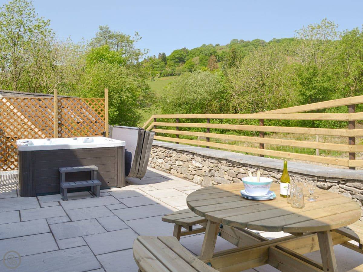 The main thing is the outside space. There's a patio with a built-in barbecue, which is handy. There's also a hot tub that looks out over the fields. The garden is enclosed, which is good for dogs. We've even put in a tap for washing muddy dogs or bikes.