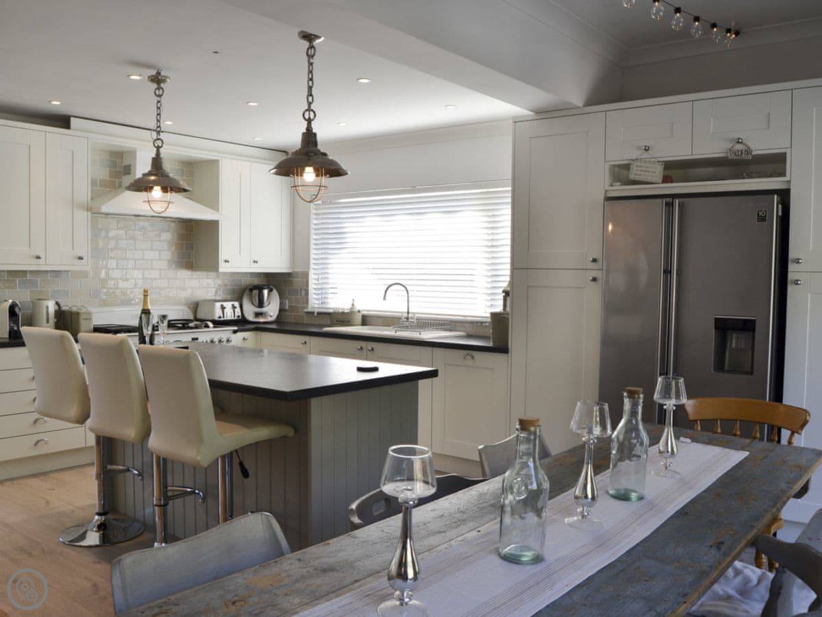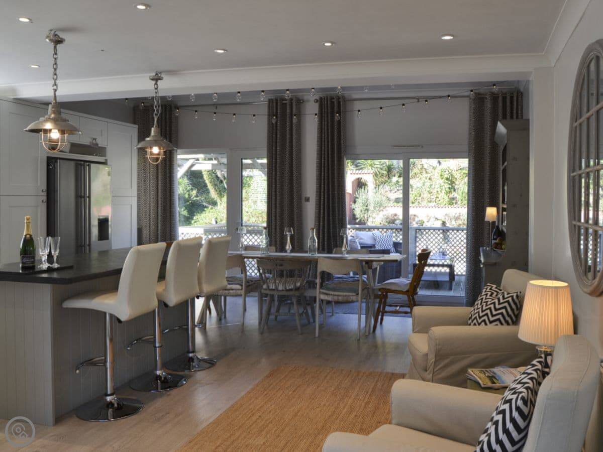 Providing extremely spacious and beautifully furnished holiday accommodation, whether its a group of friends or family get together, Burwyns is a great place to stay and can sleep up to 16 guests. The large, front aspect living room has wonderful views to enjoy, whilst the adjoining kitchen/dining room is well-equipped to cater for everyone. The beautiful bathroom features a sauna, perfect for relaxing after a busy day. On the first floor, all of the bedrooms boast en-suite facilities, whilst the master bedroom comes with its own balcony offering panoramic views across the English Channel. Outside, you will find an enclosed garden with summerhouse, barbecue and garden furniture. To the front there is off road parking for several cars and the garage can be used to store bicycles.