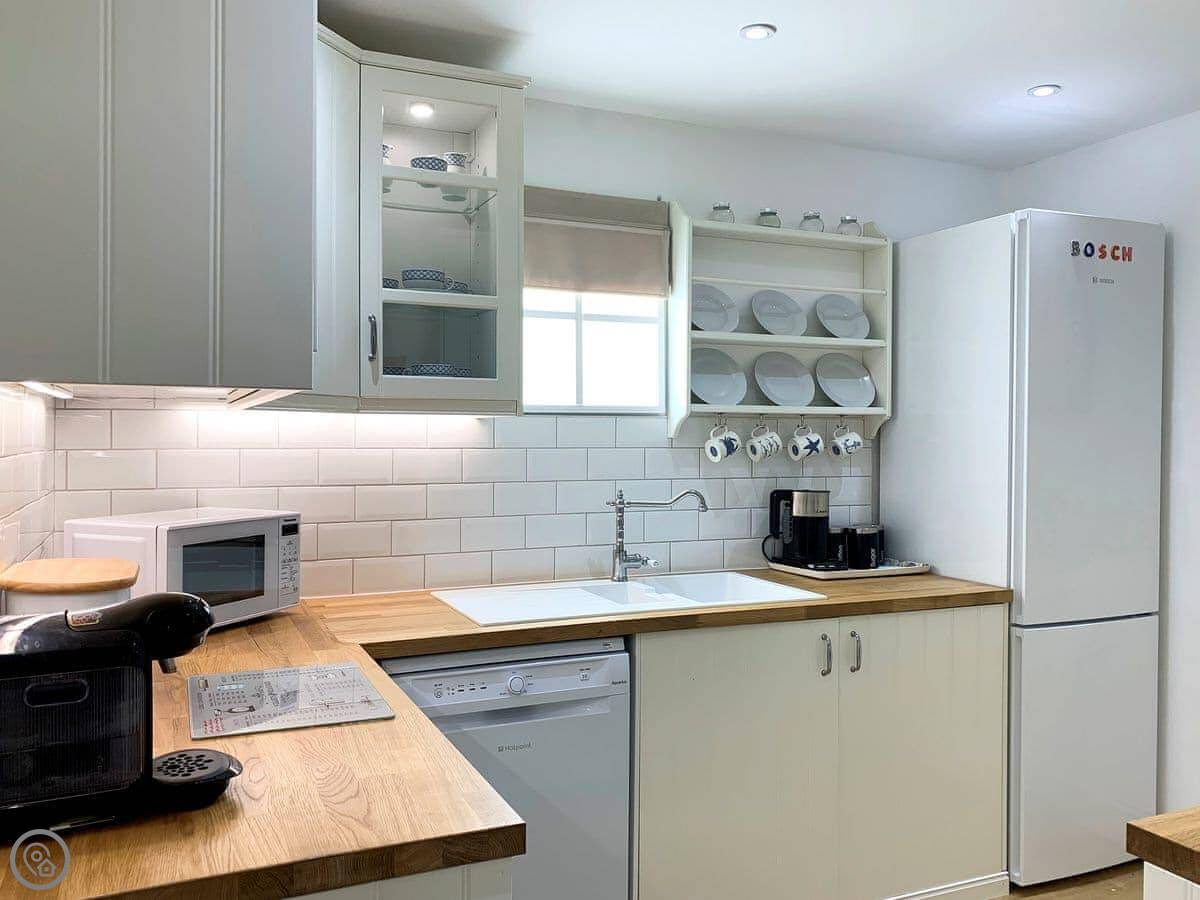 There's a shop and a pub about four miles away in the village. You get a washing machine, a dishwasher, a cot if you need it, and parking right outside. Bedding and towels are included.