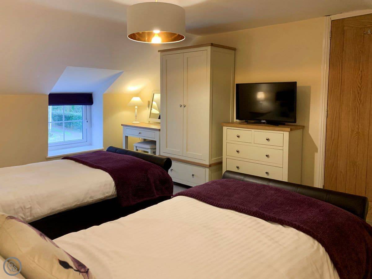 The place sleeps six, in three bedrooms. There are two bathrooms, which is handy. It's got a 4 Star rating. There's a woodburning stove in the living room, plus an old Atari games console if you fancy that. The WiFi is decent.