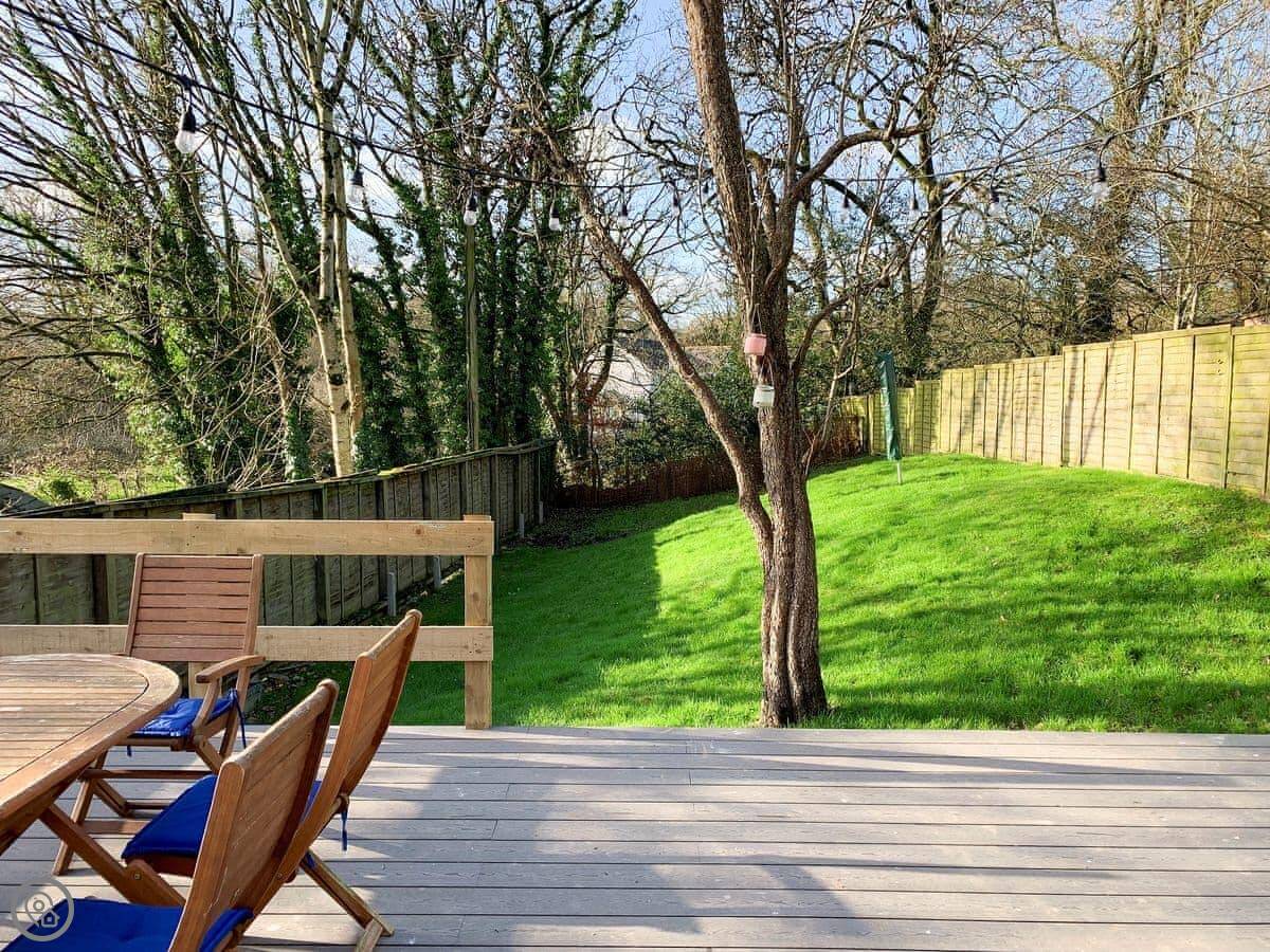 The garden at the back is fully enclosed, which is good if you're bringing dogs. You can have up to three. There's a deck and the lawn slopes a bit. We leave a box of beach gear there for guests to use, things like bodyboards and buckets.