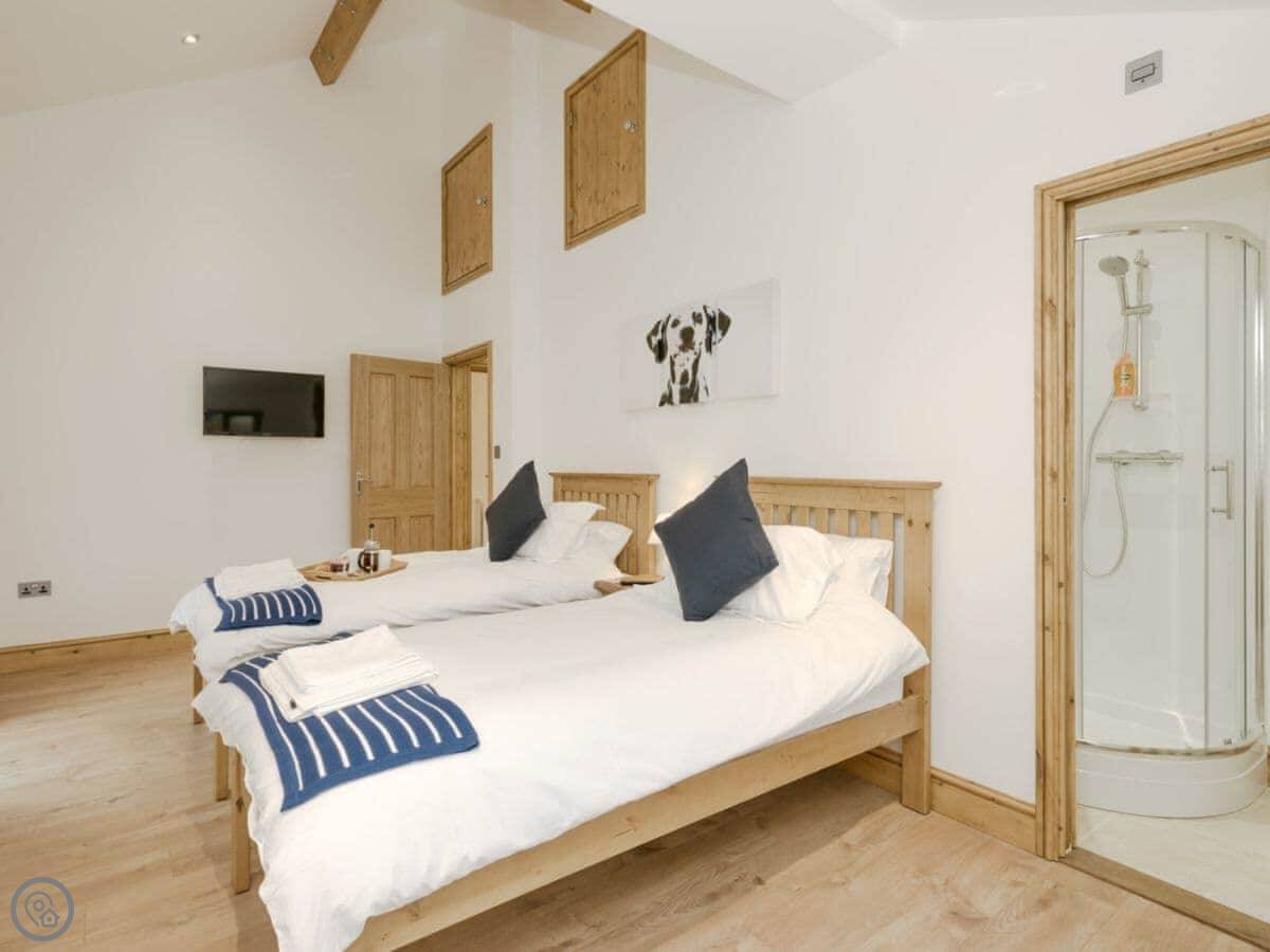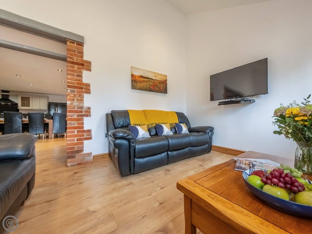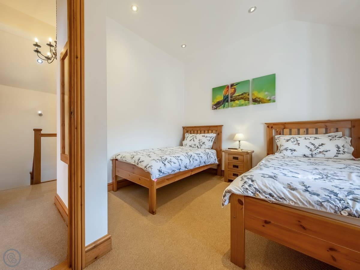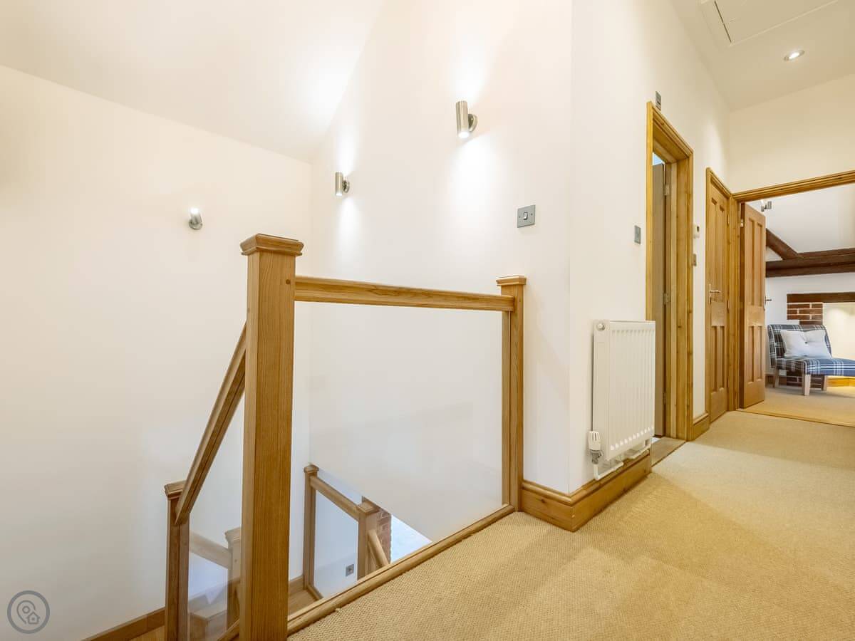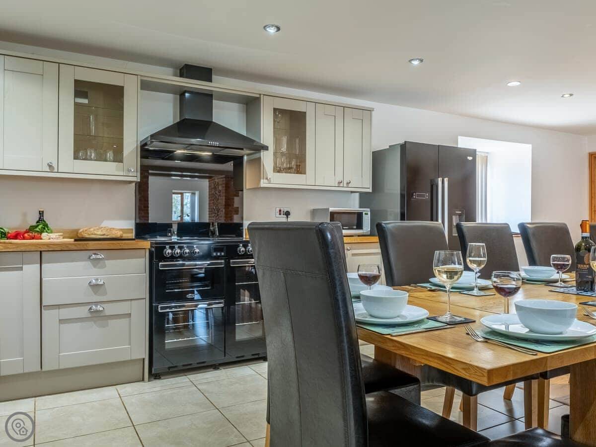 It sleeps twelve people. Six bedrooms, four bathrooms. Three of those are en-suite. It's a 5 Star place, so it's well finished and has good kit. It's open plan downstairs, so it works for everyone being together.