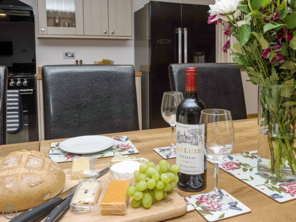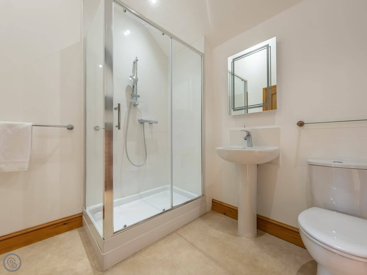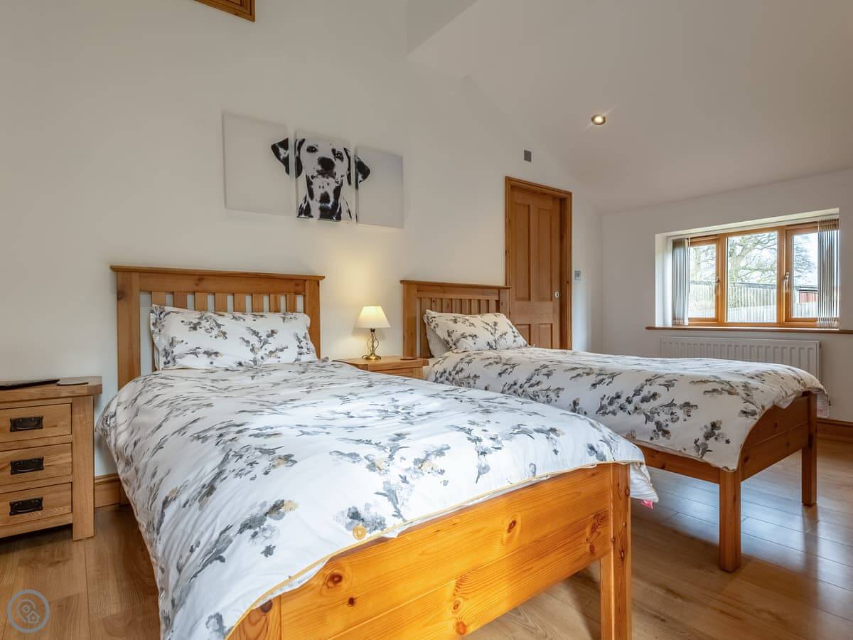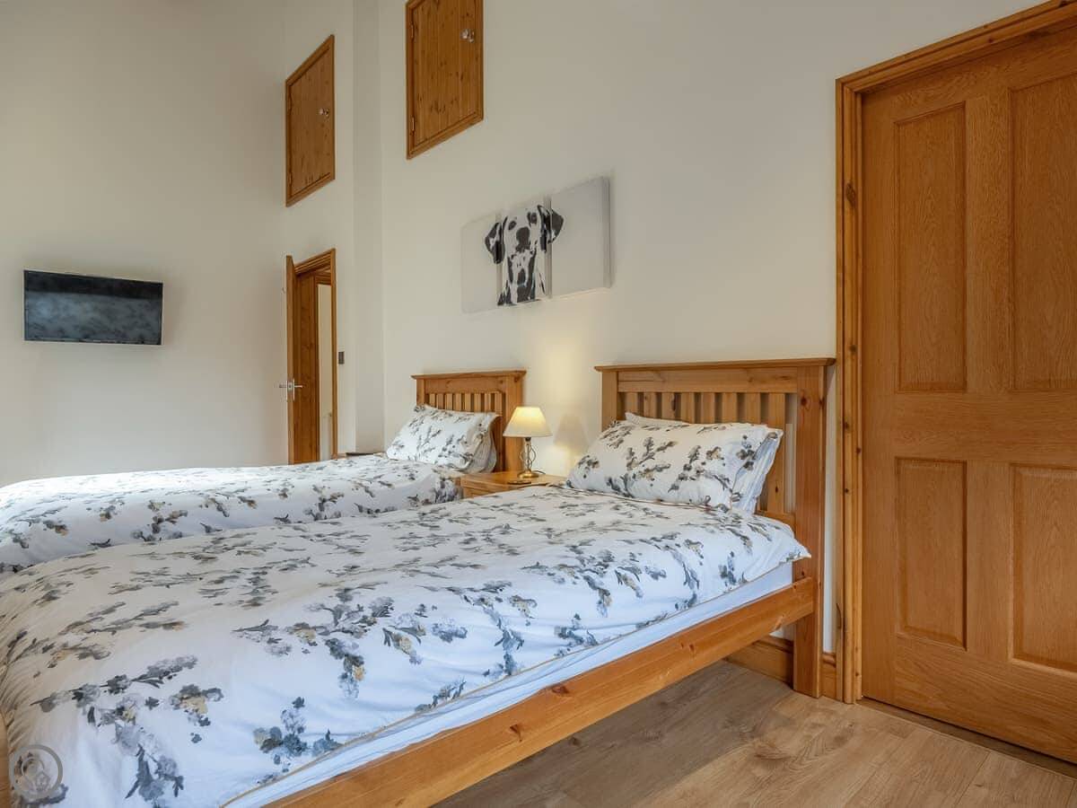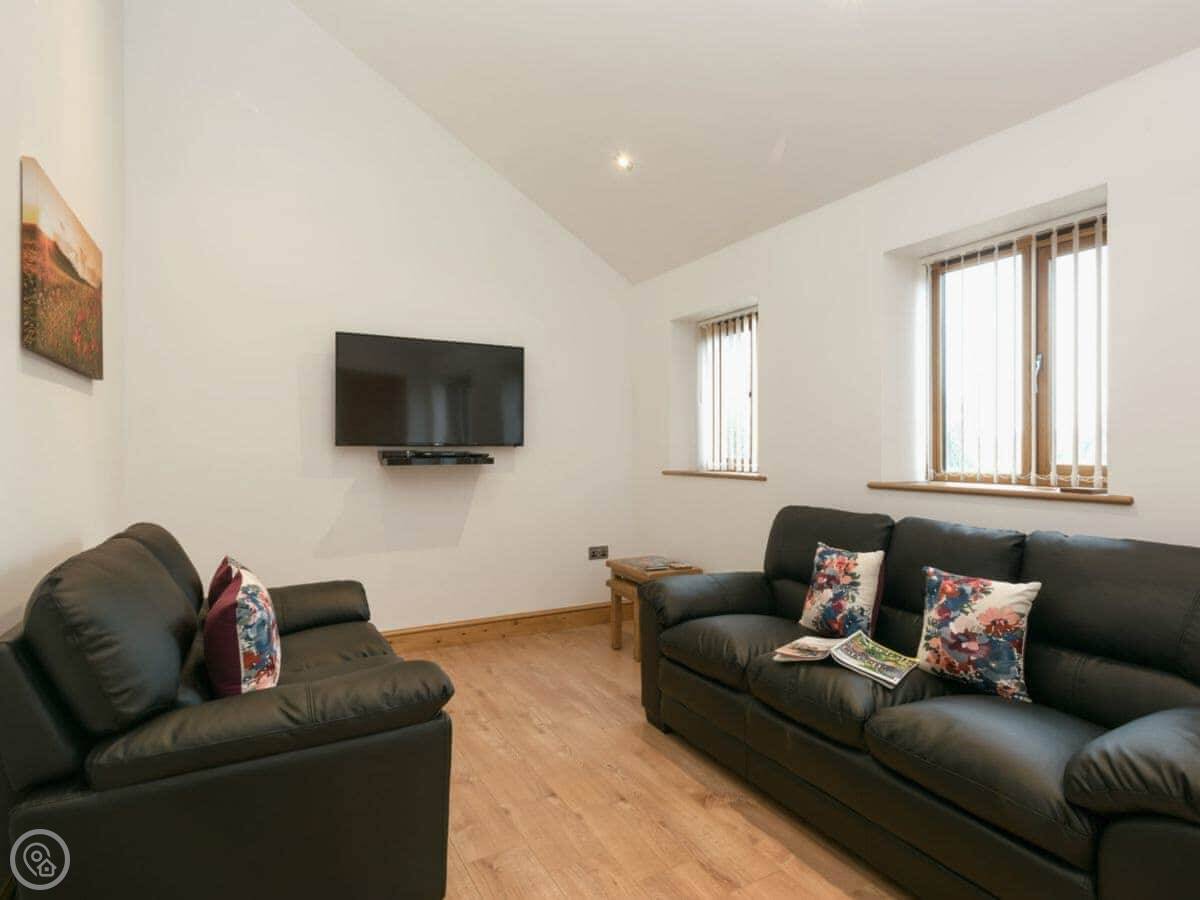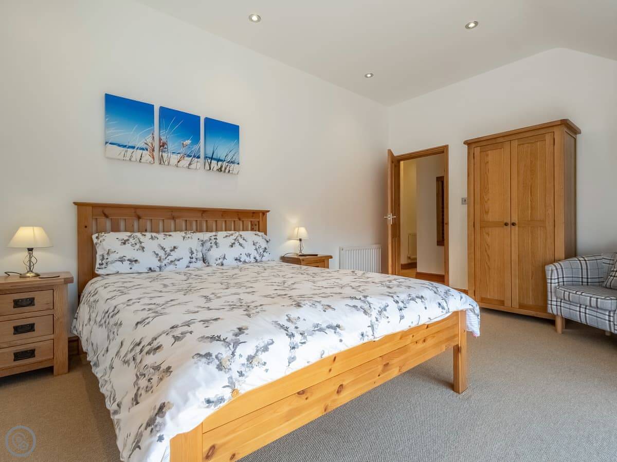 It sleeps twelve people. Six bedrooms, four bathrooms. Three of those are en-suite. It's a 5 Star place, so it's well finished and has good kit. It's open plan downstairs, so it works for everyone being together.