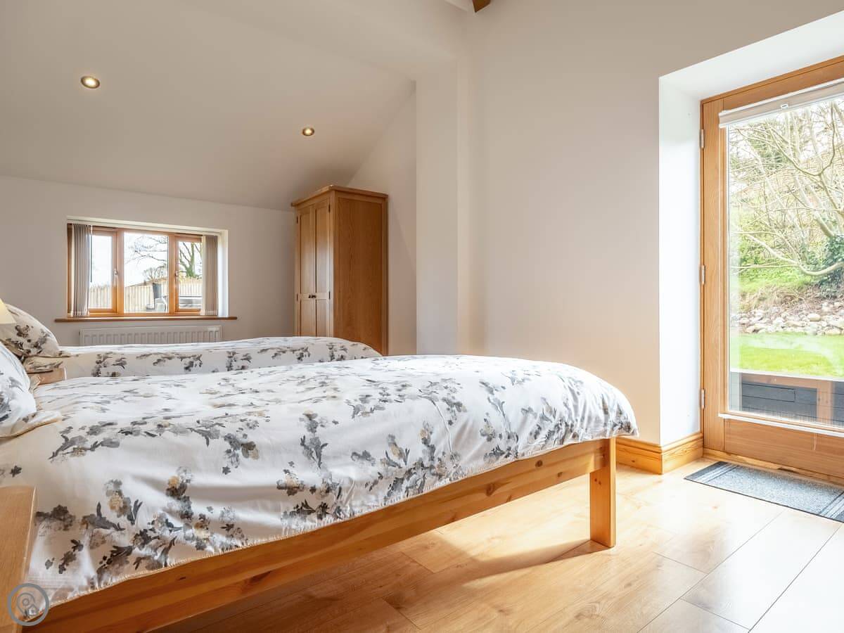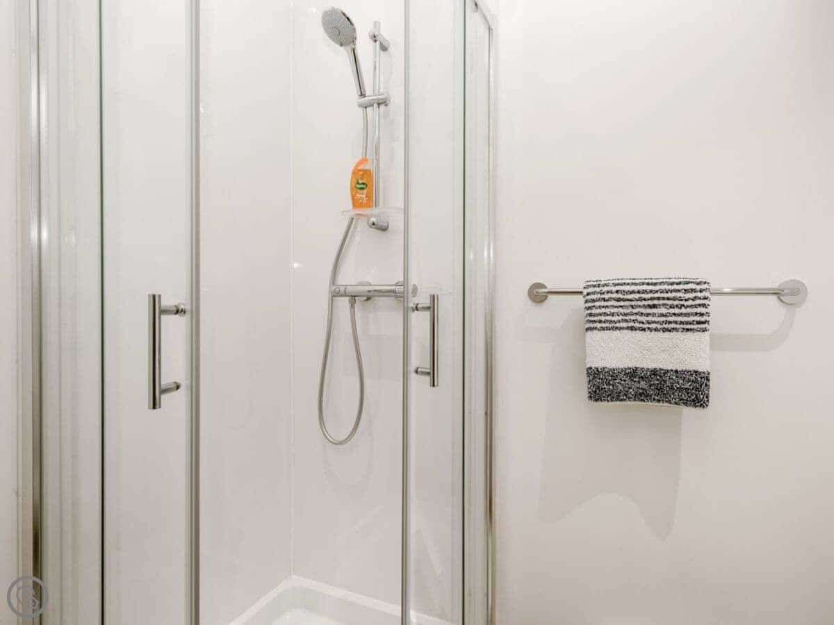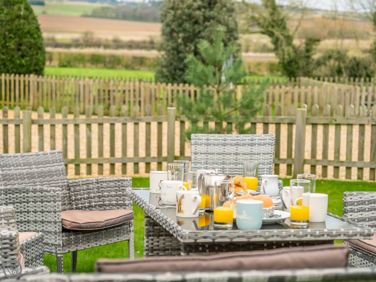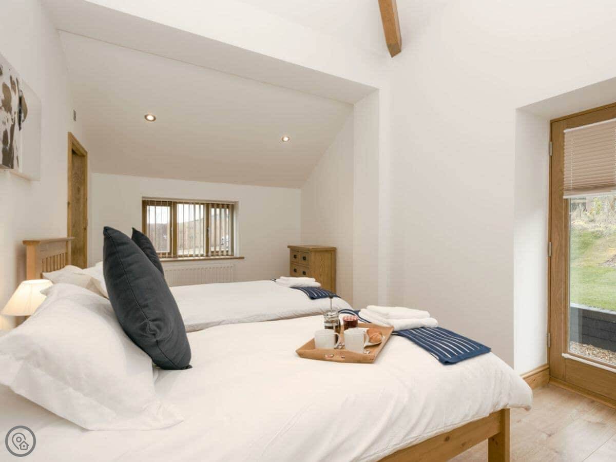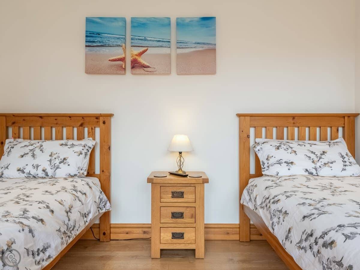 It sleeps twelve people. Six bedrooms, four bathrooms. Three of those are en-suite. It's a 5 Star place, so it's well finished and has good kit. It's open plan downstairs, so it works for everyone being together.