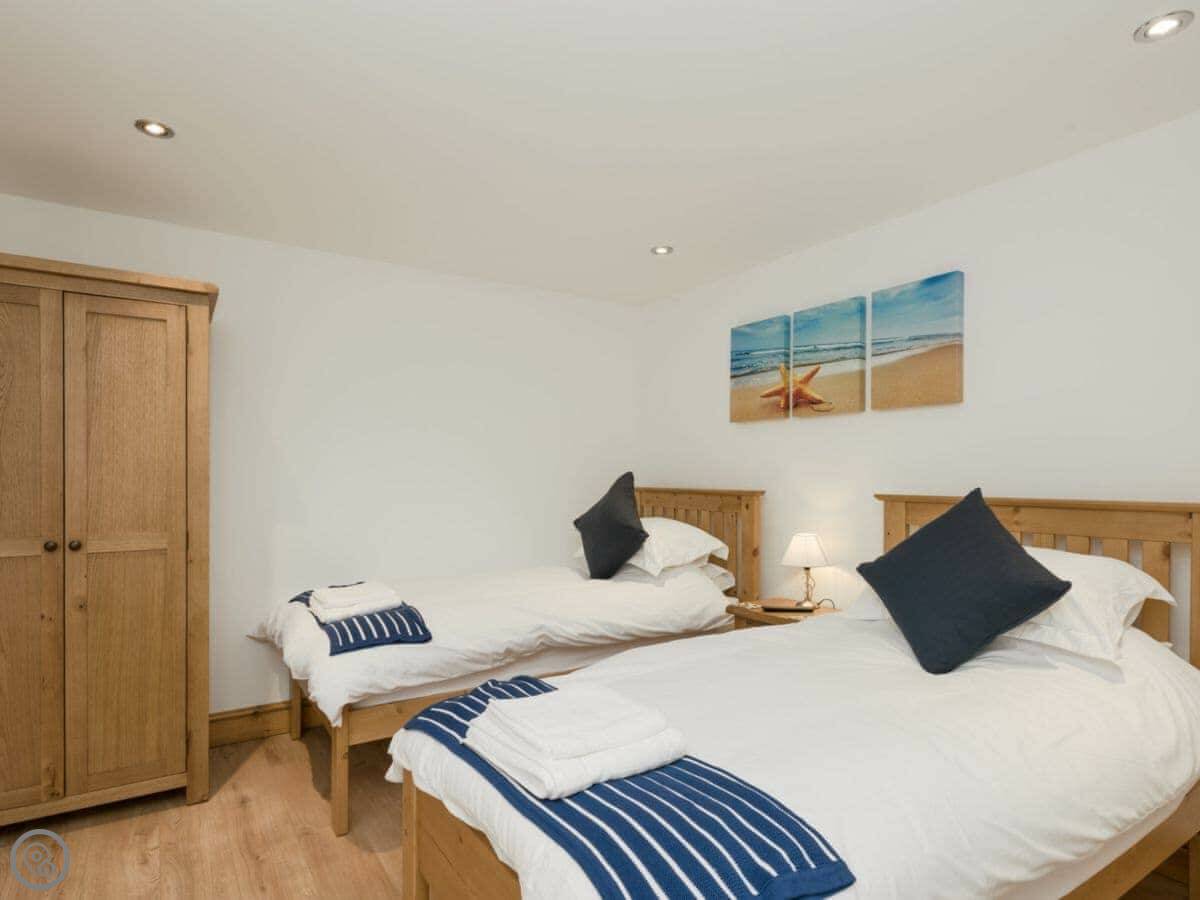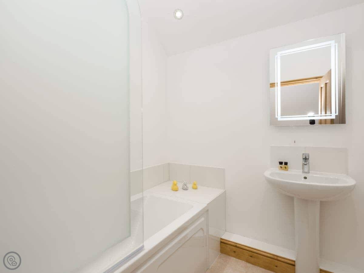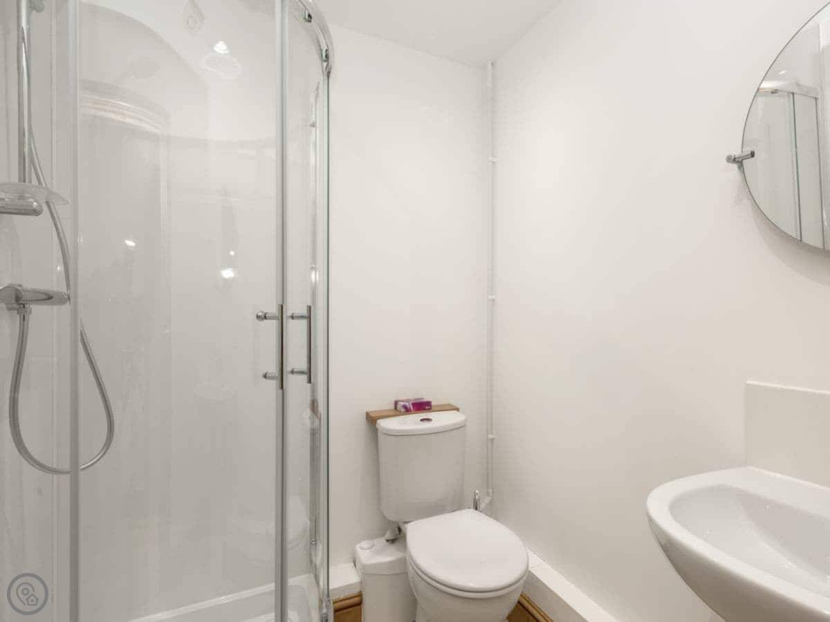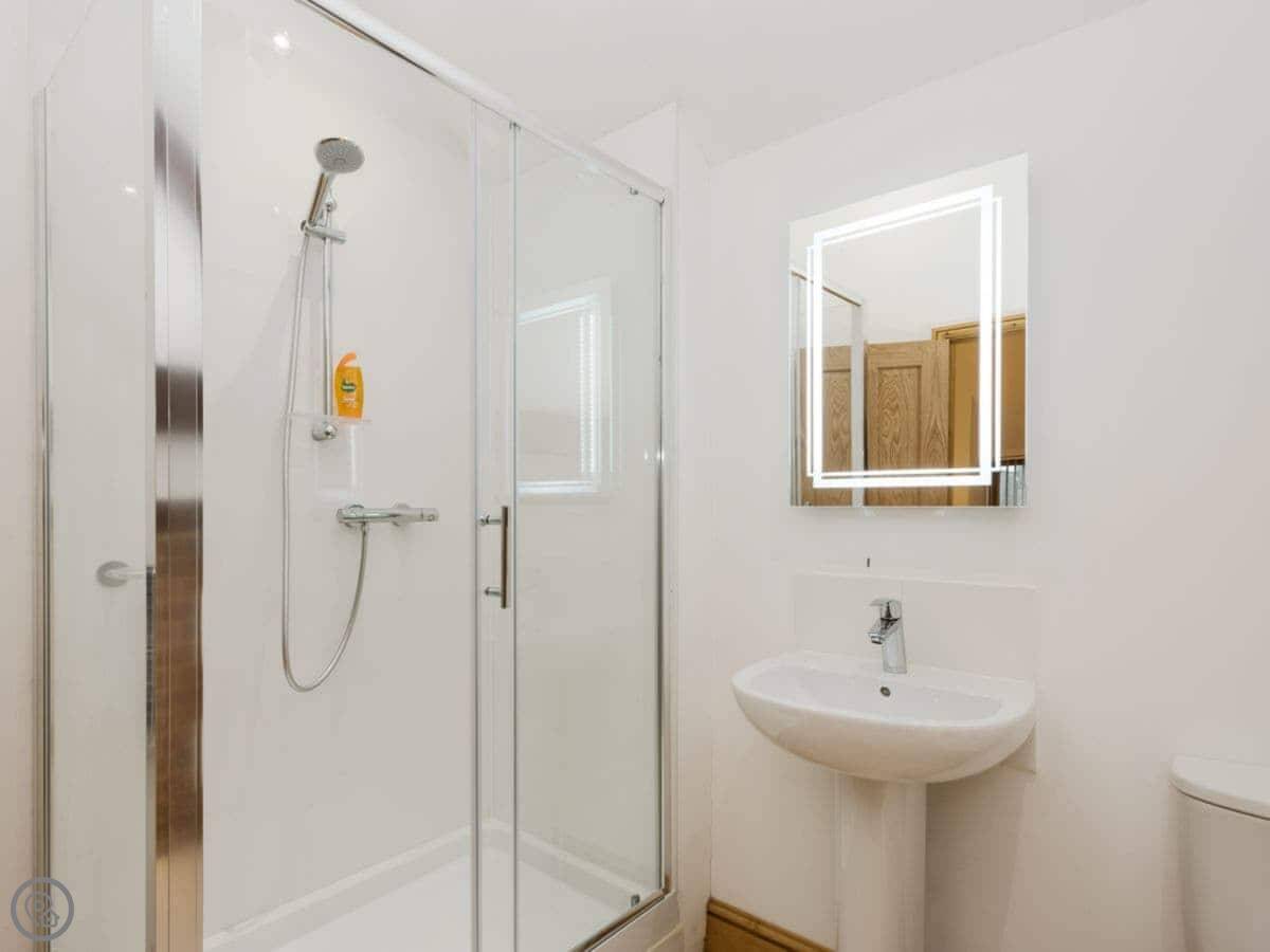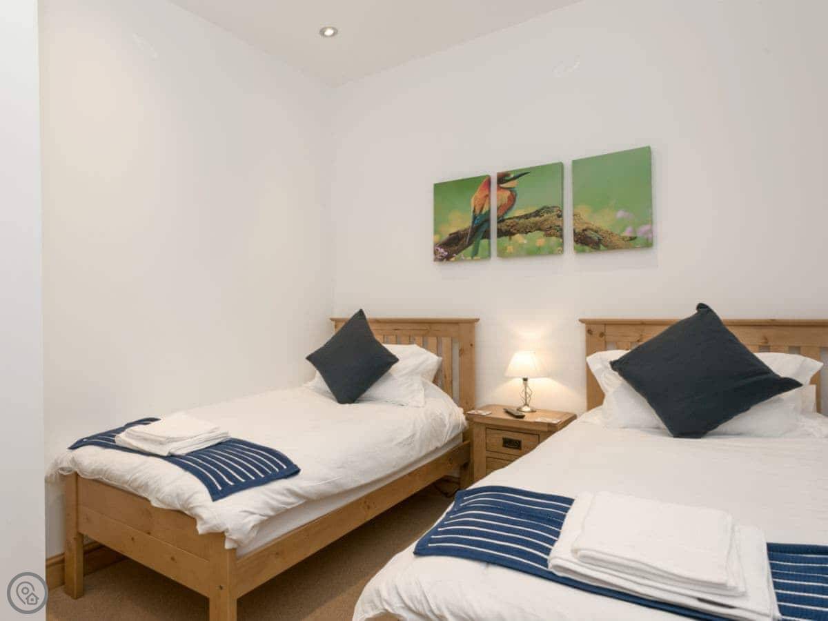 It sleeps twelve people. Six bedrooms, four bathrooms. Three of those are en-suite. It's a 5 Star place, so it's well finished and has good kit. It's open plan downstairs, so it works for everyone being together.