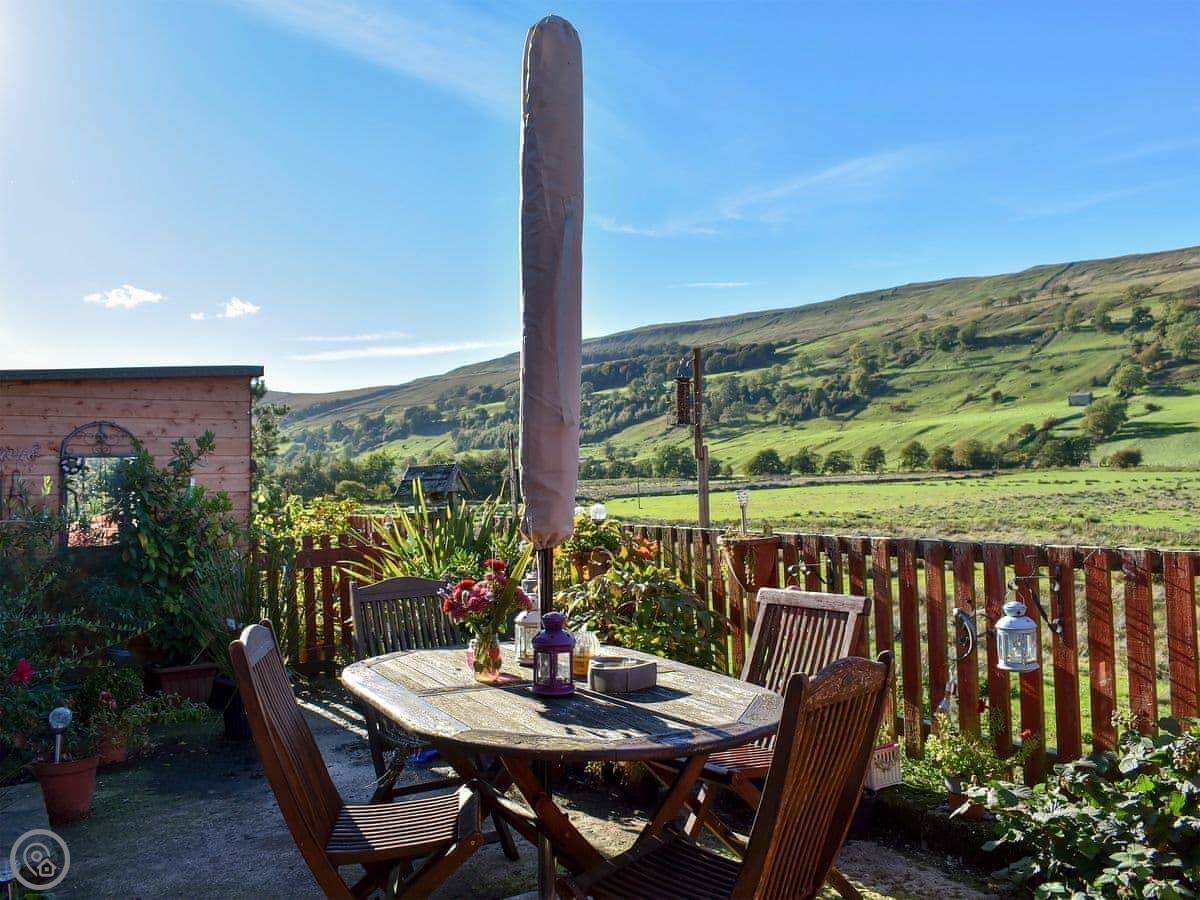Continental breakfast is available by prior arrangement with the owners. This can be taken indoors or on the patio at the rear of the property where the tranquillity and uninterrupted views of the Dale can be enjoyed along with a large variety of wild birds which will come to feed - spot the 2 woodpeckers! Shop 3 miles, pub and restaurant 1½ miles.