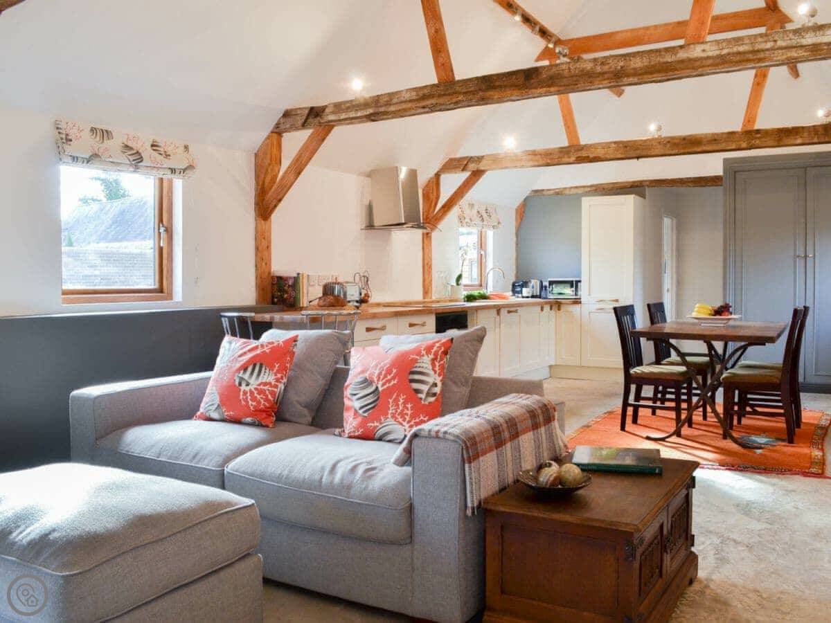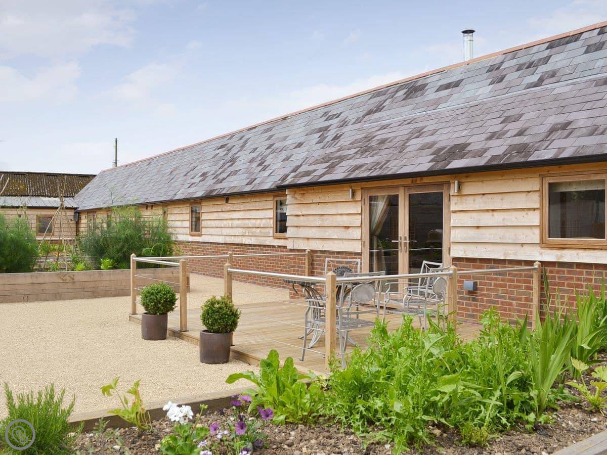 This is Chiddock Cottage in Alderholt. It's on our farm. It's one of four conversions in a sort of L-shape around a shared courtyard, so the neighbours are close. But you've got your own decked area out the front.