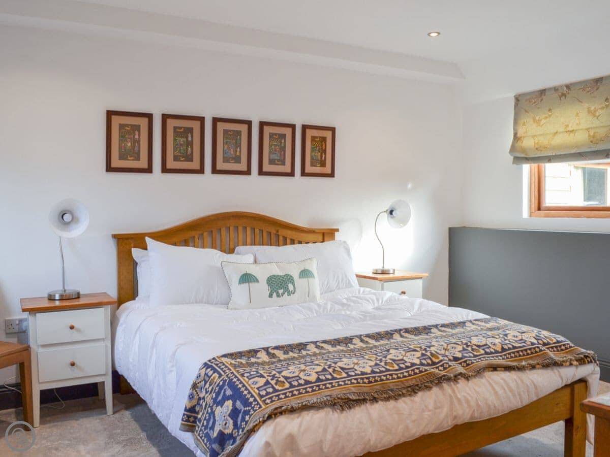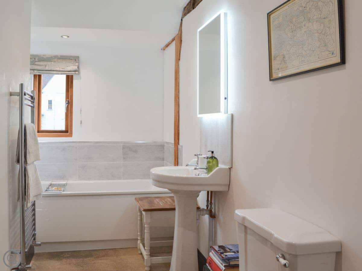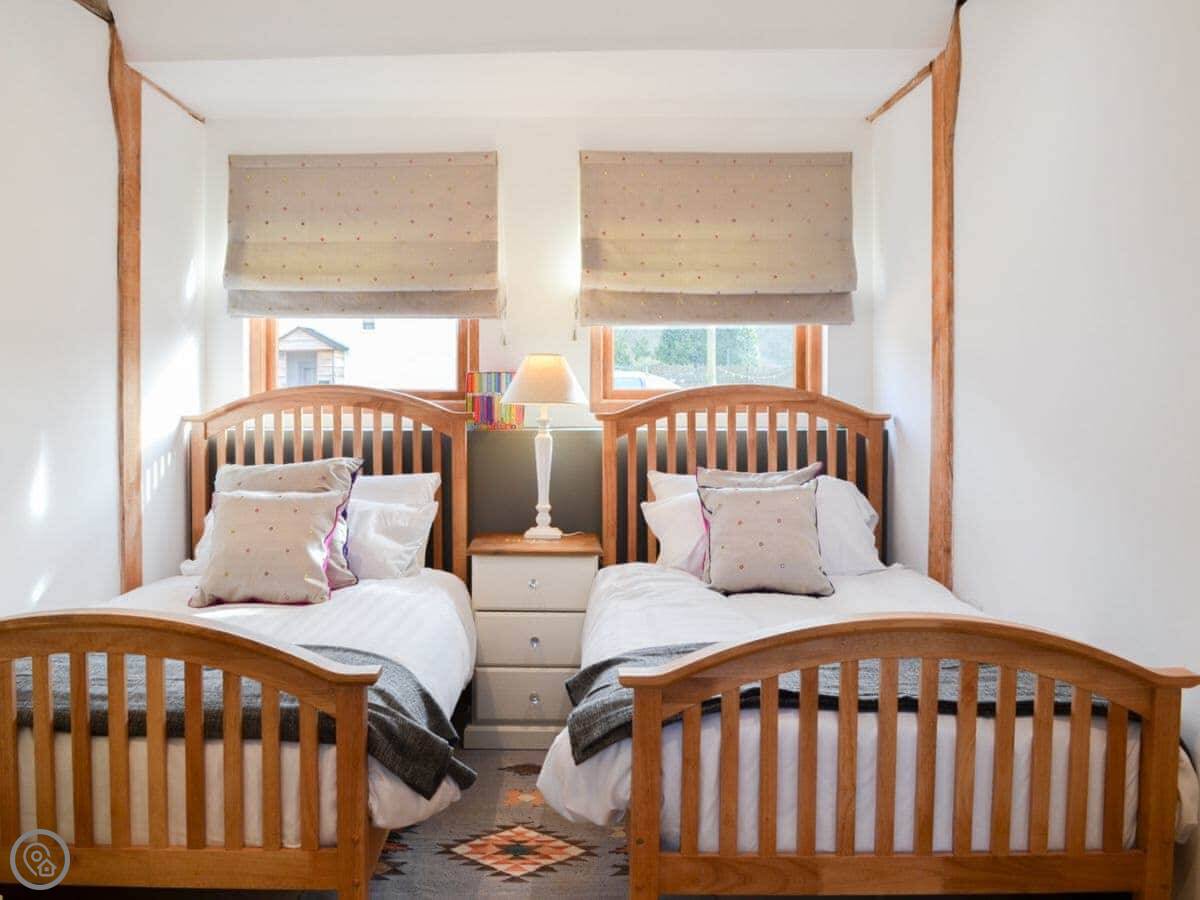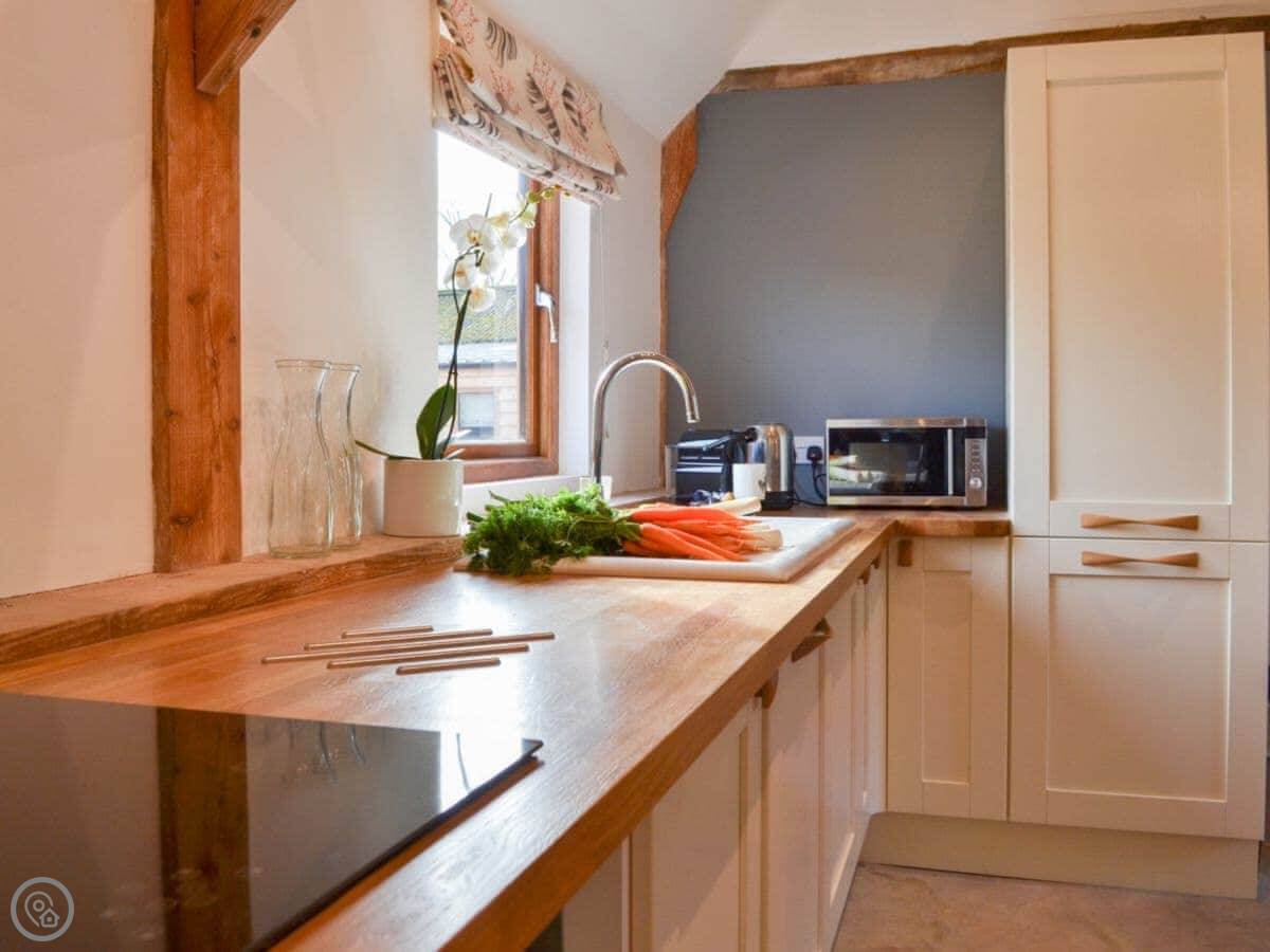 Outside, there's that shared courtyard with raised beds where we grow veg and herbs. There's a fire pit, a pizza oven, and a BBQ there for everyone to use. There's a kids' play area. The chickens wander about, so you get fresh eggs. If you're bringing horses, we can do livery – just ask beforehand.