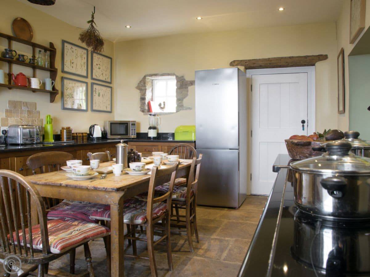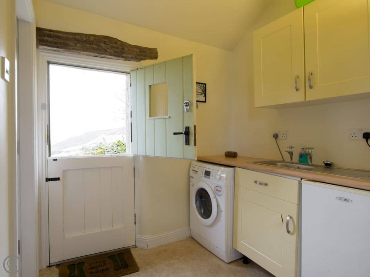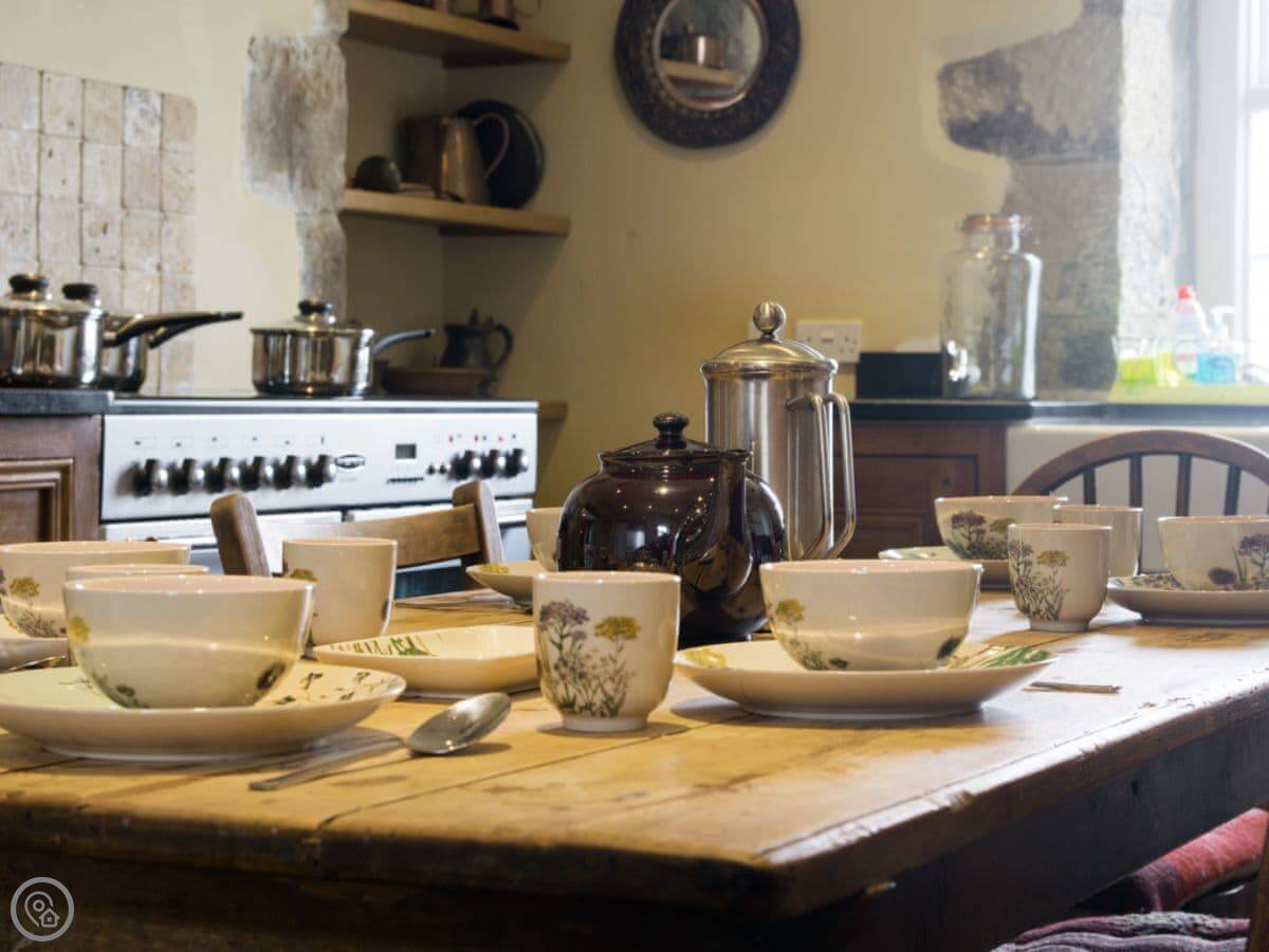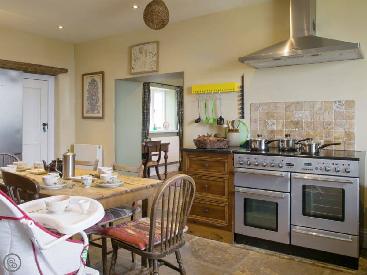 For facilities, it's got a woodburning stove, a washing machine, dishwasher, WiFi and TV. Bedding and towels are included. There's parking on site, a garden, and a BBQ. We accept up to two pets. A cot, highchair and stairgate are there if you need them.