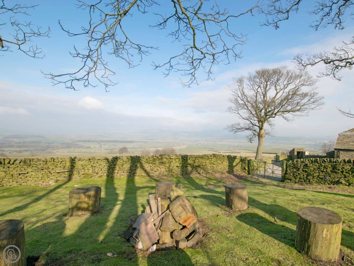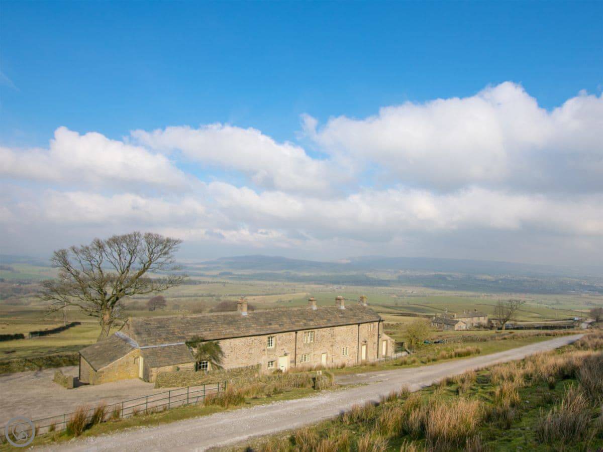 Higher Scarcliffe is a farmhouse near Broughton in North Yorkshire. It's a mile up a single track road from Carleton village. The views are over the Broughton Hall Estate towards the Dales, and they're very good. It's detached and you get the place to yourselves.