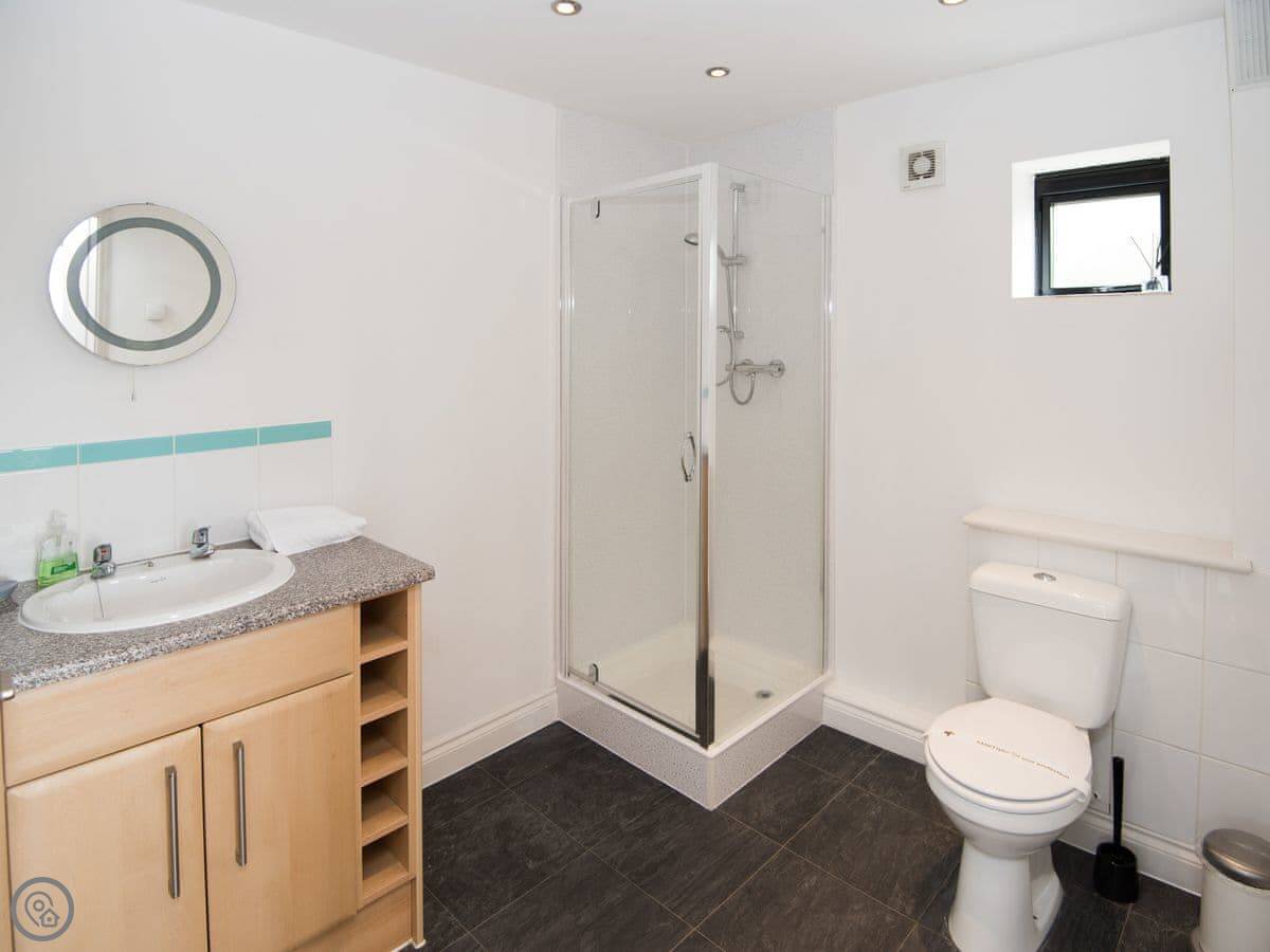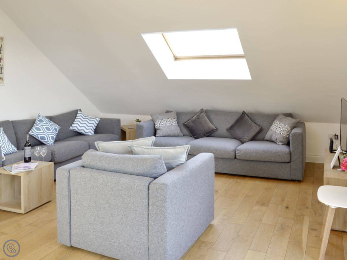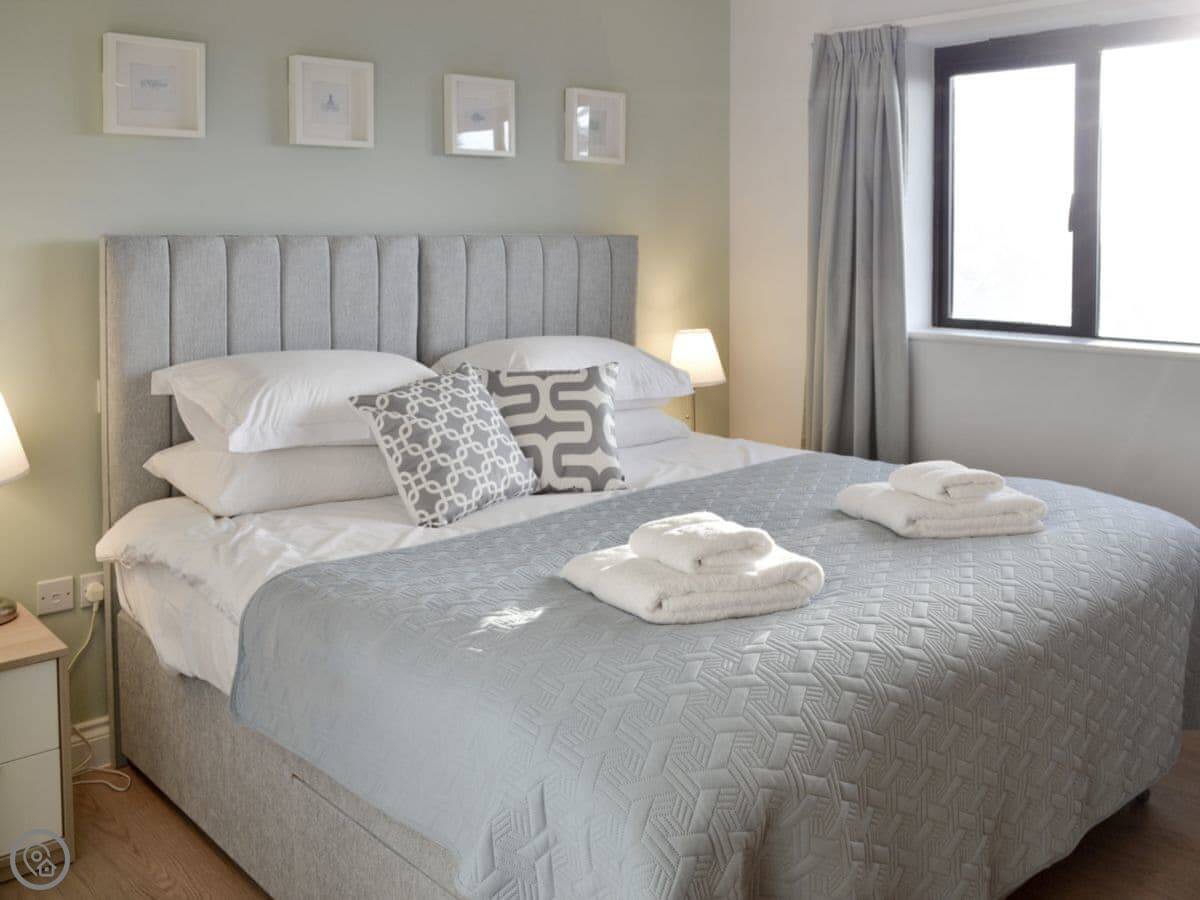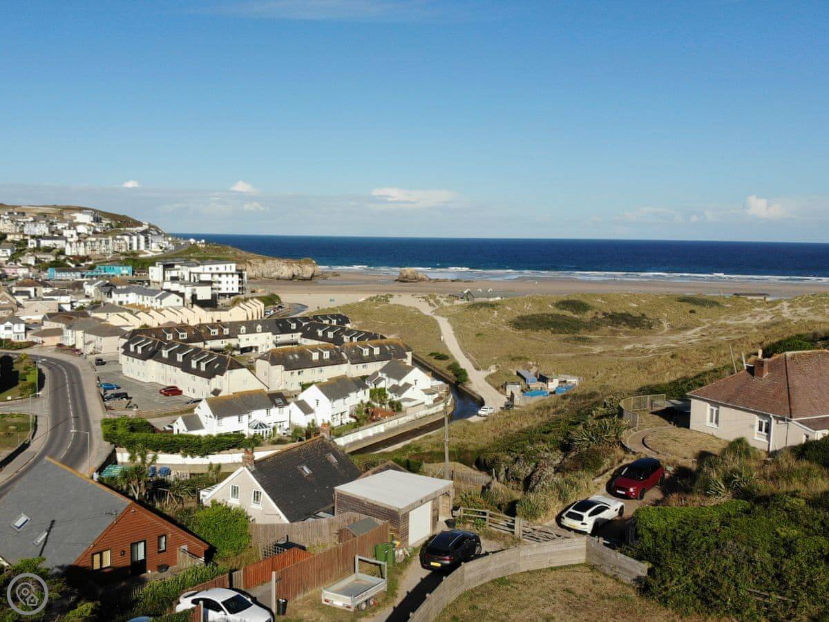 The beach is about half a mile walk down the hill. It's a huge sandy beach, good for surfing or just walking. The town centre with shops and places to eat is about the same distance. There's a pub half a mile away.