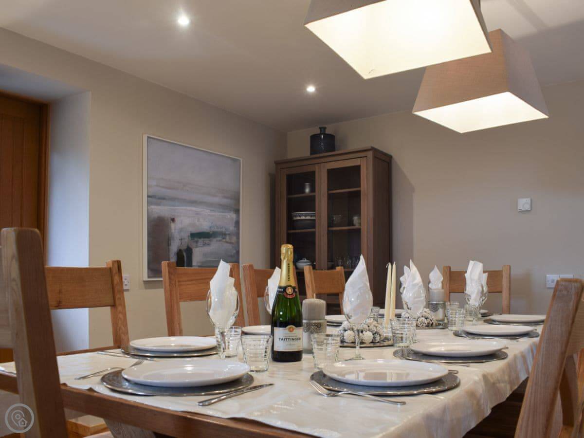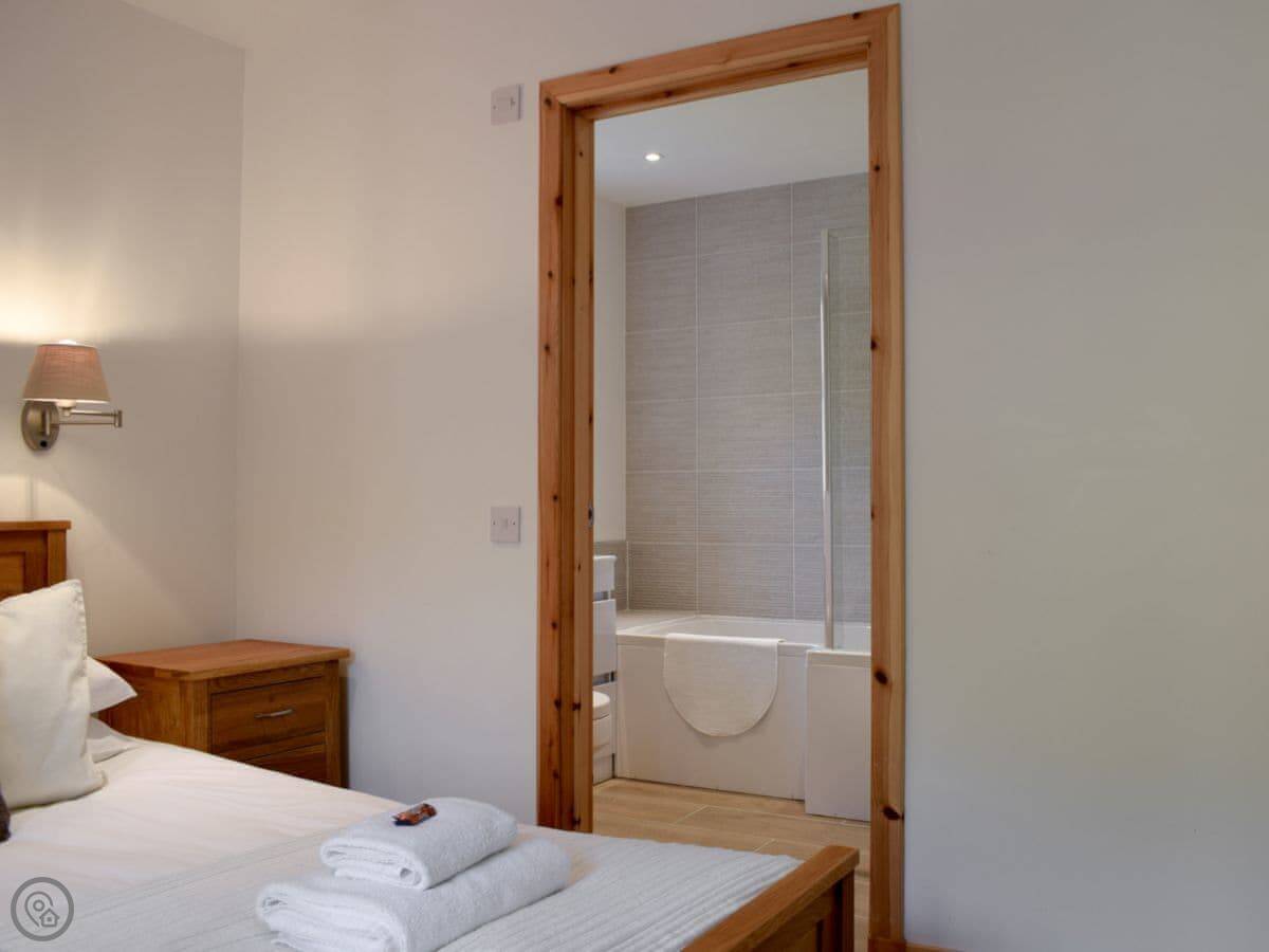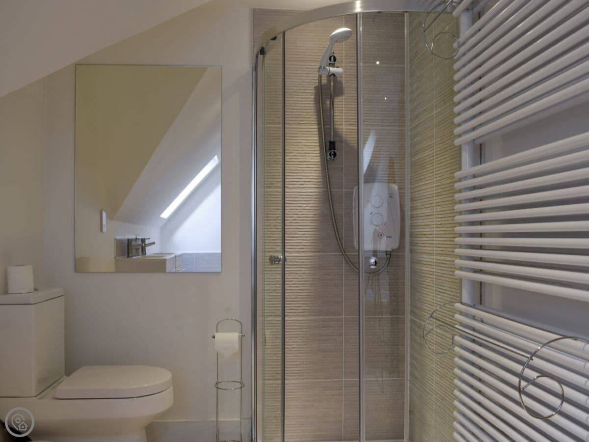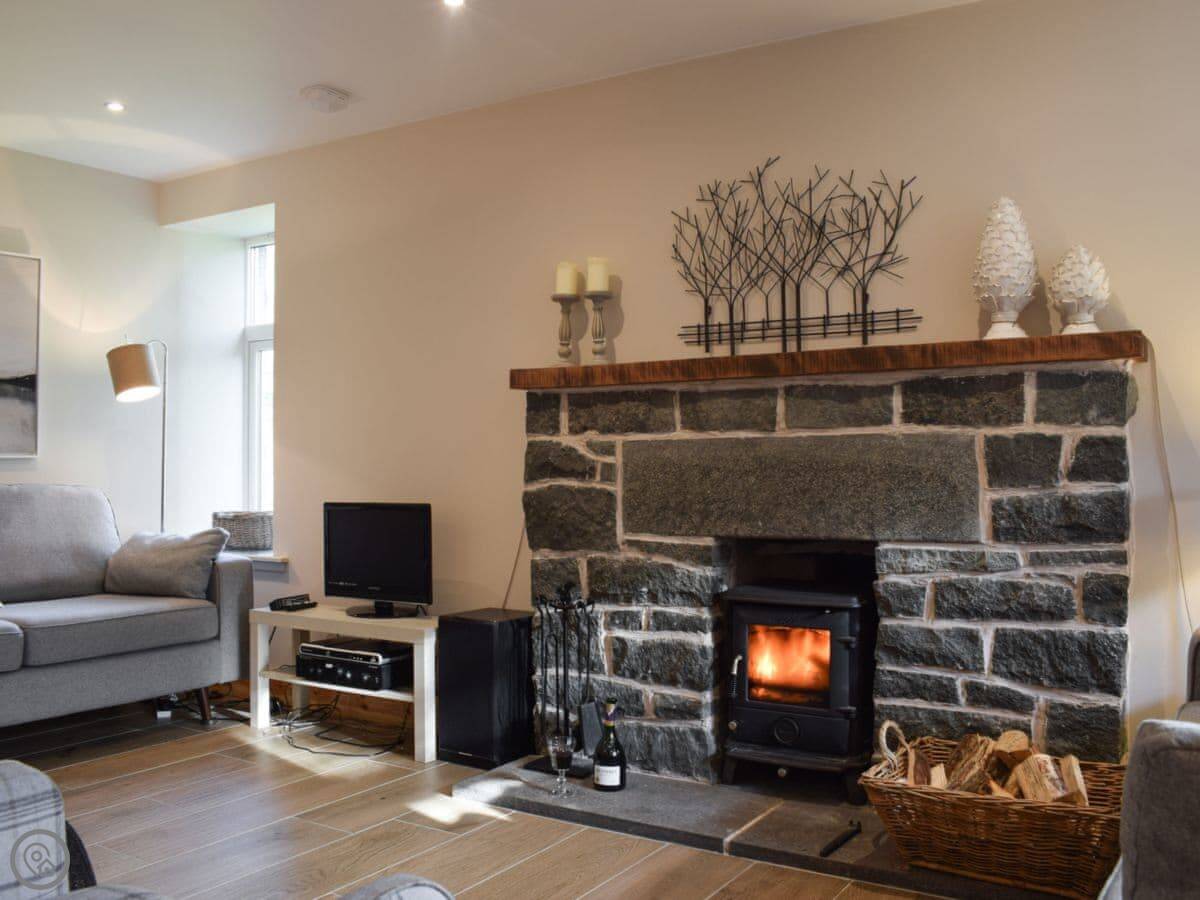 Downstairs, there's a large open plan living area with a wood burner. The kitchen has a range cooker. There's a separate utility room for coats and boots, and a TV room with games. One double bedroom is on the ground floor with its own shower room.