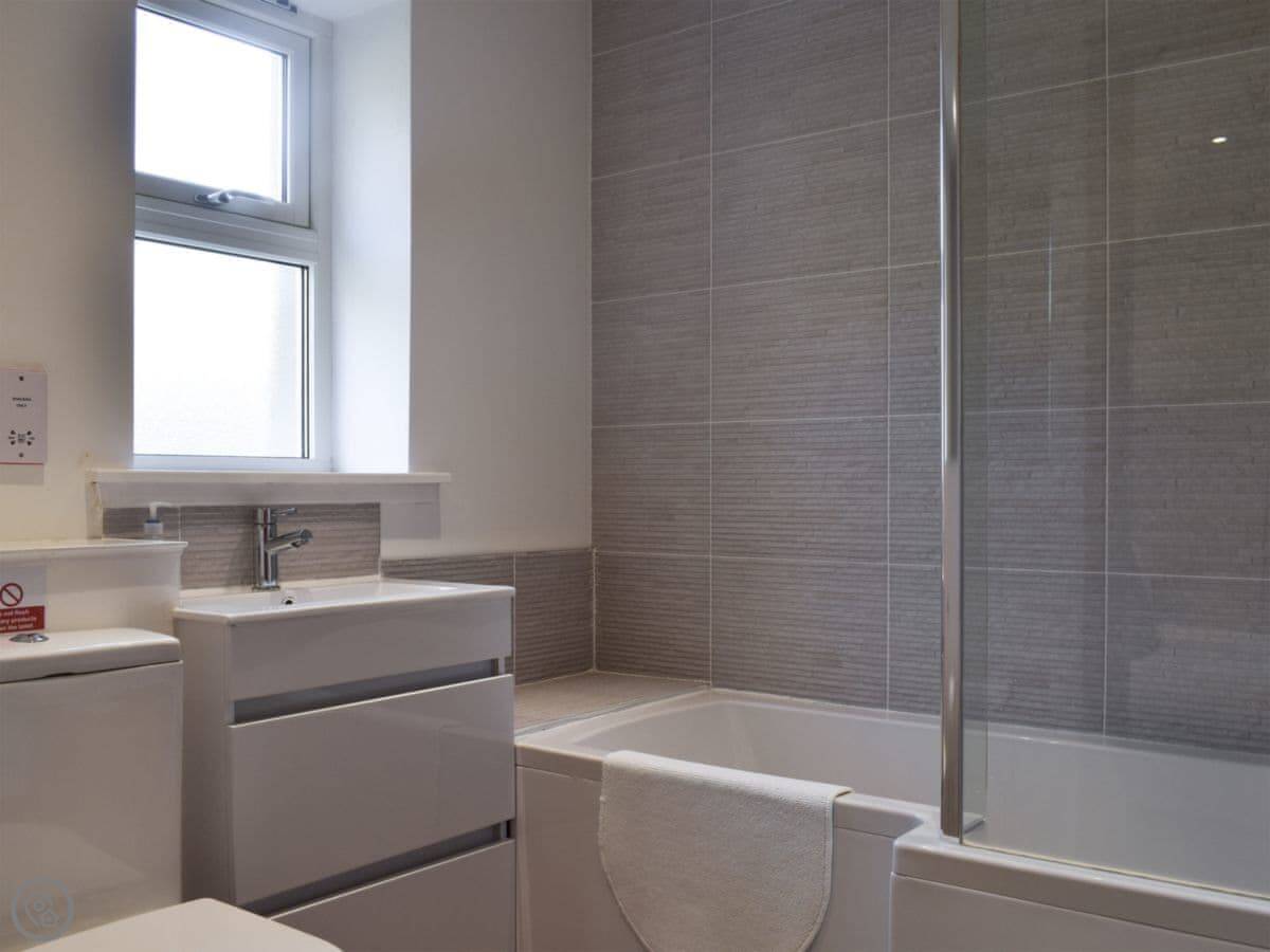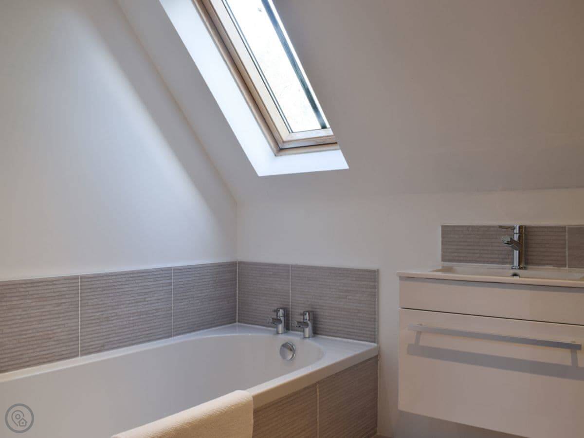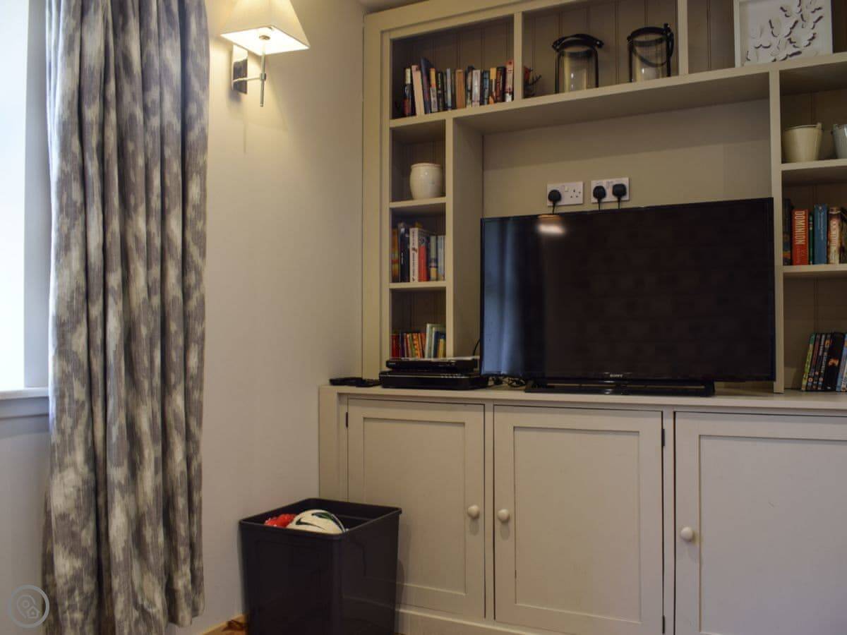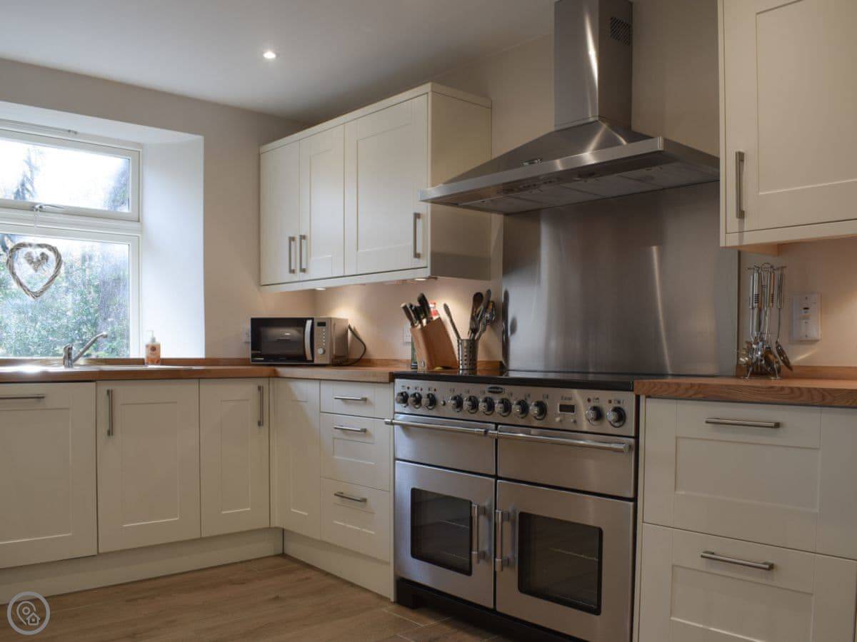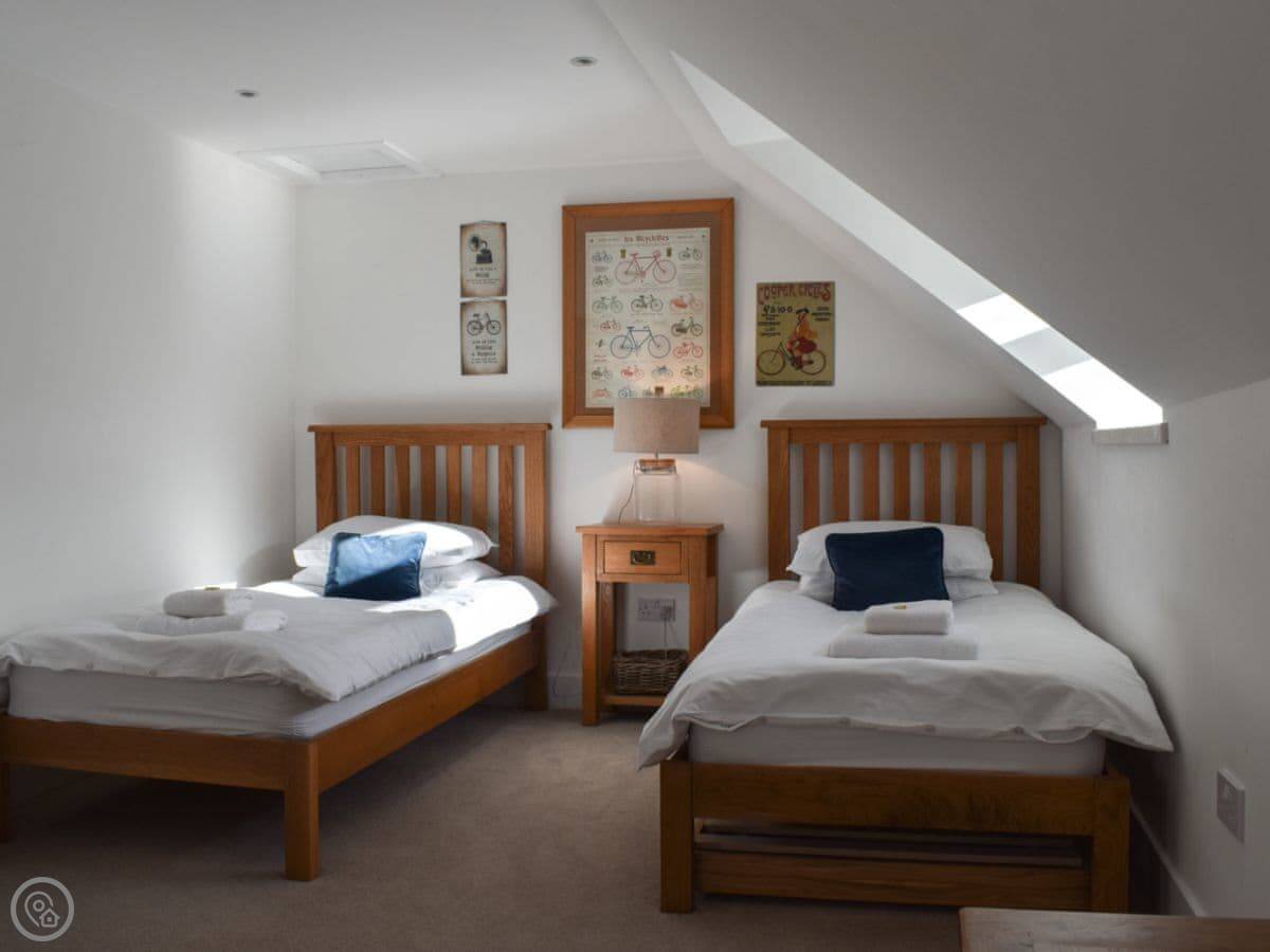 Downstairs, there's a large open plan living area with a wood burner. The kitchen has a range cooker. There's a separate utility room for coats and boots, and a TV room with games. One double bedroom is on the ground floor with its own shower room.