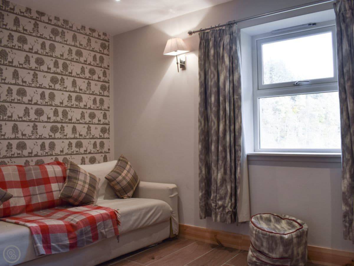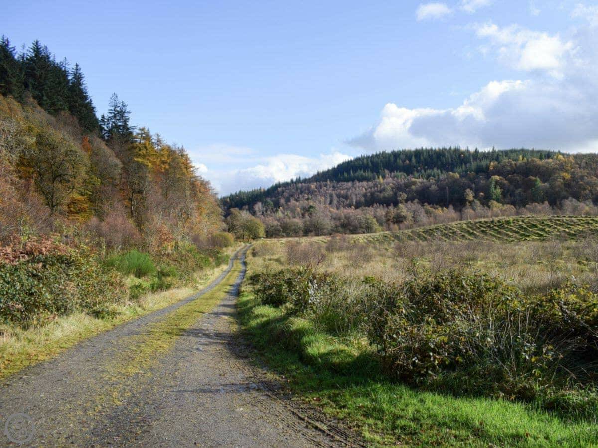 Craigmuick Cottage is just outside Aberfoyle, in the Queen Elizabeth Forest Park. It's in the middle of the woods, up a forestry track. You'll need to drive carefully on that track, it's got potholes. The location means there's no mobile signal, but you can call people over the wifi.