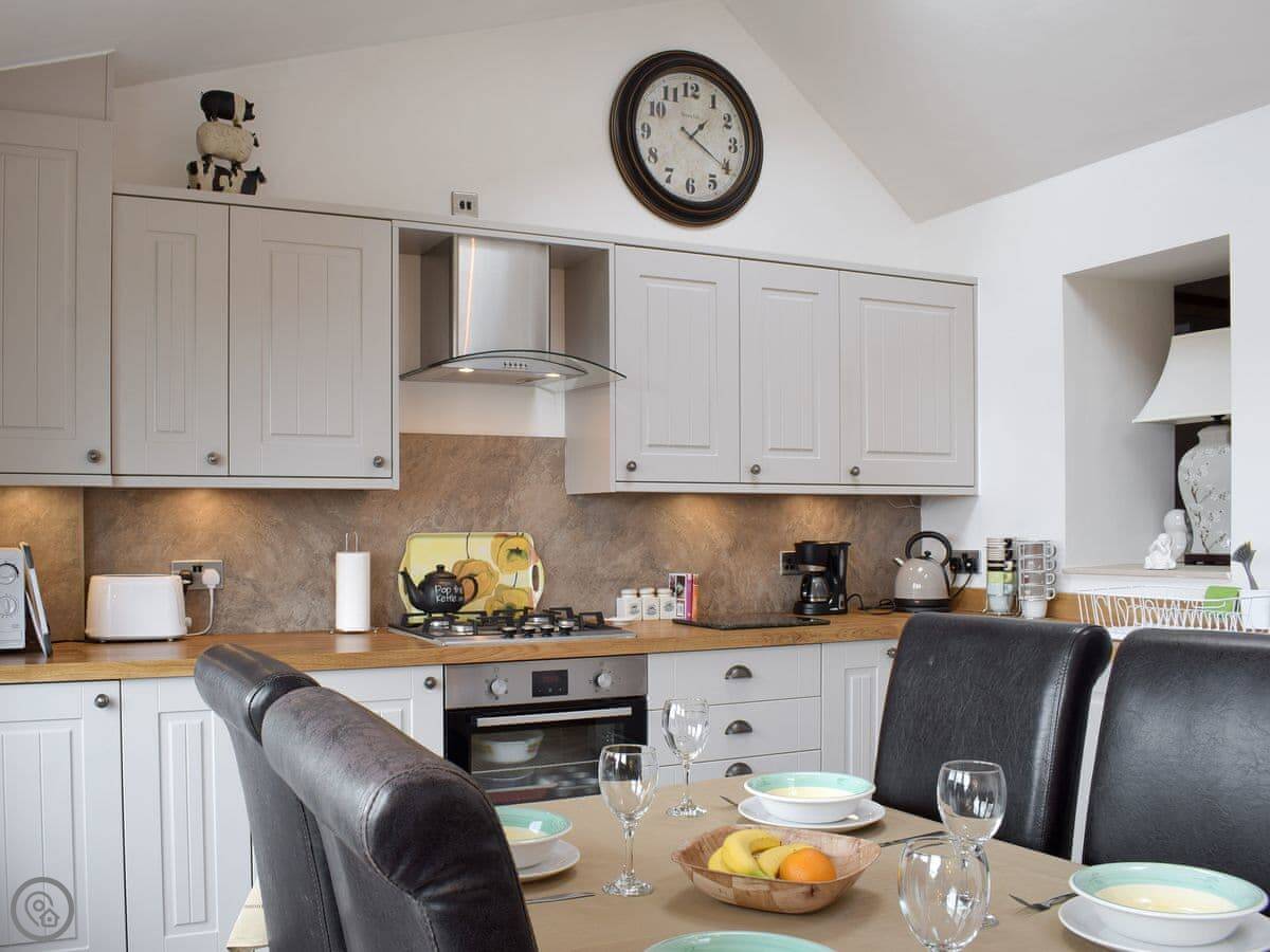 Inside, there's a woodburning stove for cool evenings, a dishwasher, washing machine, and WiFi. Bedding and towels are included. There's a cot if you need it. No pets, I'm afraid.
