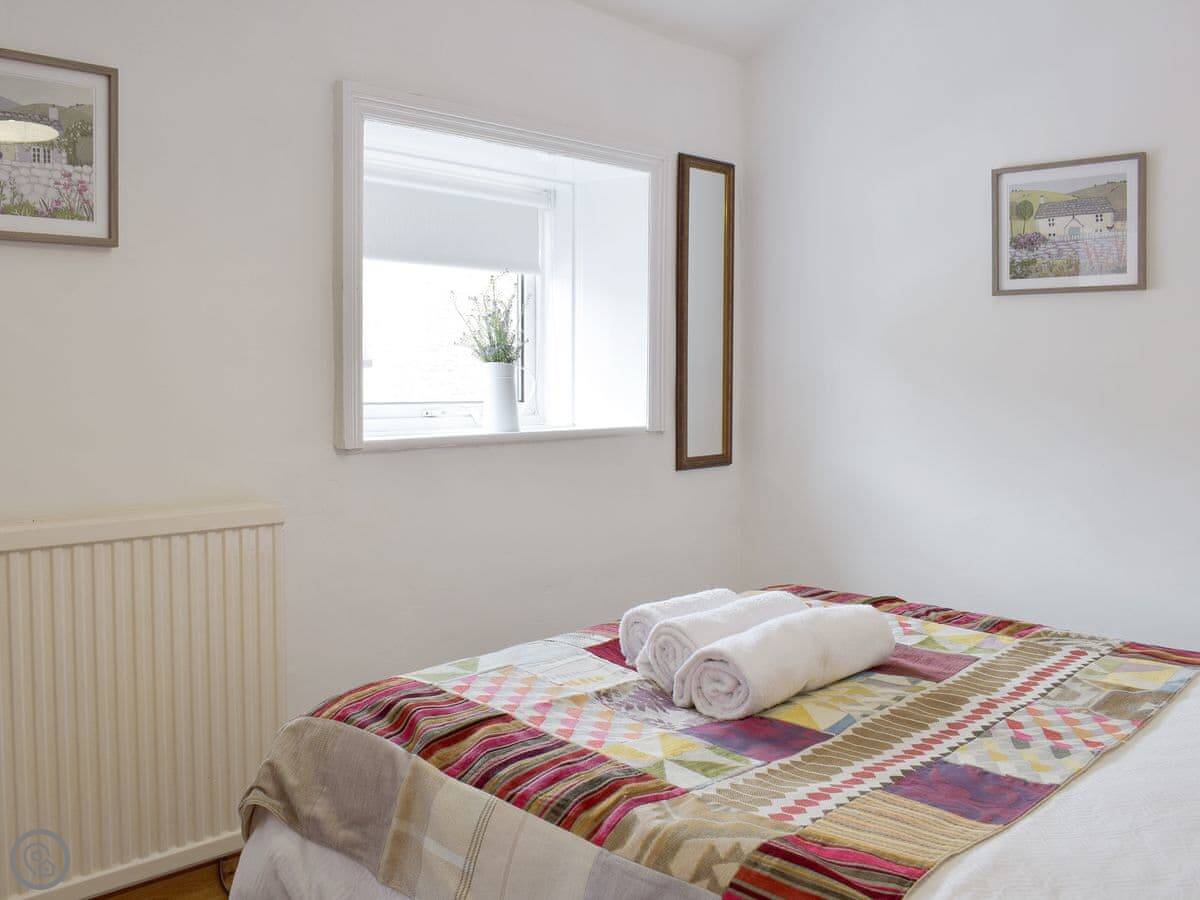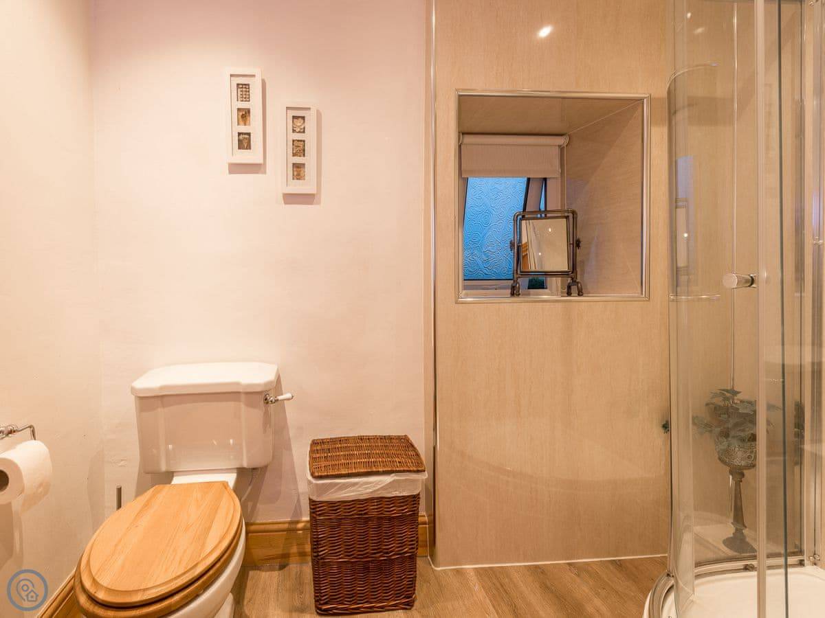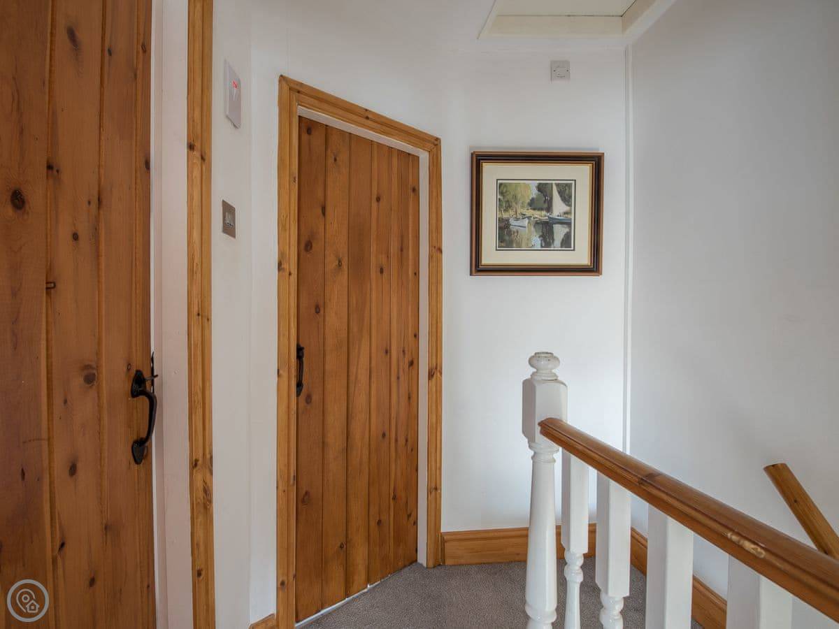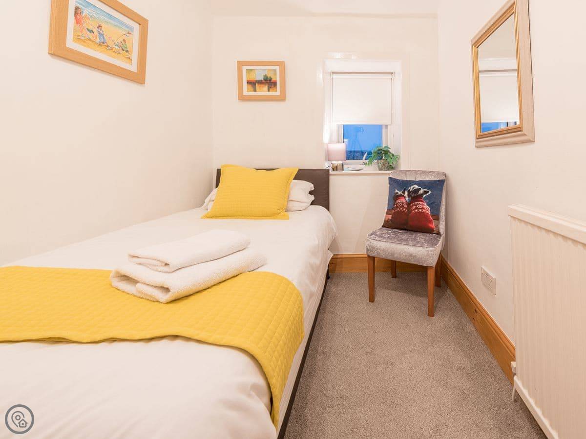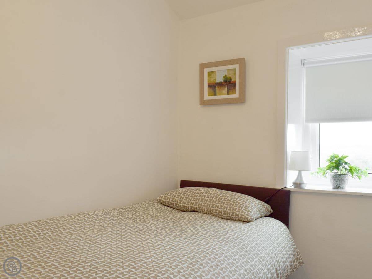 It sleeps three. Two bedrooms, one bathroom with a shower. It's got a 4 Star rating. It's comfortable and clean. The stairs are open tread and a bit steep, right enough. They wind round too. You'll want to be a bit careful.