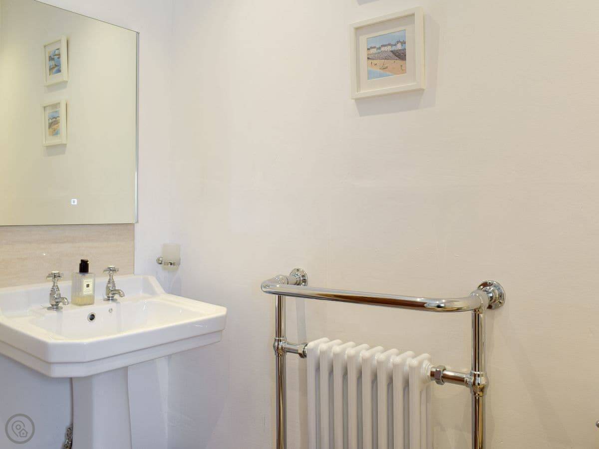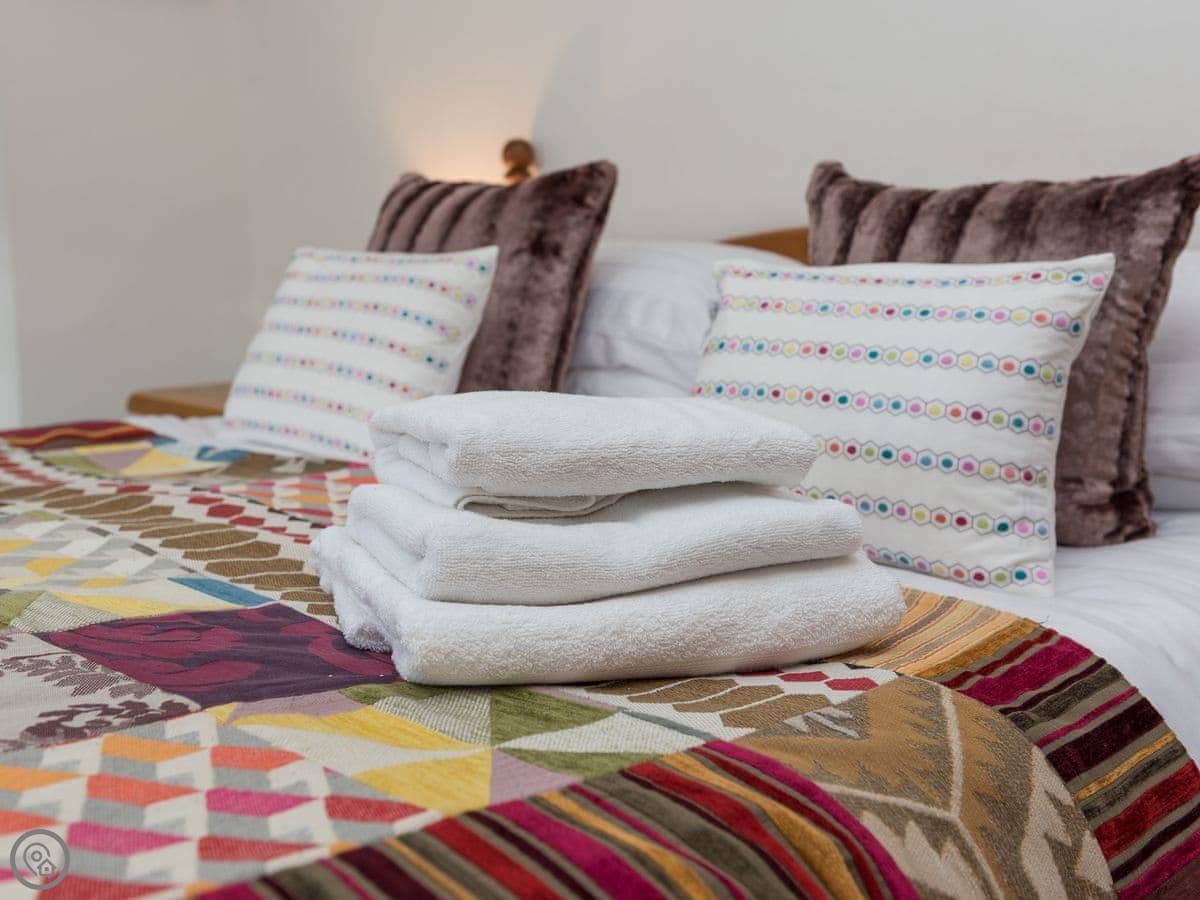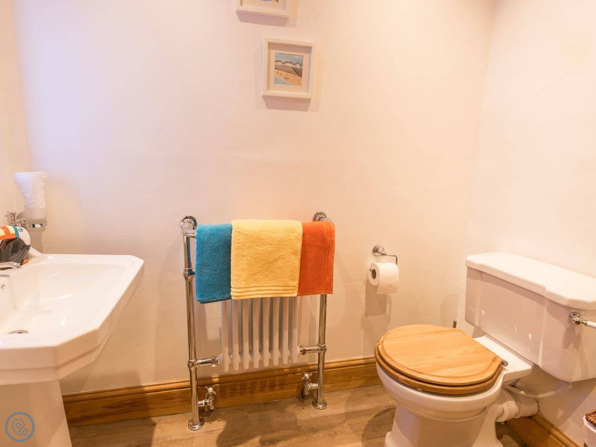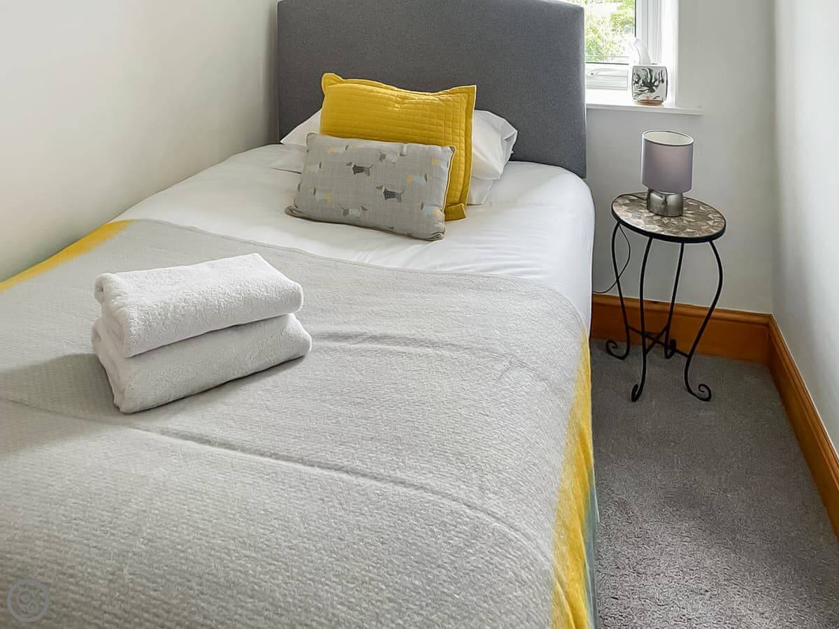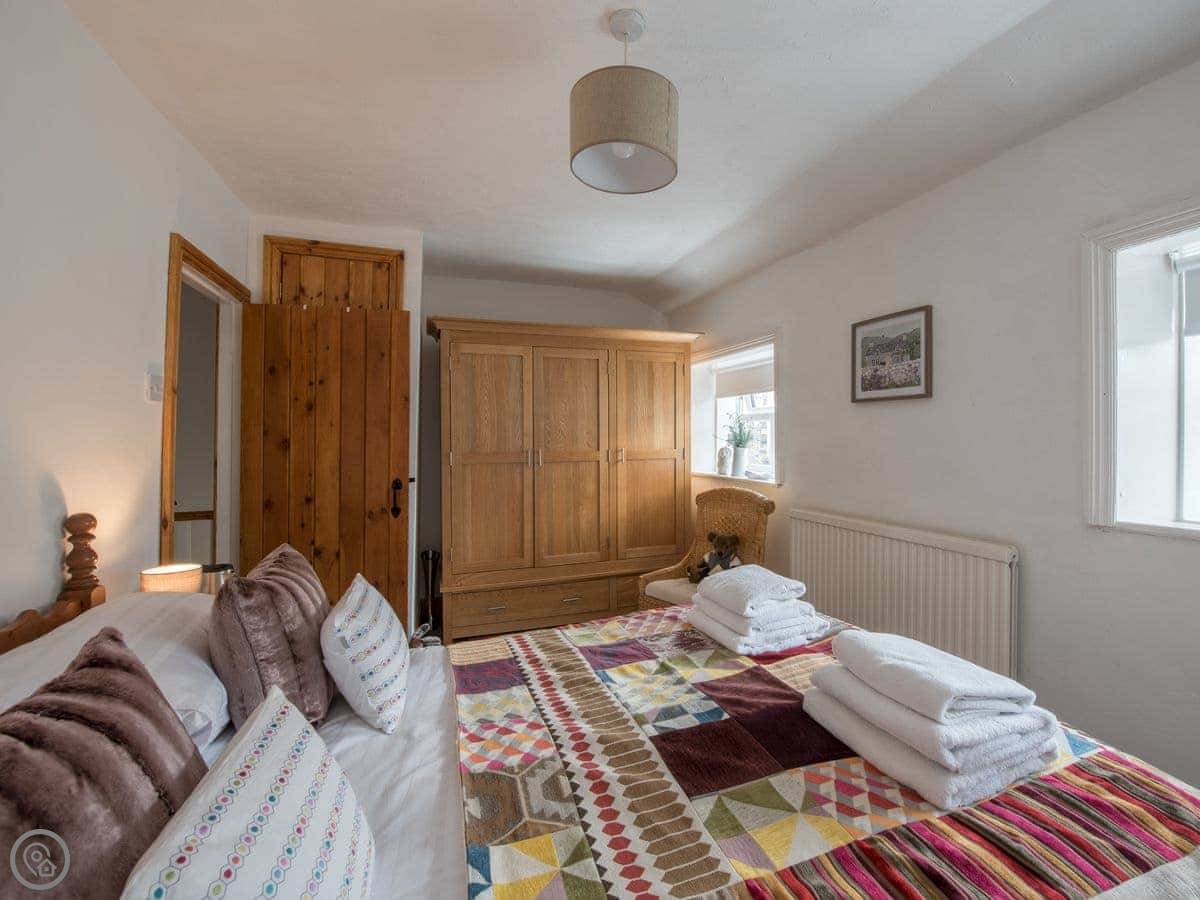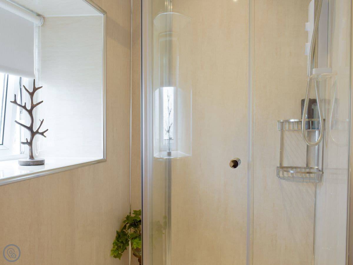 It sleeps three. Two bedrooms, one bathroom with a shower. It's got a 4 Star rating. It's comfortable and clean. The stairs are open tread and a bit steep, right enough. They wind round too. You'll want to be a bit careful.