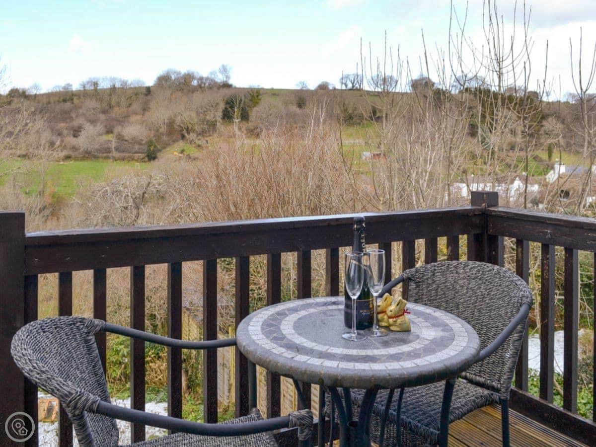 Right, Middle Wicket. It's a detached house in Trusham, in the Teign Valley. It's a quiet spot. The house is what they call upside-down, so the living room and kitchen are upstairs. That's because of the views. You get a balcony off the living area and you can see right across the valley. We've seen deer on the hillside from there.