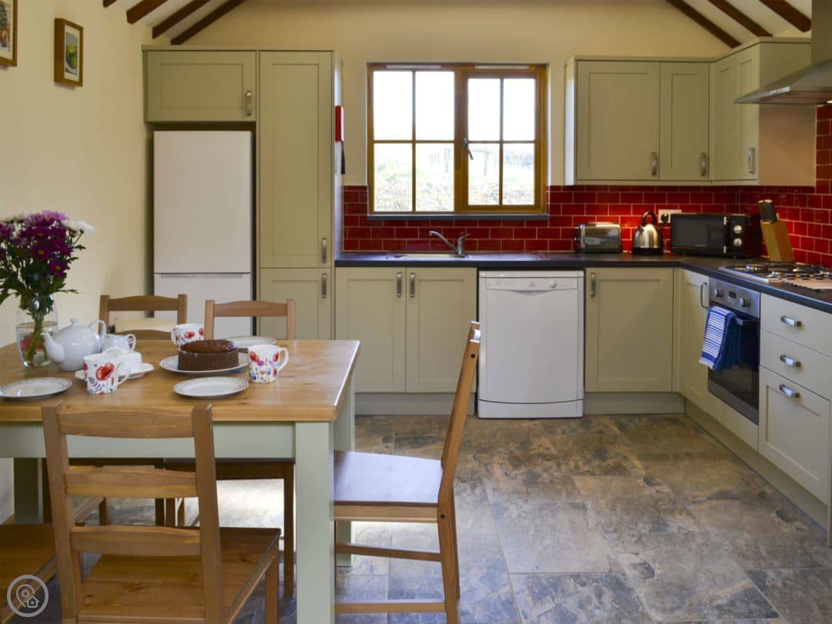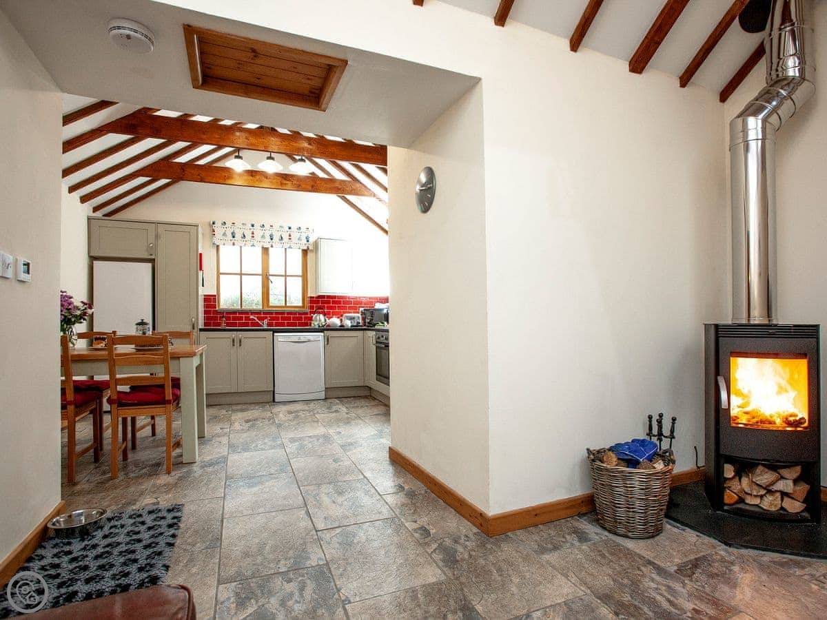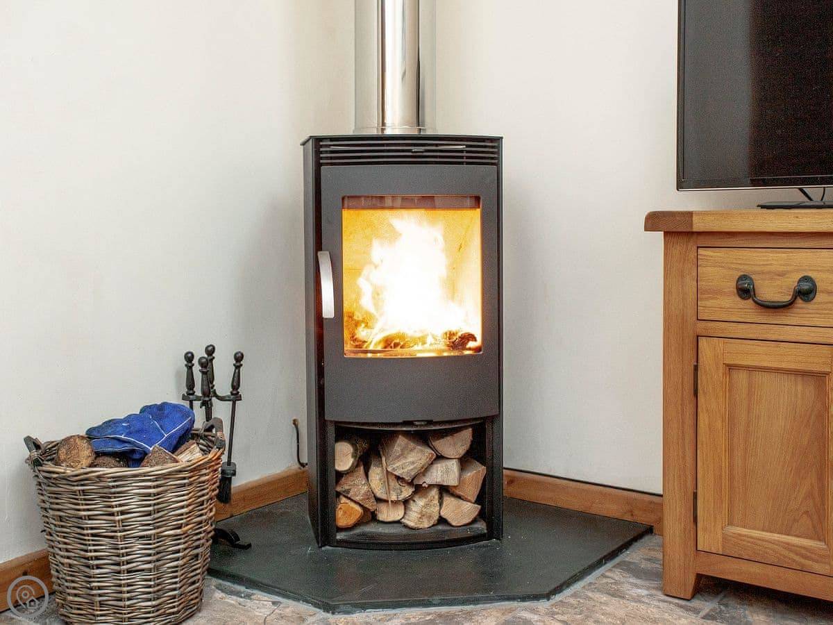 Facilities: it's got what you'd expect. Washing machine, dishwasher, TV. There's a wood burner for cooler nights. Parking right outside. There's an electric vehicle charger. If you want to order a supermarket delivery for your arrival, let me know and I'll put it away for you.