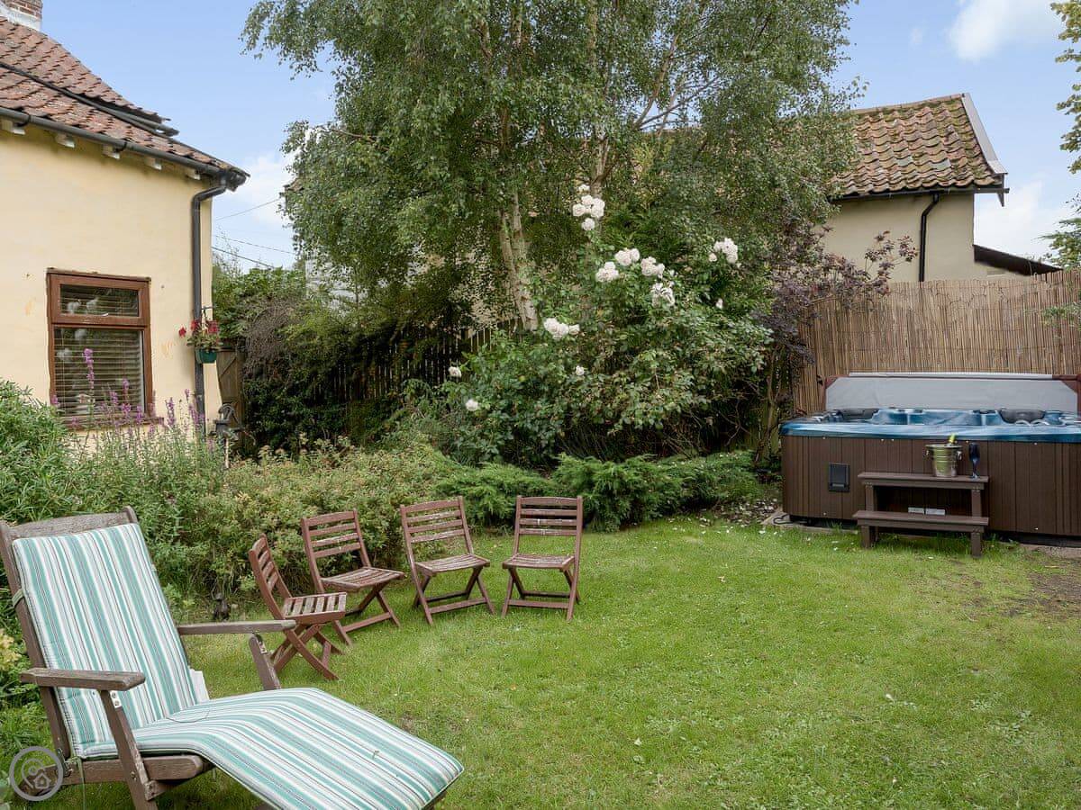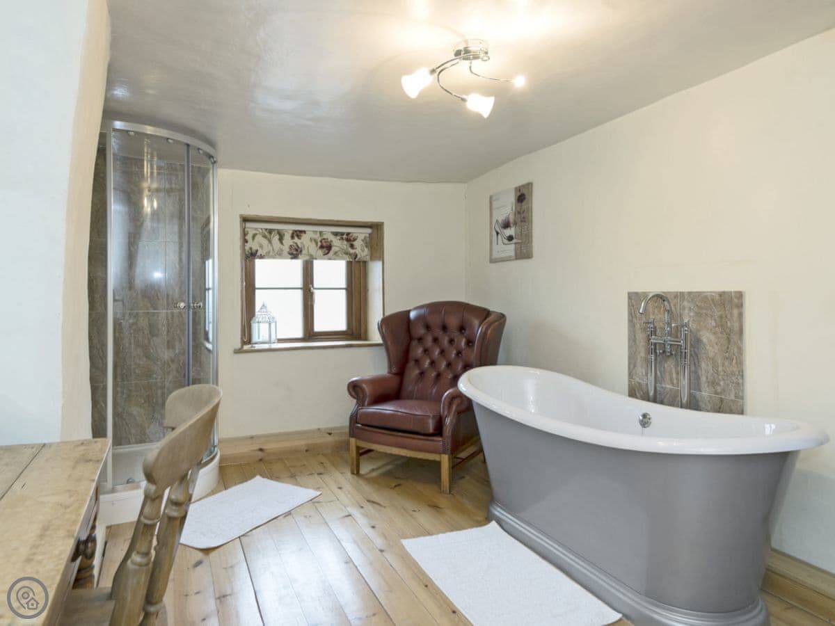 The sitting room has an open fire, which is nice in the colder months. One of the bedrooms has a free-standing roll-top bath in it as well as the shower room. The garden's yours to use, with a patio and a barbecue.