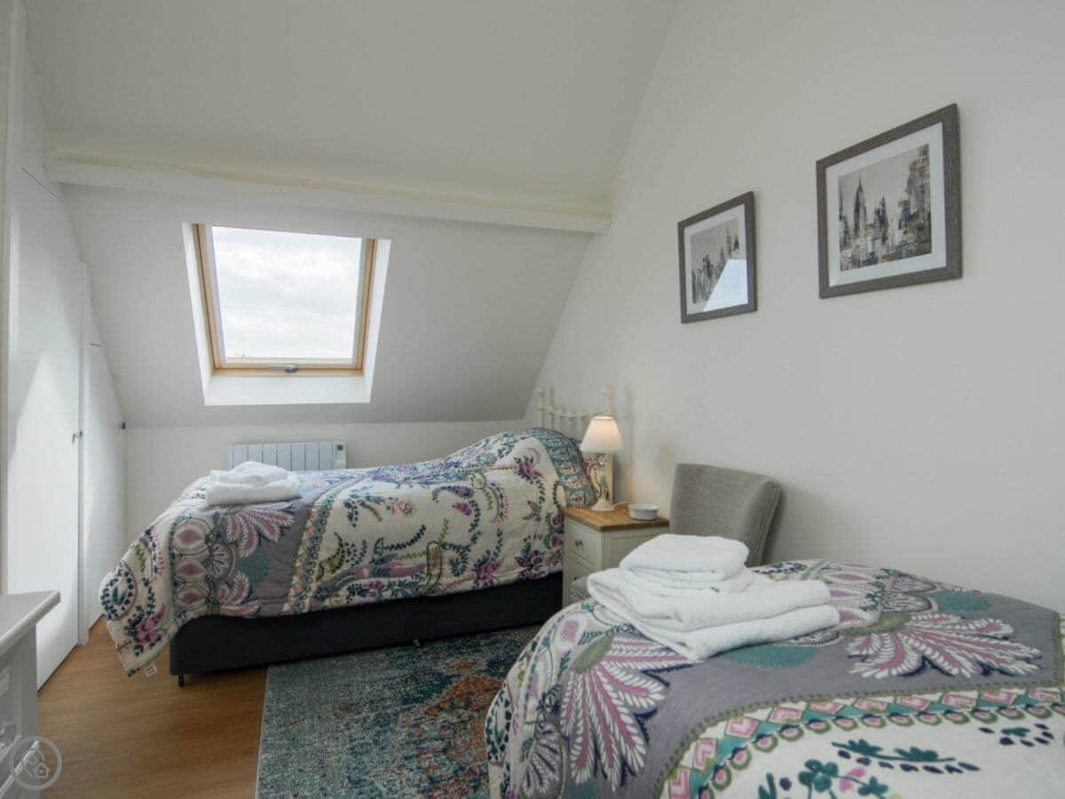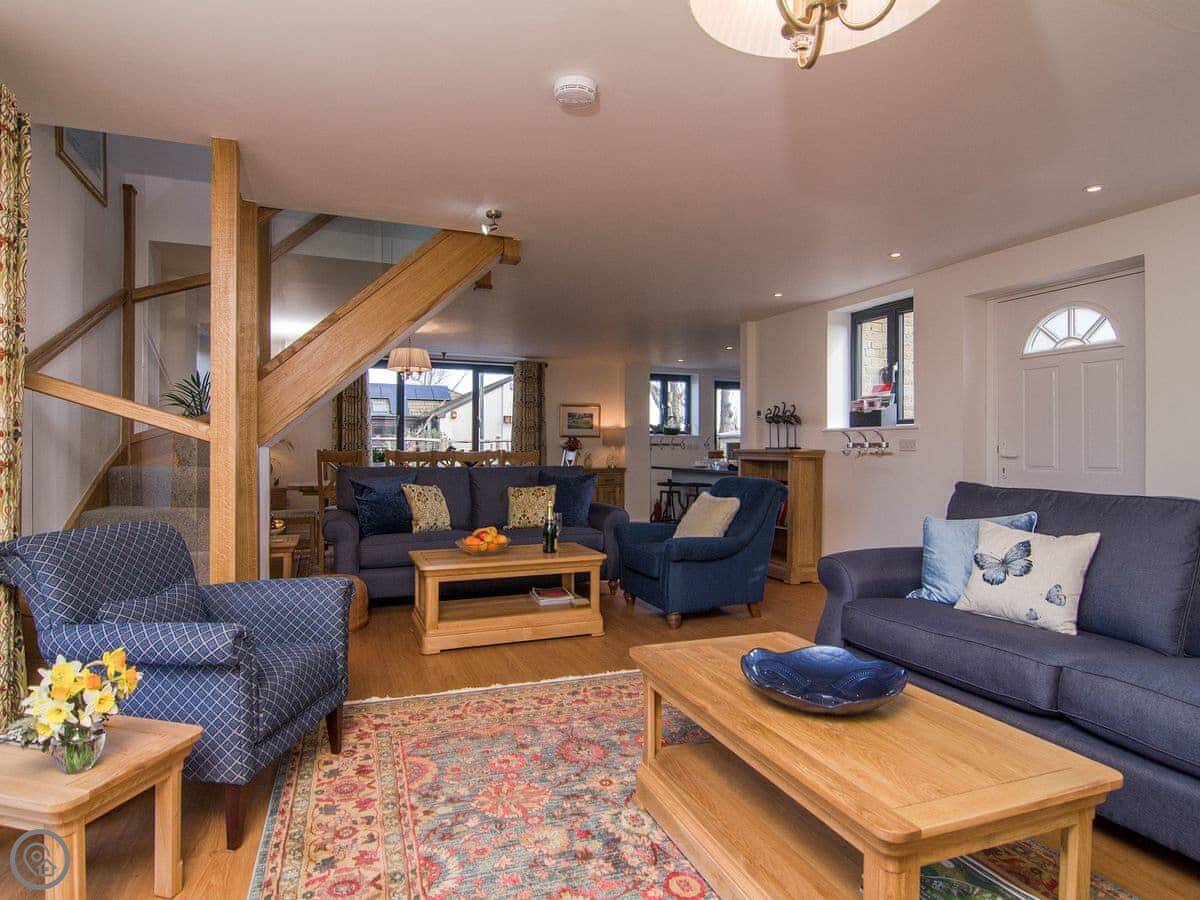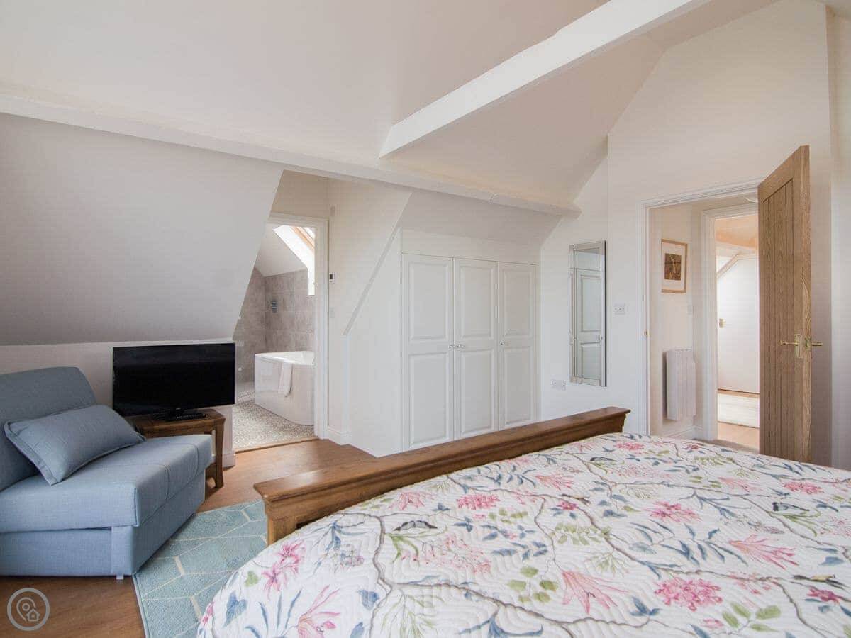 The Coach House is on our farm, right near Sandwich Bay. It's a barn we converted, so the ceilings are high and the main room is big. It sleeps eight. Four bedrooms, three bathrooms. There's a wood burner for winter and the garden is enclosed. You can bring one dog.
