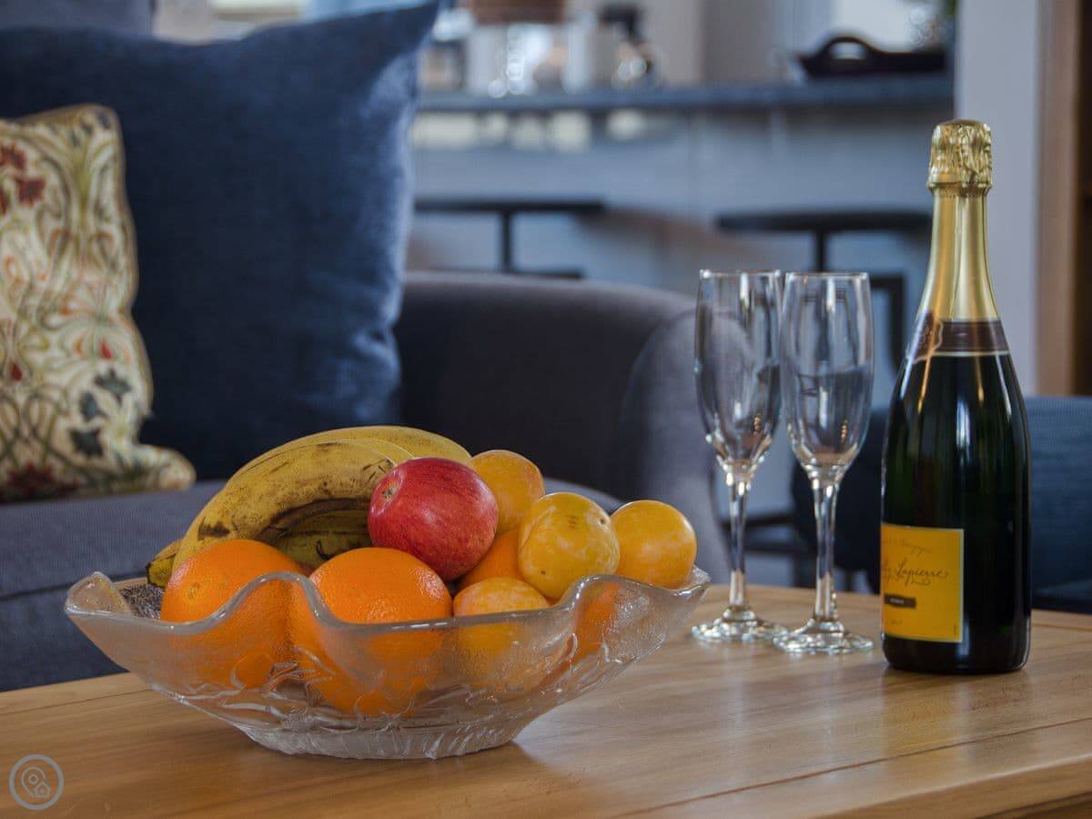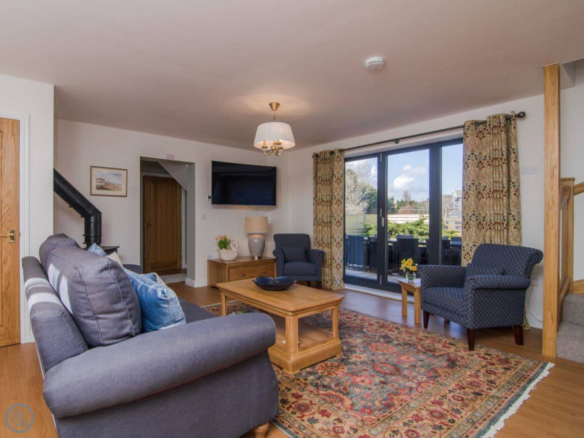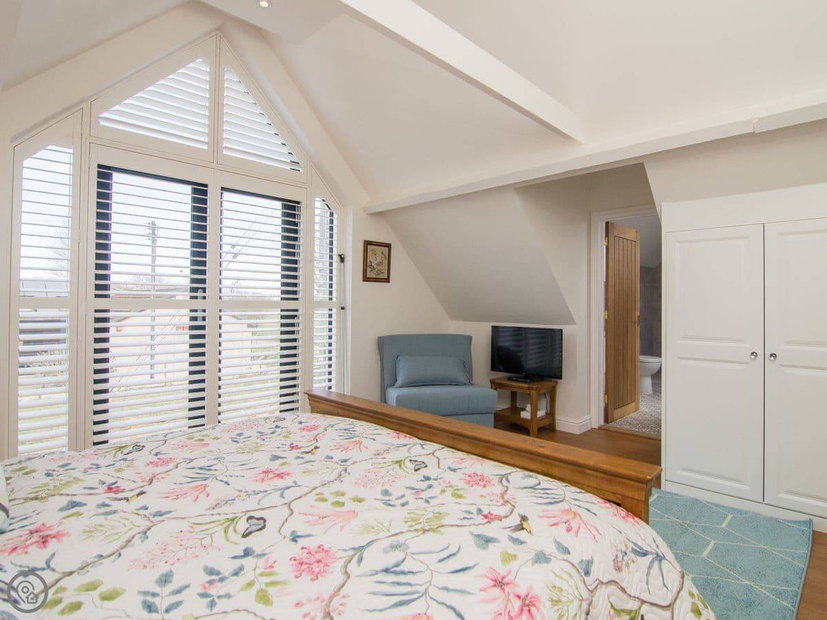 The Coach House is on our farm, right near Sandwich Bay. It's a barn we converted, so the ceilings are high and the main room is big. It sleeps eight. Four bedrooms, three bathrooms. There's a wood burner for winter and the garden is enclosed. You can bring one dog.