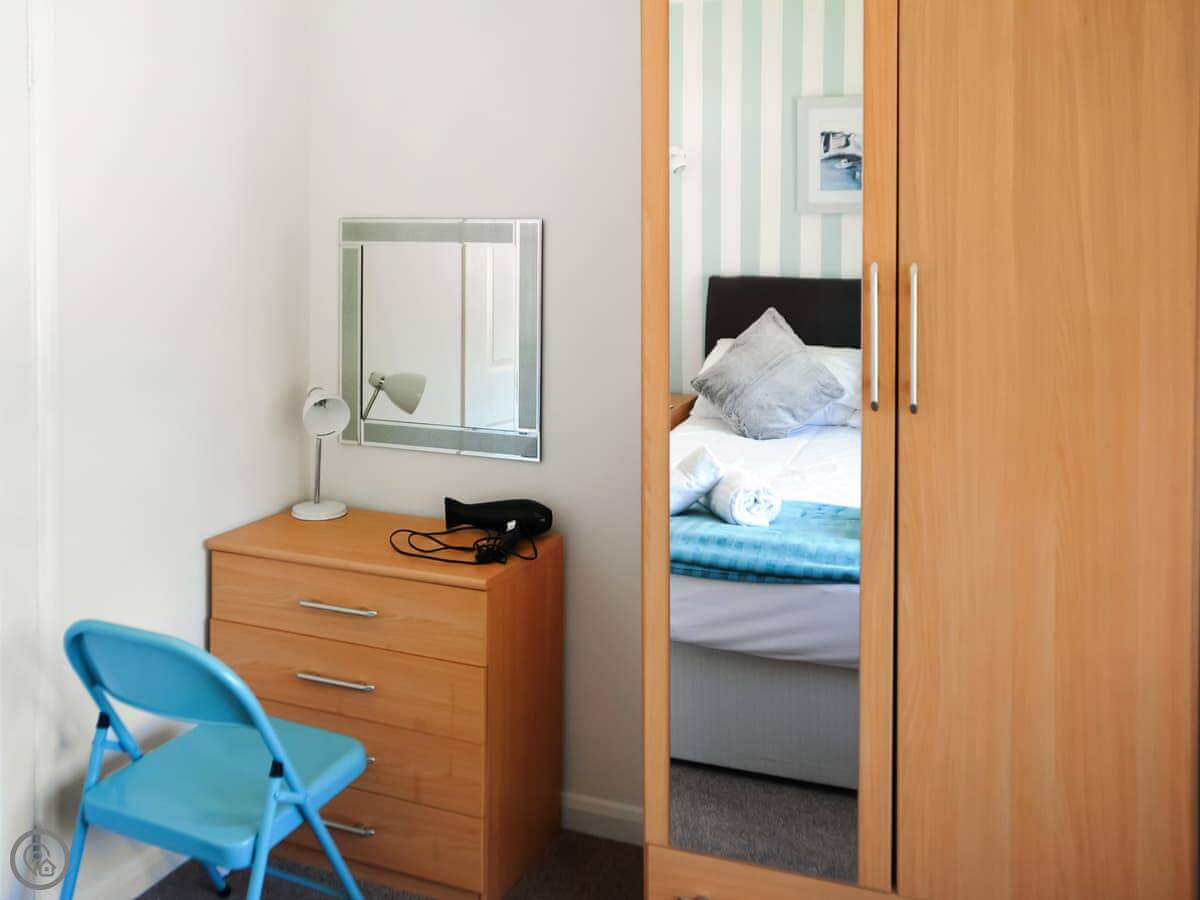 It sleeps four. Two bedrooms and one bathroom. It's got a 4 Star rating, so it's well equipped and comfortable. You can bring one dog.