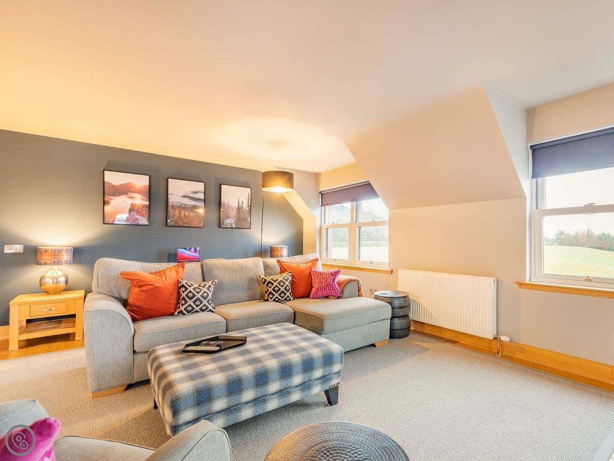 Hill View is just outside Dalbeattie. It's a detached house in our grounds, so it feels private. The view from the front is across fields towards hills.