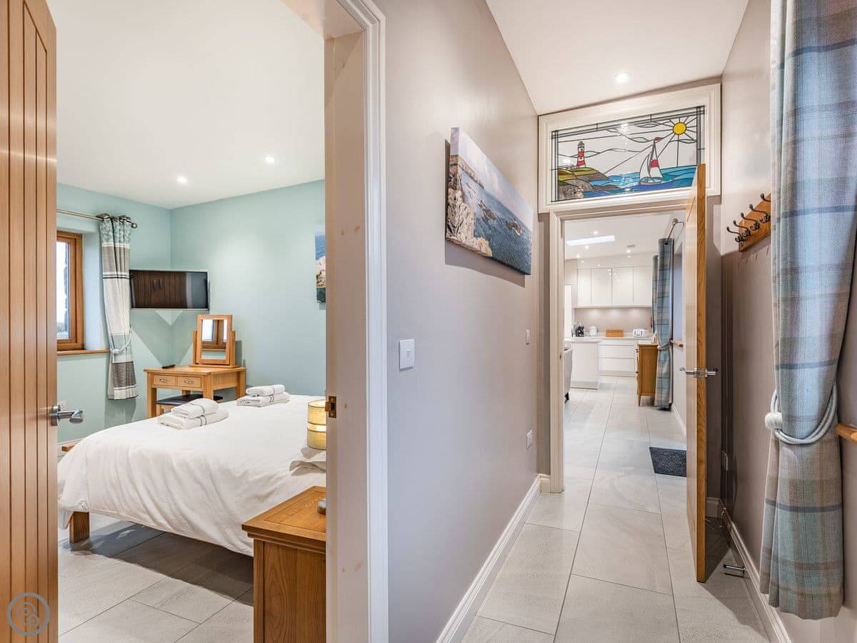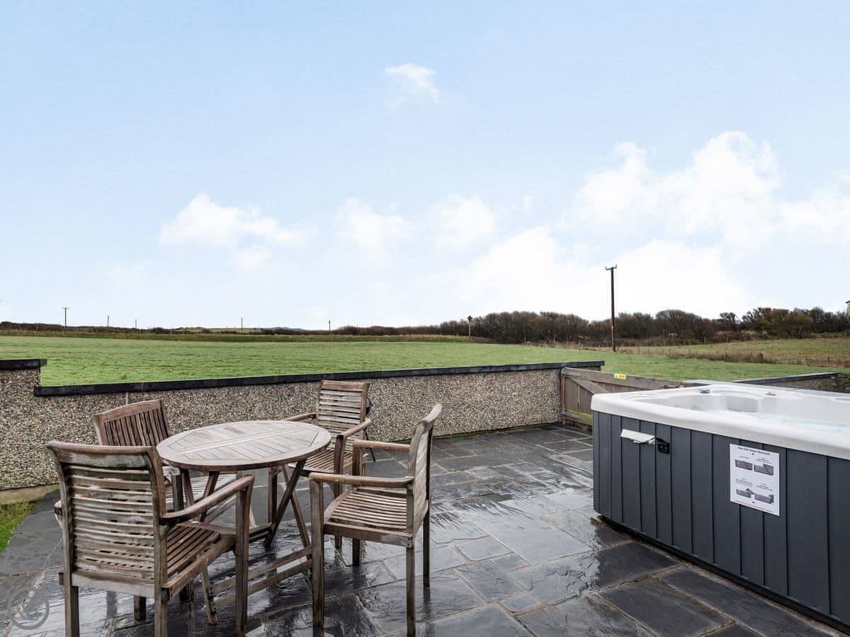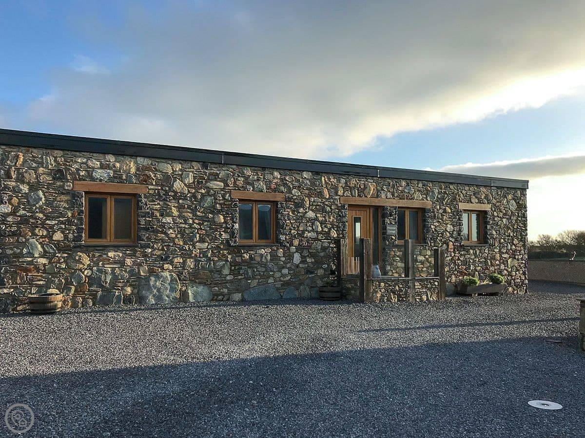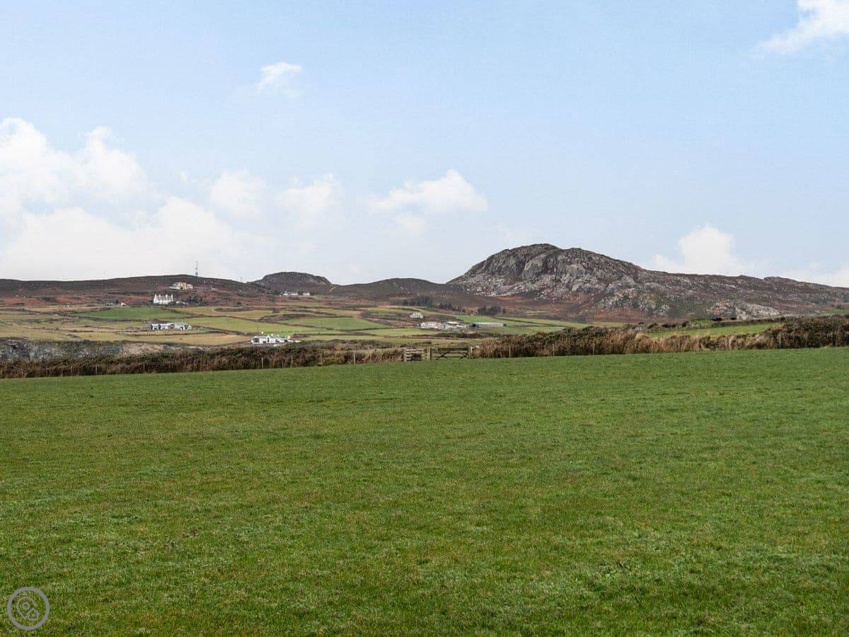 The location is quiet, on coastal farmland. You're about a mile from Porth Dafarch beach, which is a nice sandy cove. Trearddur Bay is a bit further on, maybe ten minutes in the car. They've got shops, pubs, and restaurants there.