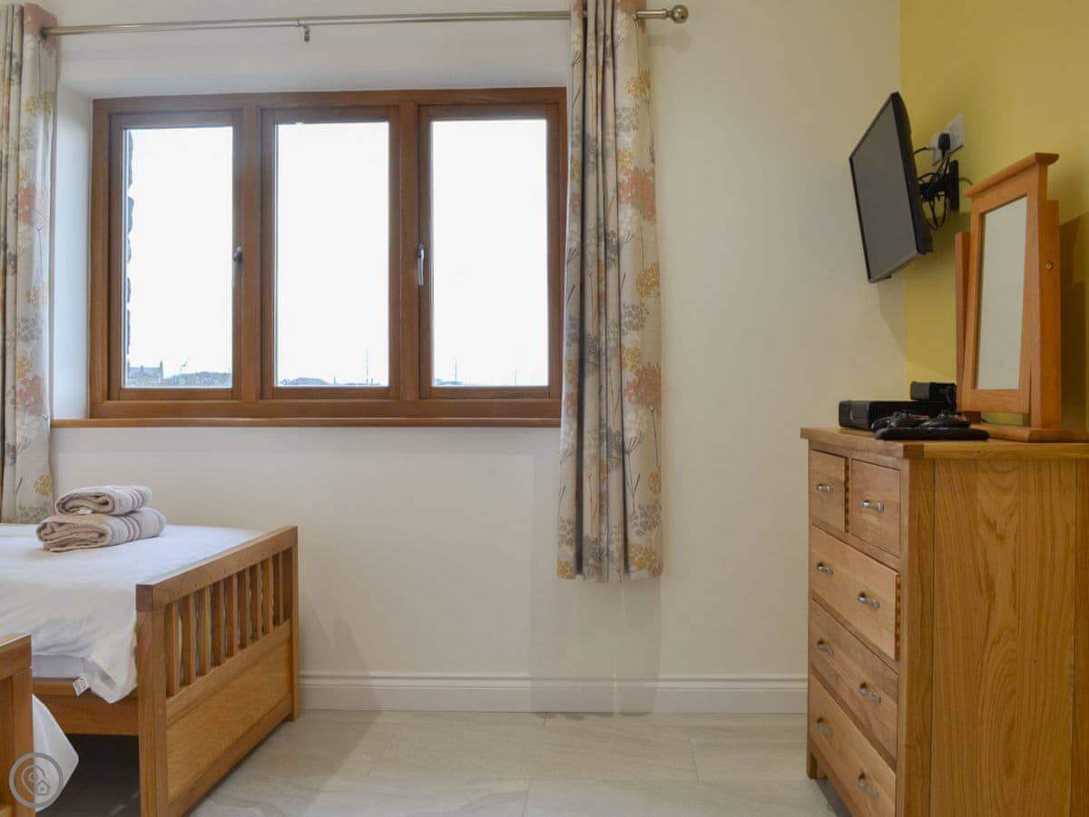 It sleeps four. Two bedrooms, one bathroom with a shower. It's a 5 Star place, so it's well-finished and comfortable. Everything's included, bedding, towels, that sort of thing.