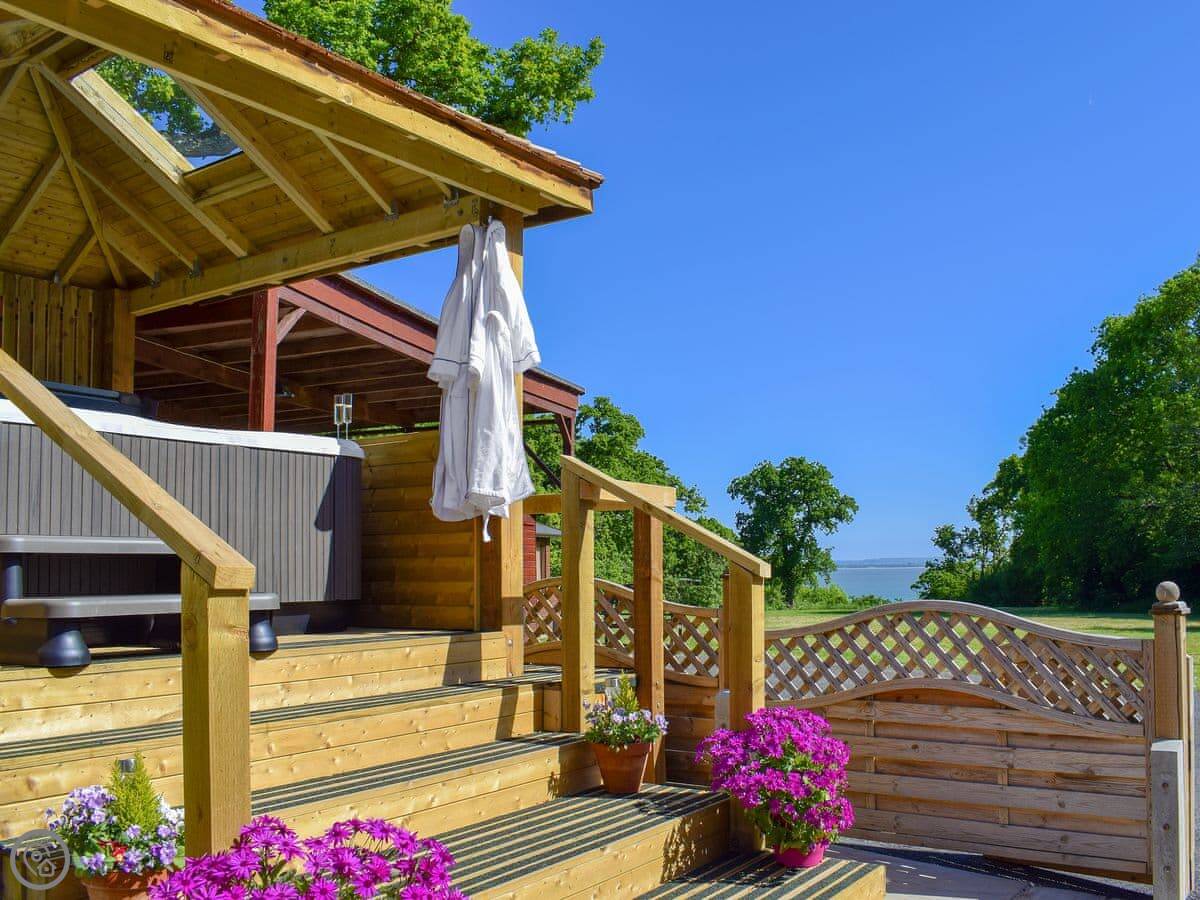 The grounds of the property offer fantastic views across the Solent to Portsmouth and there’s an elevated, private Jacuzzi hot tub for 6, with a covered roof for you to relax in after a busy day discovering the Isle of Wight. From the beach you can spot the landmark Spinnaker Tower, which forms an impressive backdrop to a busy shipping channel that carries an interesting array of freight, passenger and military ships. Guests can enjoy a spot of fishing on the beach, 200 yards away. A short distance away is the seaside town of Ryde with its good selection of individual shops, restaurants, bars, tea rooms and large sandy beach. Along the promenade you will find lots to do with tennis courts, tenpin bowling, a fun fair, canoeing and a swimming pool all available. Within easy reach there is Osborne House, Quarr Abbey, Carisbrooke Castle, Amazon World, Robin Hill Adventure Park and world famous yachting at Cowes. The Isle of Wight is renowned for having a warm, sunny climate, and there are plenty of tourist attractions you can enjoy in the sun. Discover quaint villages, indulge in cream teas, enjoy local produce such as garlic at The Garlic Farm, adventure parks, museums, zoo, donkey sanctuary, wildlife centres, pearl factory, The Needles, traditional pottery, vineyards, steam railway, pretty coves and much more. There are many outdoor pursuits on the island as well including horse riding, fishing, cycling, paragliding, water sports and golf. Whatever you decide, one things for sure, the Isle of Wight has plenty to offer. Beach 200 yards. Shop and restaurant 1½ miles, pub 1¼ miles.