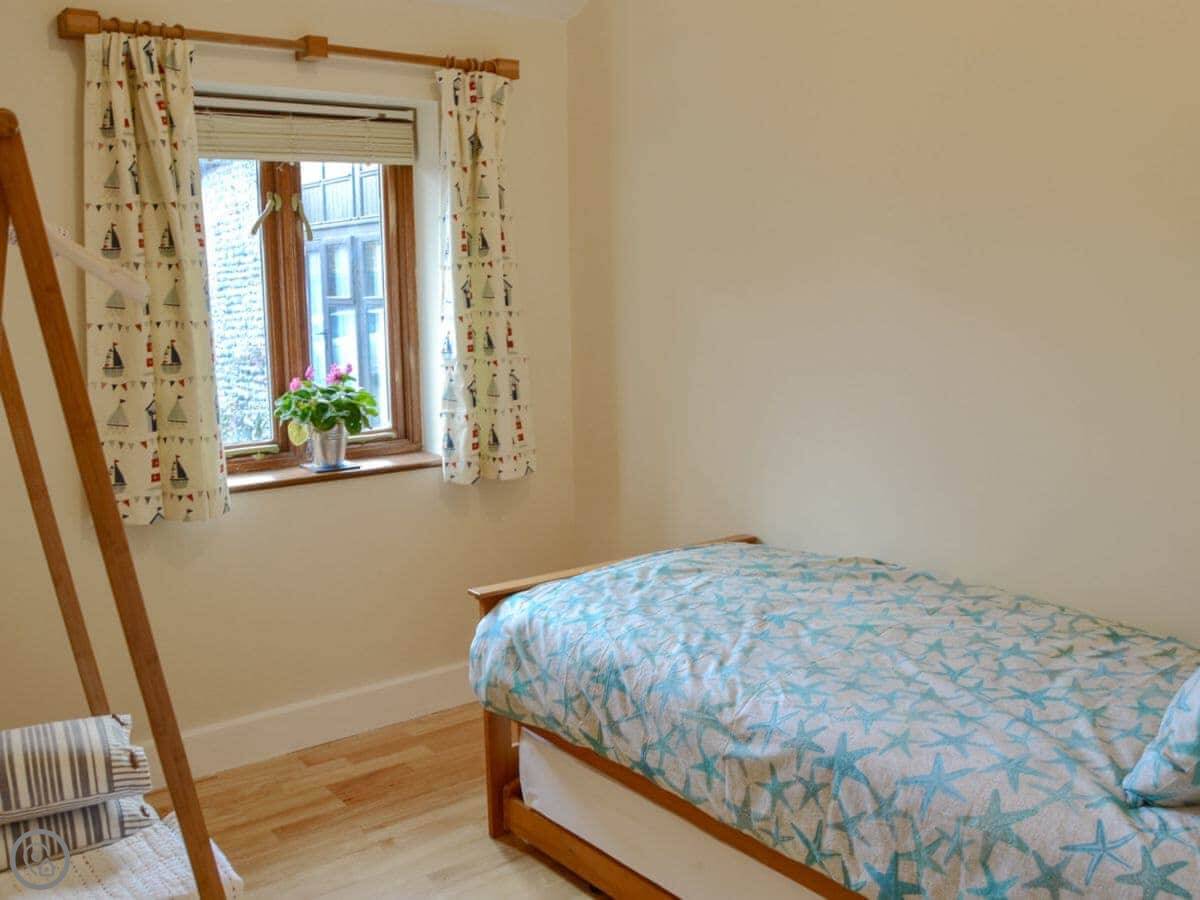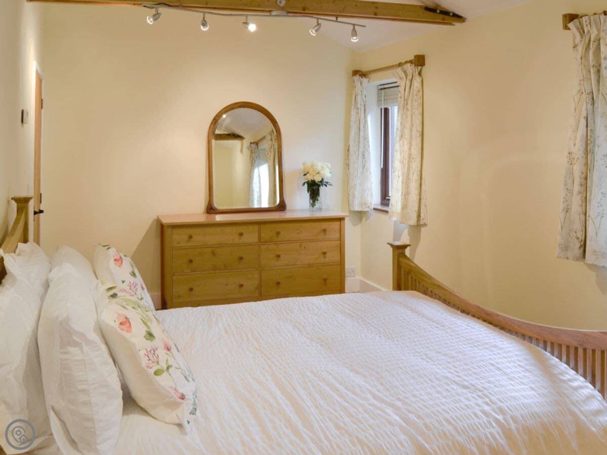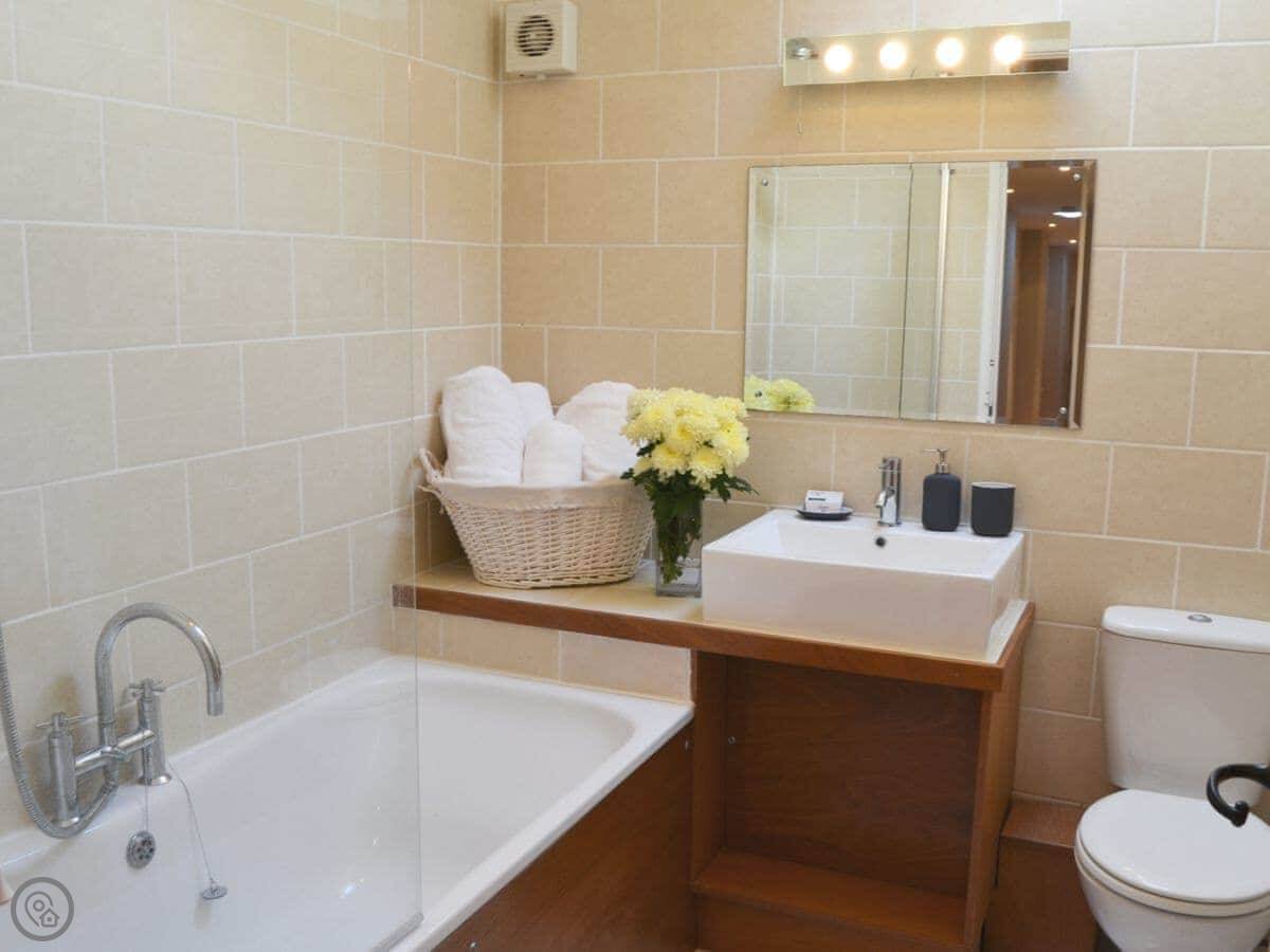 Facilities wise, it's got what you'd expect. Washing machine, dishwasher, WiFi, TV. Bedding and towels are included. There's a cot and a highchair if you need them. On-site parking. You can bring up to two dogs.