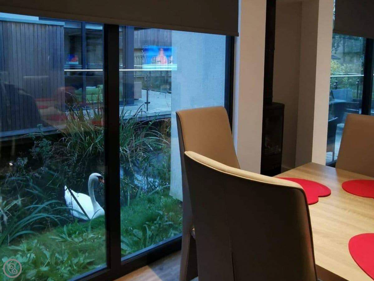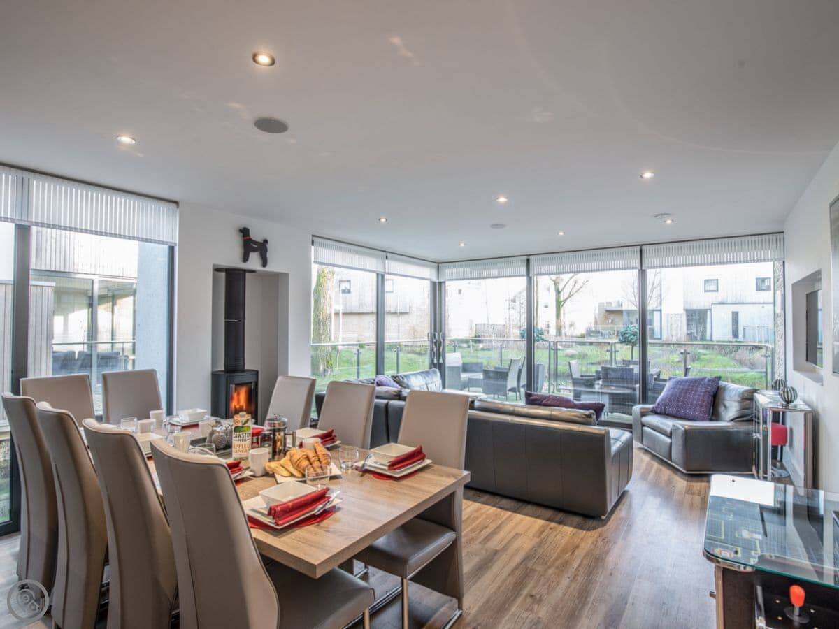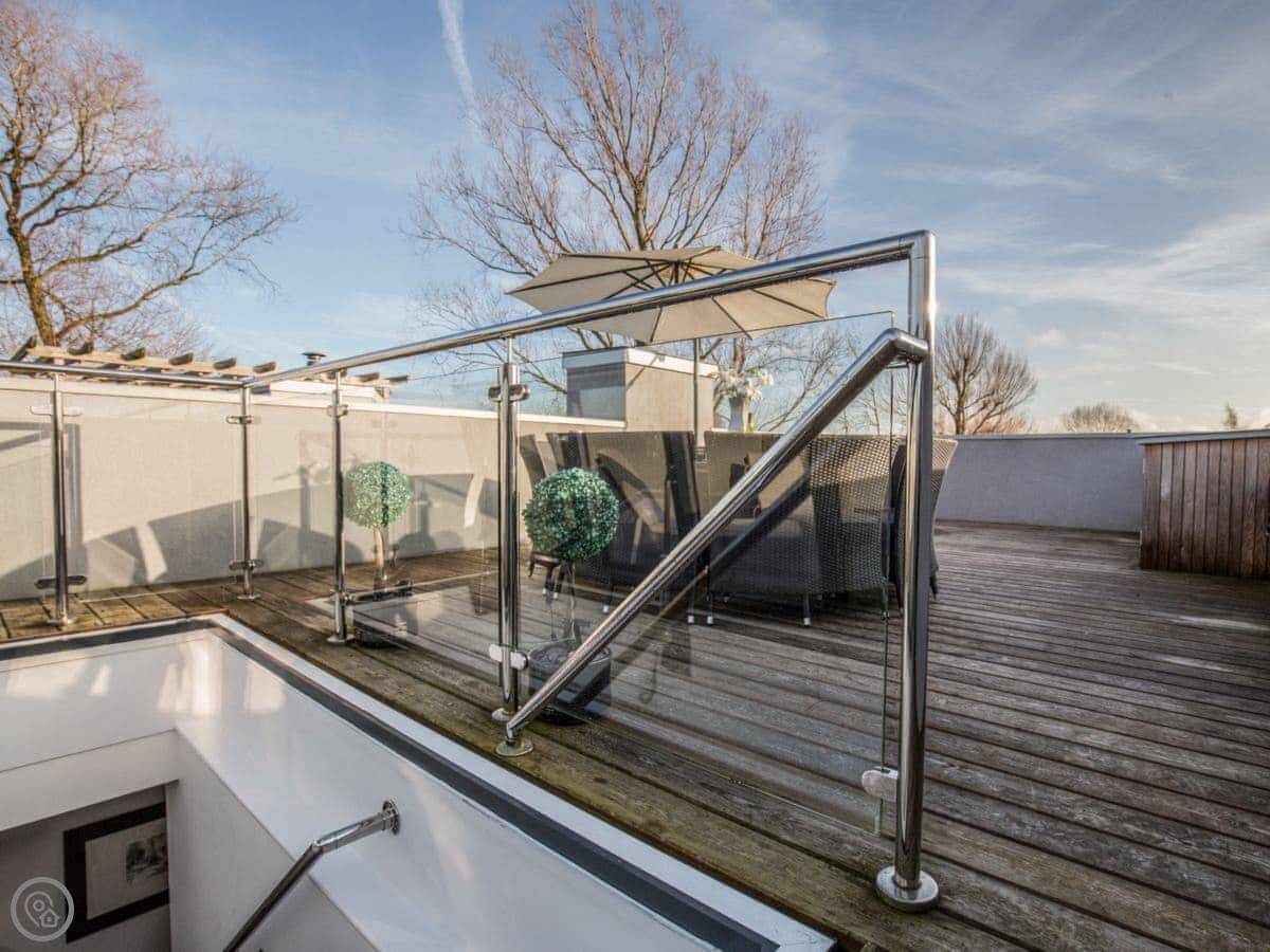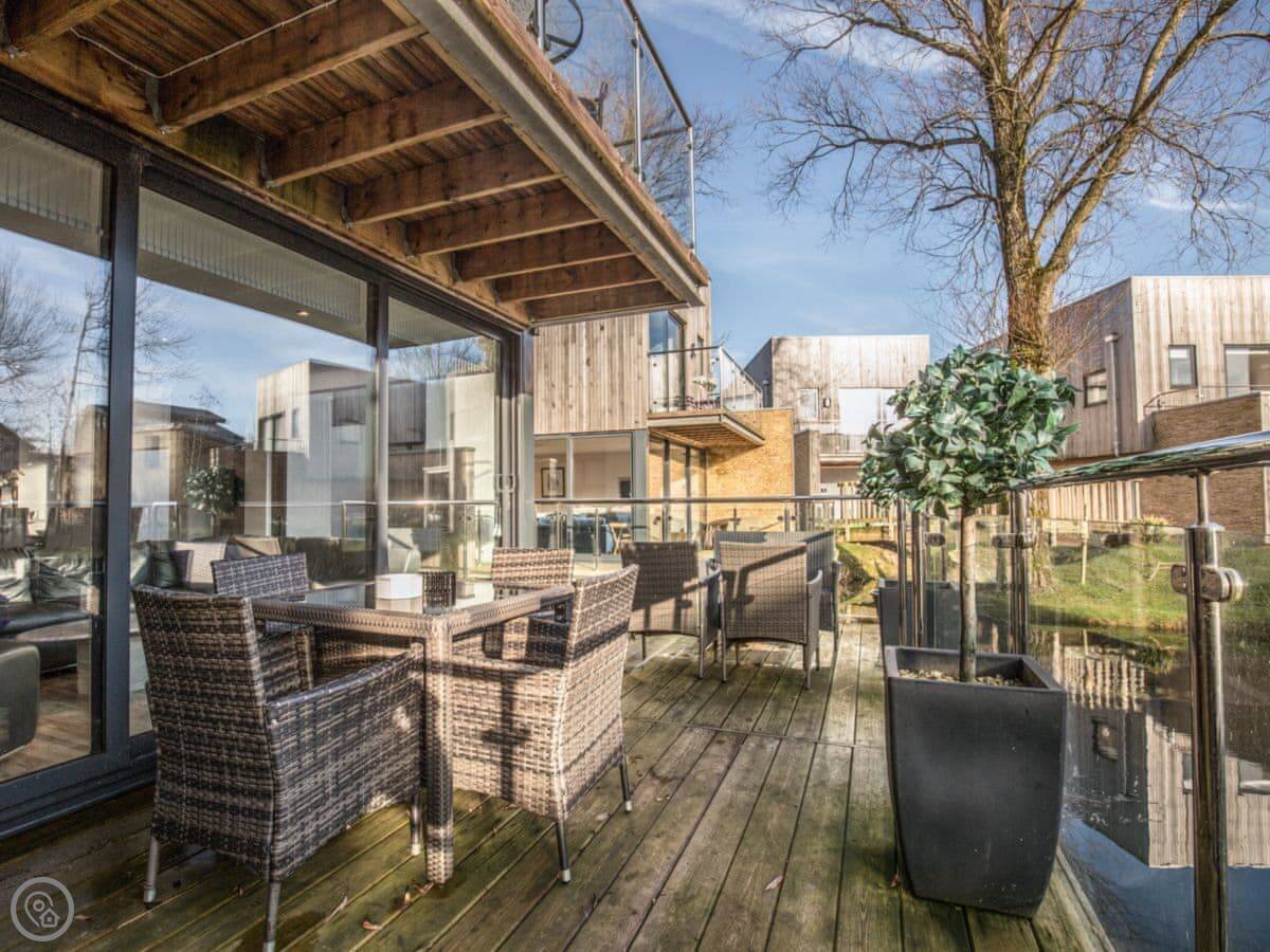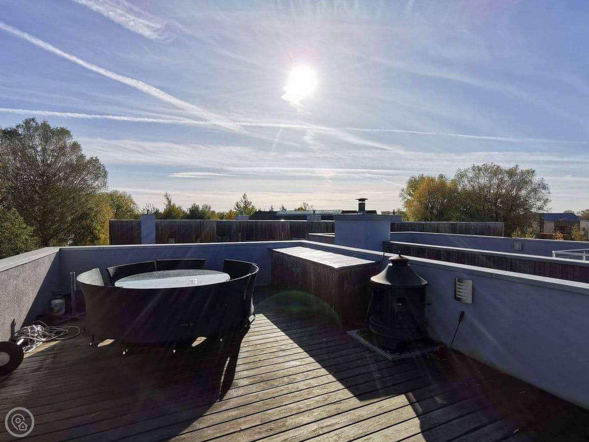 This wonderful detached property lies within a development of stunning, contemporary homes situated on a private 450-acre natural reserve. The property has a furnished decked area with a firepit/BBQ, as well as a balcony. One of the most stunning features of the property is an electric roof leading to a huge expanse of terrace and roof garden which also has a barbecue and firepit, and which catches the sun all day. It has lots of outdoor furniture including dining for 12, and is equipped with a fridge and chiminea/BBQ. This luxury property has Villeroy and Boch furniture in the bathroom, shower room and downstairs toilet, and Amtico flooring throughout. There is an integrated Bluetooth sound system throughout the house. The friendly owner has also gone out of her way to ensure your four-legged friends have an enjoyable holiday too. Included are dog beds, bowls, blankets as well as an outdoor area for pets with warm water, shampoo and towels provided. This gated and managed estate comprises woodland and meadows crossed by three rivers and surrounded by serene lakes. In addition to the house’s facilities, guests can enjoy the estate’s ArtSpa comprising indoor and outdoor heated pools, an eco-pool, sauna, steam room, gym and treatments by arrangement as well as a hard tennis court, nature trails and cycle tracks. Shop, pub and restaurant on-site.