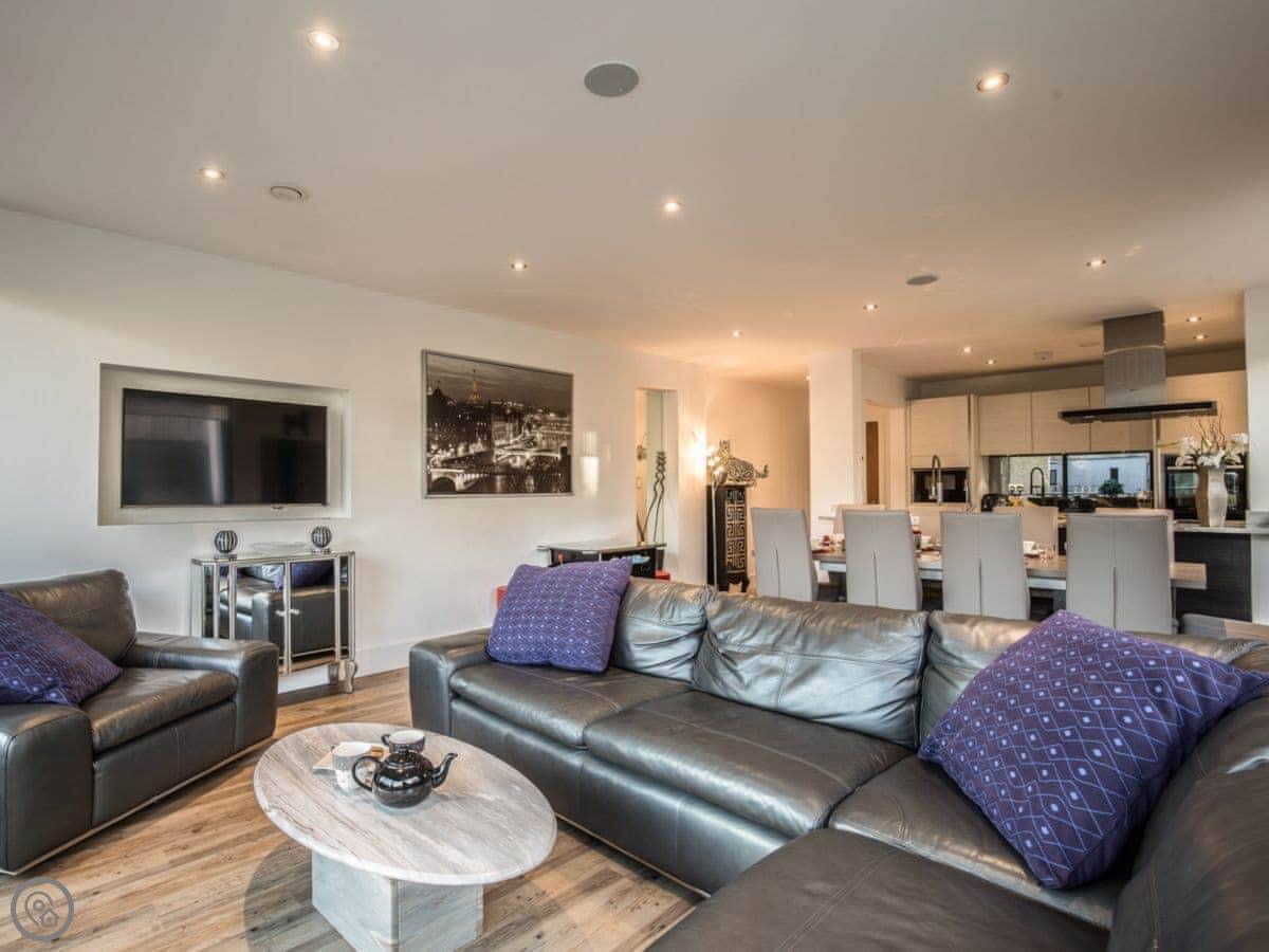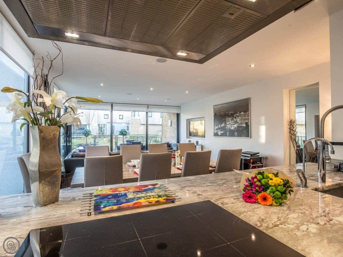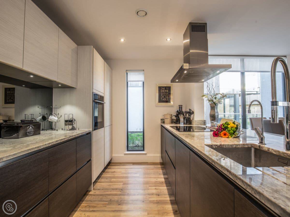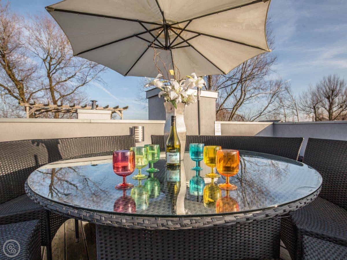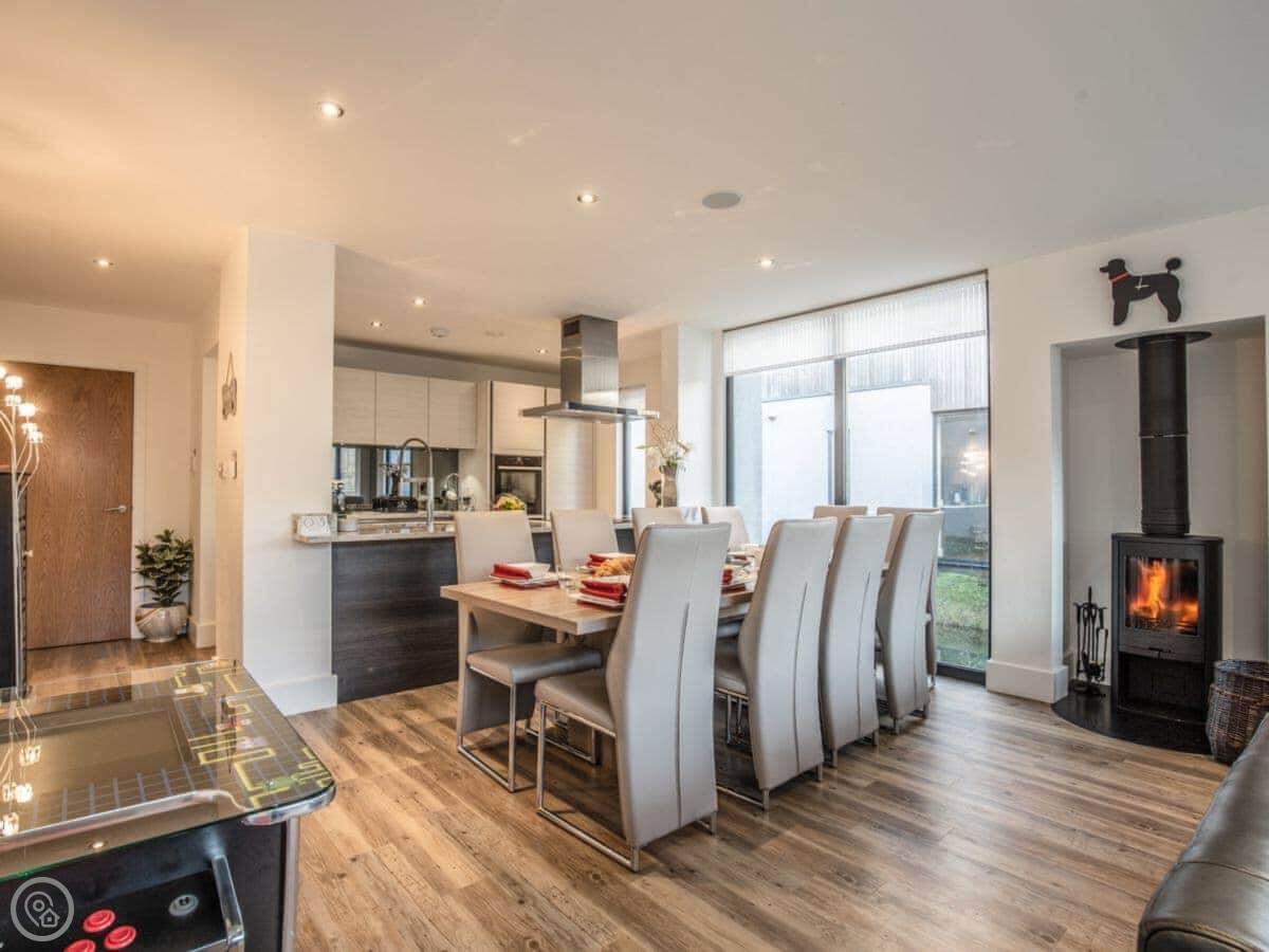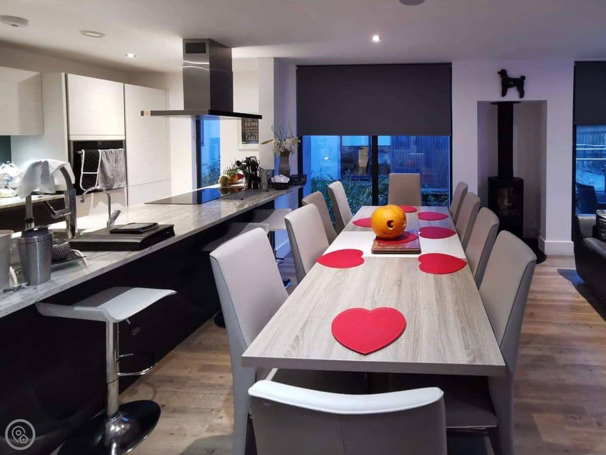This wonderful detached property lies within a development of stunning, contemporary homes situated on a private 450-acre natural reserve. The property has a furnished decked area with a firepit/BBQ, as well as a balcony. One of the most stunning features of the property is an electric roof leading to a huge expanse of terrace and roof garden which also has a barbecue and firepit, and which catches the sun all day. It has lots of outdoor furniture including dining for 12, and is equipped with a fridge and chiminea/BBQ. This luxury property has Villeroy and Boch furniture in the bathroom, shower room and downstairs toilet, and Amtico flooring throughout. There is an integrated Bluetooth sound system throughout the house. The friendly owner has also gone out of her way to ensure your four-legged friends have an enjoyable holiday too. Included are dog beds, bowls, blankets as well as an outdoor area for pets with warm water, shampoo and towels provided. This gated and managed estate comprises woodland and meadows crossed by three rivers and surrounded by serene lakes. In addition to the house’s facilities, guests can enjoy the estate’s ArtSpa comprising indoor and outdoor heated pools, an eco-pool, sauna, steam room, gym and treatments by arrangement as well as a hard tennis court, nature trails and cycle tracks. Shop, pub and restaurant on-site.