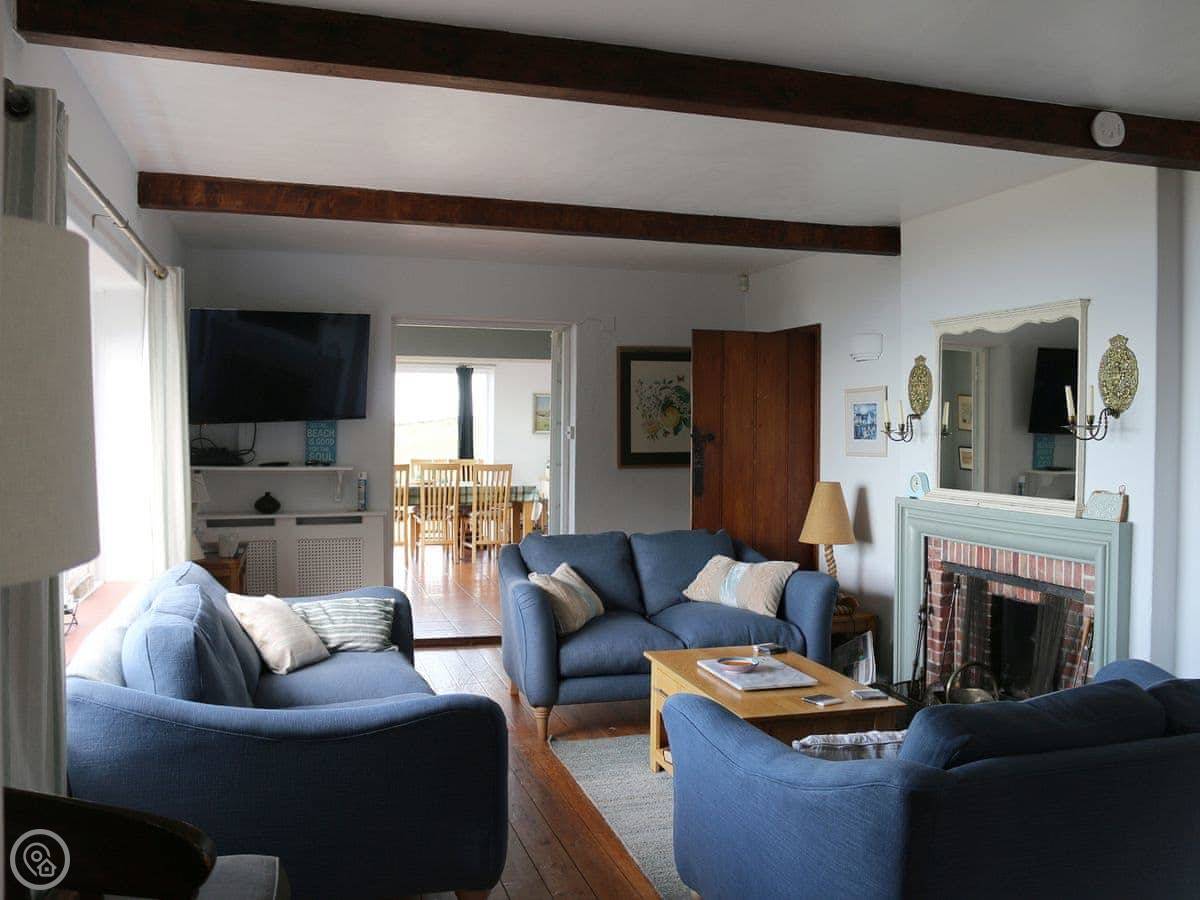 It sleeps nine. There are four bedrooms and each one has its own bathroom. It's got a 5 Star rating. It's been refurbished but we kept the open fire. It's comfortable.