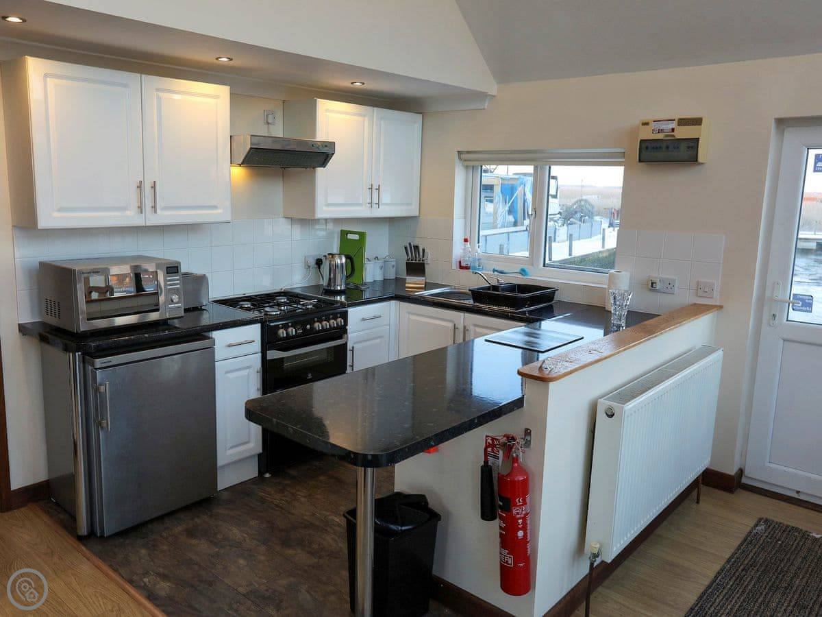 It's got a 4 Star rating. It's comfortable and clean. There's a washing machine, dishwasher, Wi-Fi. Bedding and towels are included. Parking is on site. You can bring two dogs.