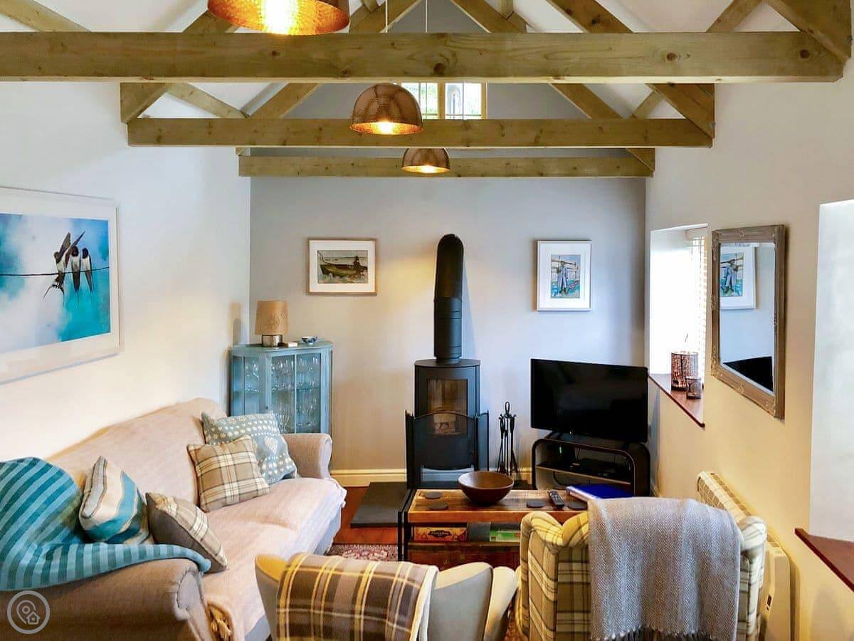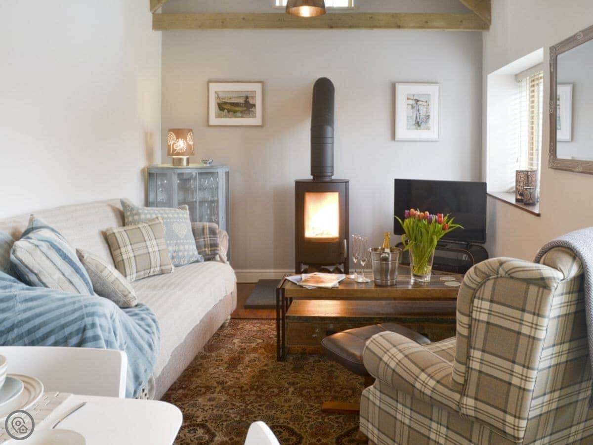 It's a 5 Star place. That means it's finished to a high standard. The beds are very good quality, and the towels are big. There's a wood burner in the living room, and we leave you some logs to start with.