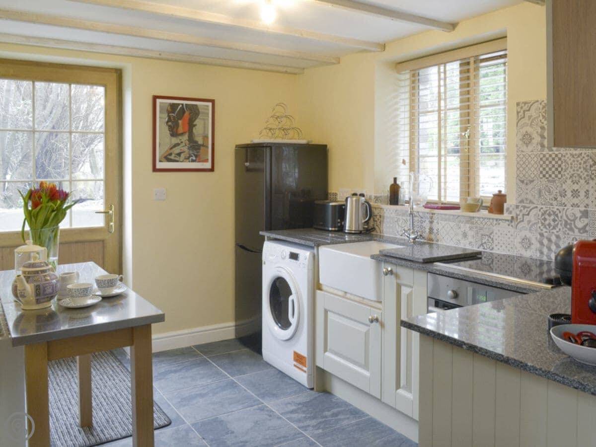 Facilities: there's a washing machine, an enclosed garden with a patio and a BBQ, parking for one car right outside, and WiFi. The bedding and towels are all included. No pets, sorry.